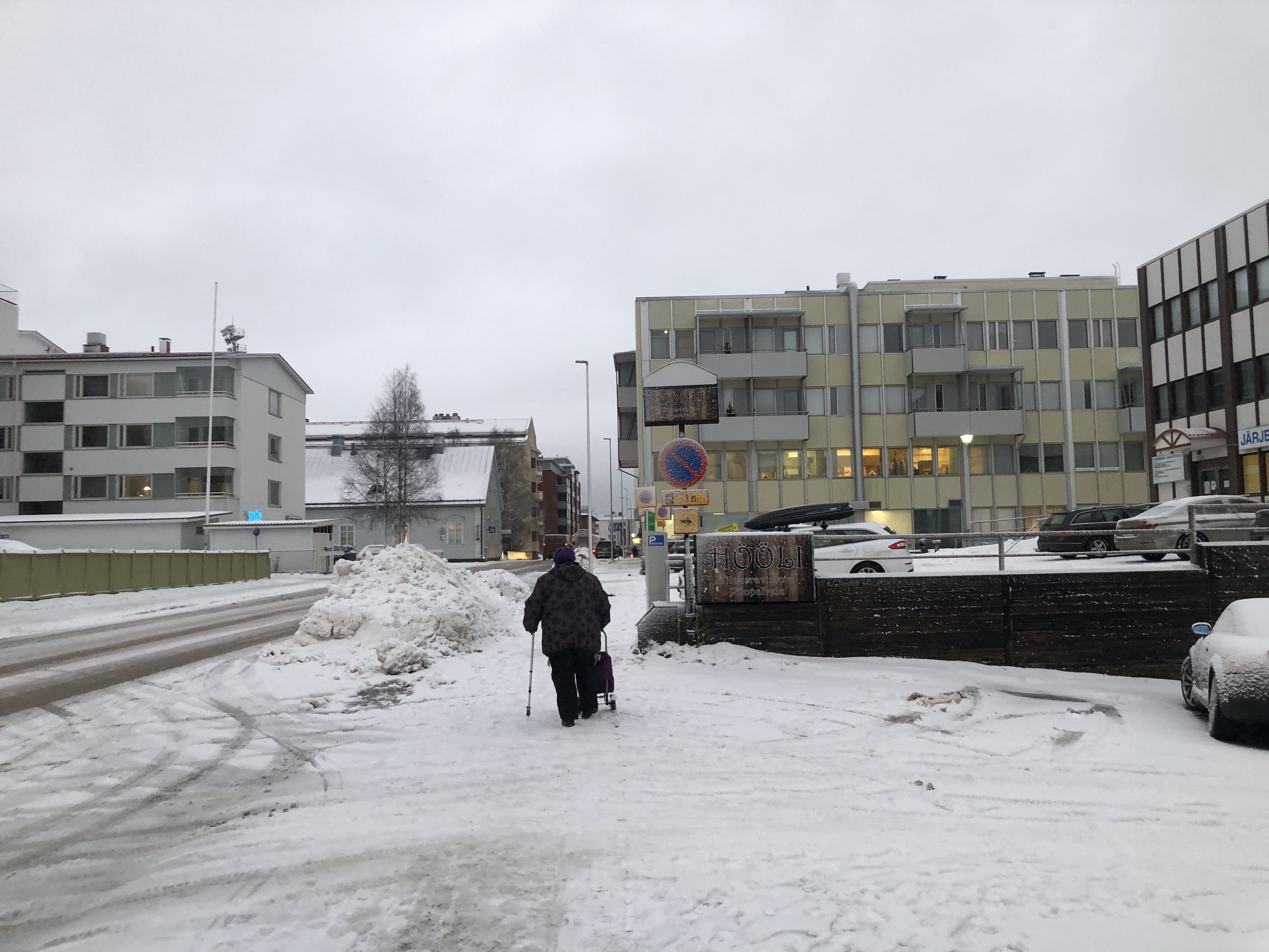 Certo che se avessi studiato medicina avrei potuto fare dei bei soldoni nel periodo invernale quassù in Finlandia, non oso pensare a quante protesi del bacino avrei potuto installare ma, mentre conto le mie banconote immaginarie con l’abilità di una croupier di Las Vegas, vengo superata da due donne anziane che, incurvate dal peso delle buste della spesa, procedono senza alcuna incertezza. Le guardo con invidia mentre cerco di rimanere in piedi e mantenere, oltre all’equilibrio, anche la dignità ma, il marciapiede sembra allungarsi ad ogni passo e presto cedo, tra il silenzio ed il buio della sera, faccio scendere una lacrima che fa meno strada di me, curva leggermente e poi si congela proprio qui, sulla punta del mio naso.
