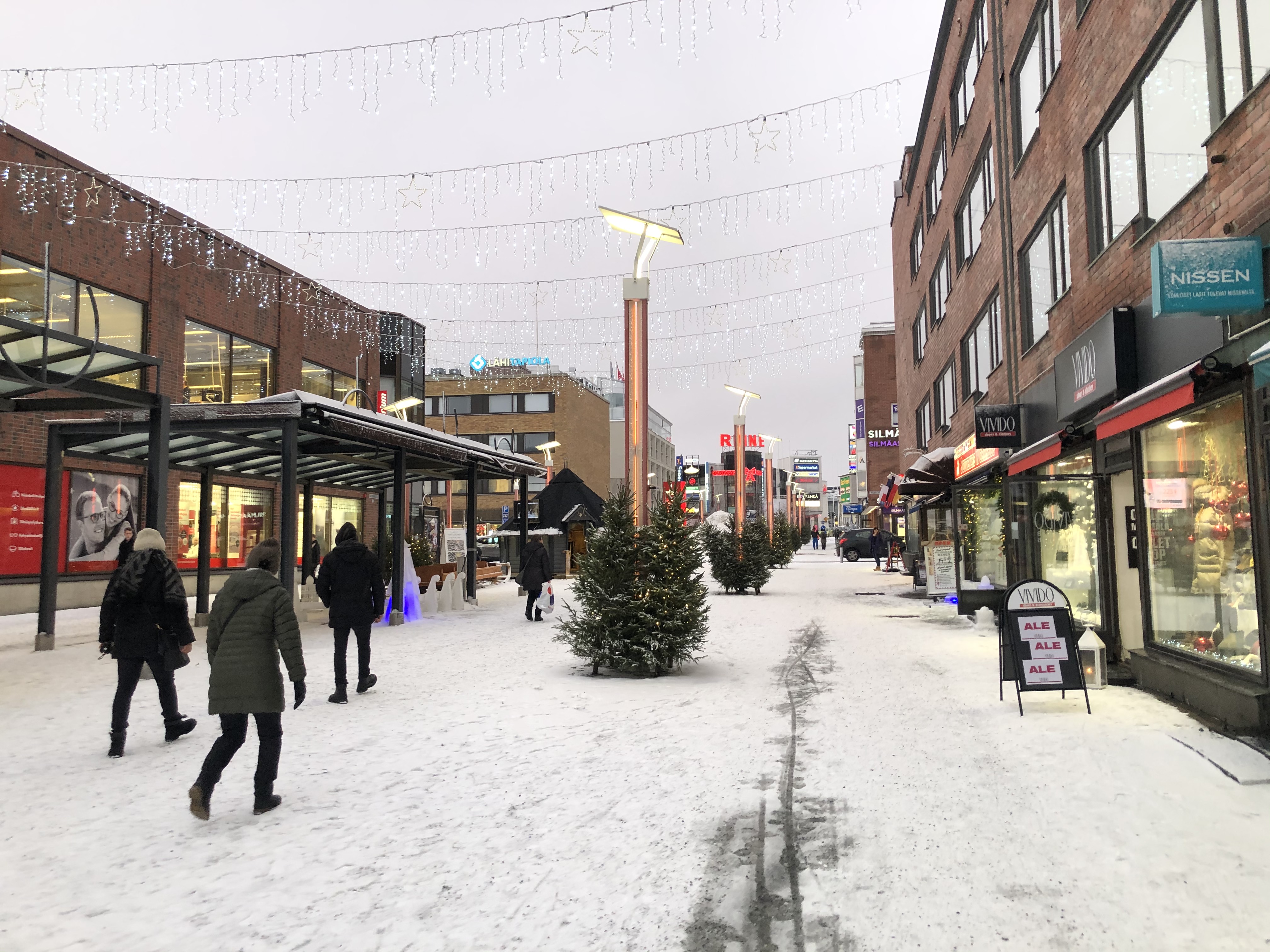 Il cuore della città ha dimensioni ridotte, ci sono molti negozi e un centro commerciale. Ovviamente è allontanandosi di qualche chilometro dai bassi palazzi in cemento che il paesaggio si fa molto più intrigante. Con l’ autobus diretto all’aeroporto ci addentriamo in foreste appesantite da gelidi fiocchi di neve; la strada scorre sotto le ruote senza far rumore come fossimo su un tappeto di seta. Il finestrino si appanna sotto il mio affannato respiro e l’autista, che divertito mi guarda dallo specchietto retrovisore, sorride del mio fanciullesco entusiasmo. Guardando una foresta si ha l’impressione che gli alberi siano tutti uguali ma se la si osserva con attenzione si riescono a cogliere le mille differenze ed imperfezioni. Cerco di non farmene sfuggire nemmeno una, guardo là fuori come inebetita. É il contesto che crea l’atmosfera giusta, l’autista rallenta per permetterci di vedere delle renne, laggiù, in quella piccola radura. É tutto così affascinante che vorrei rallentare il tempo per non dover ripartire, almeno non subito, non ora.