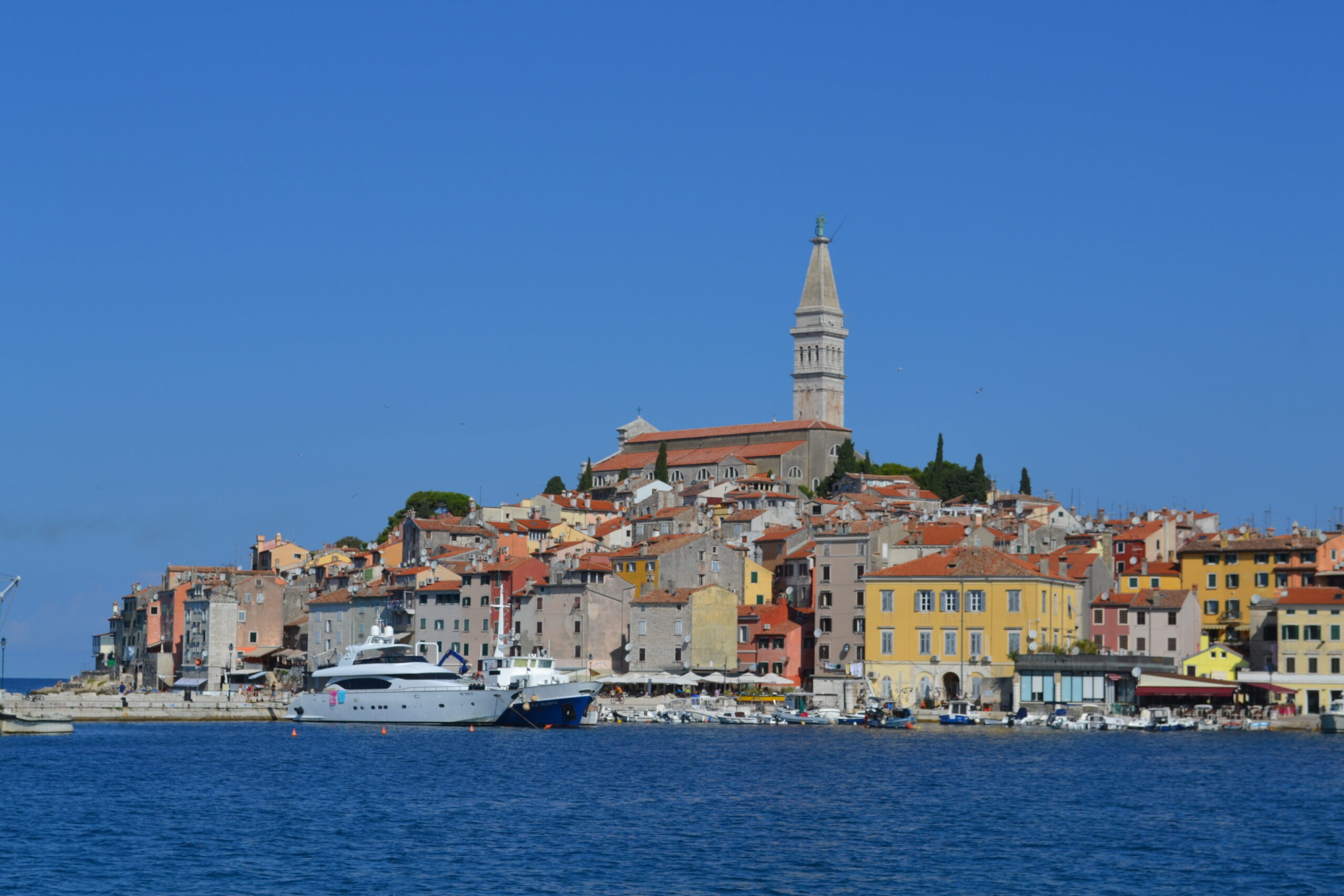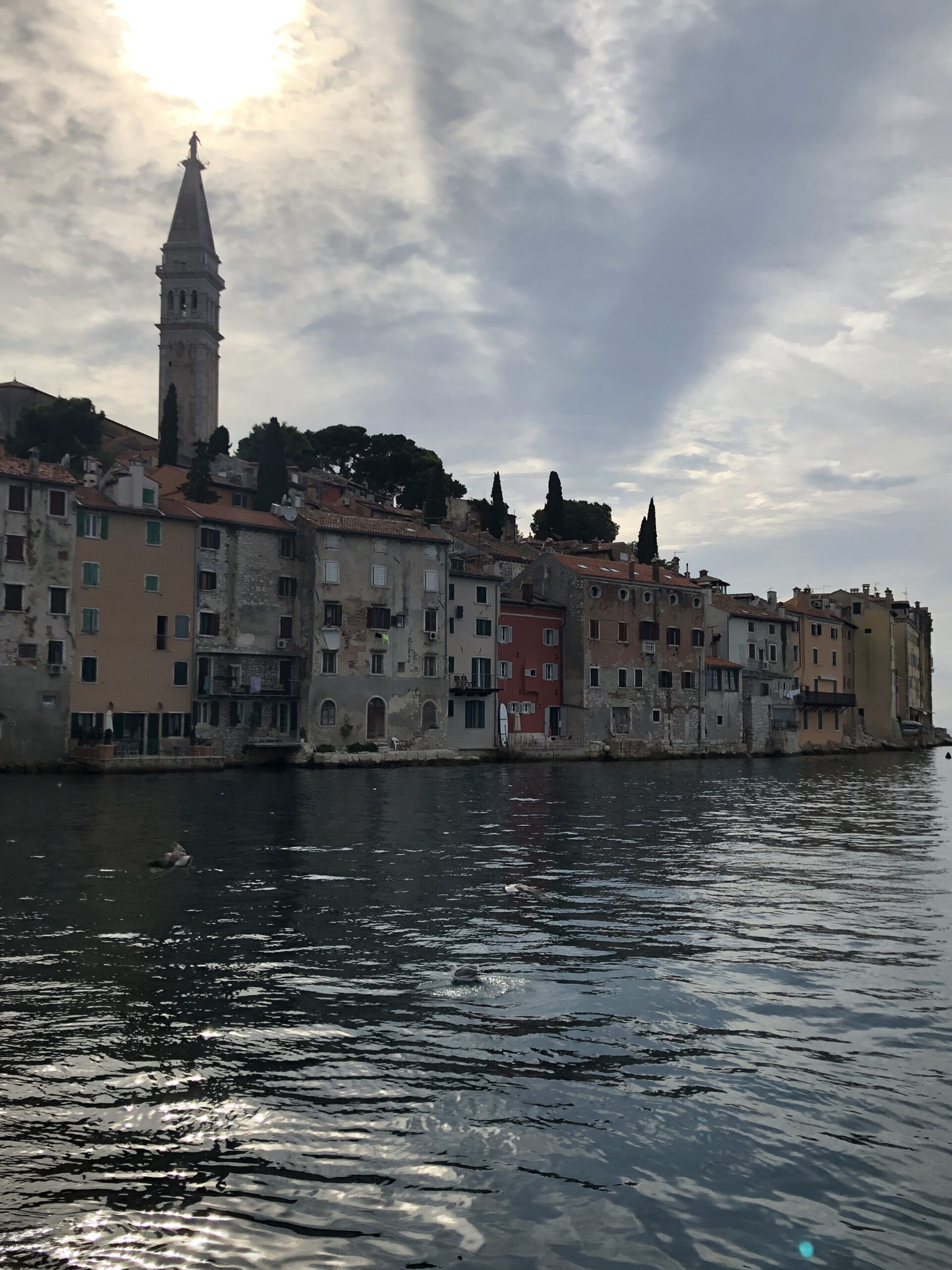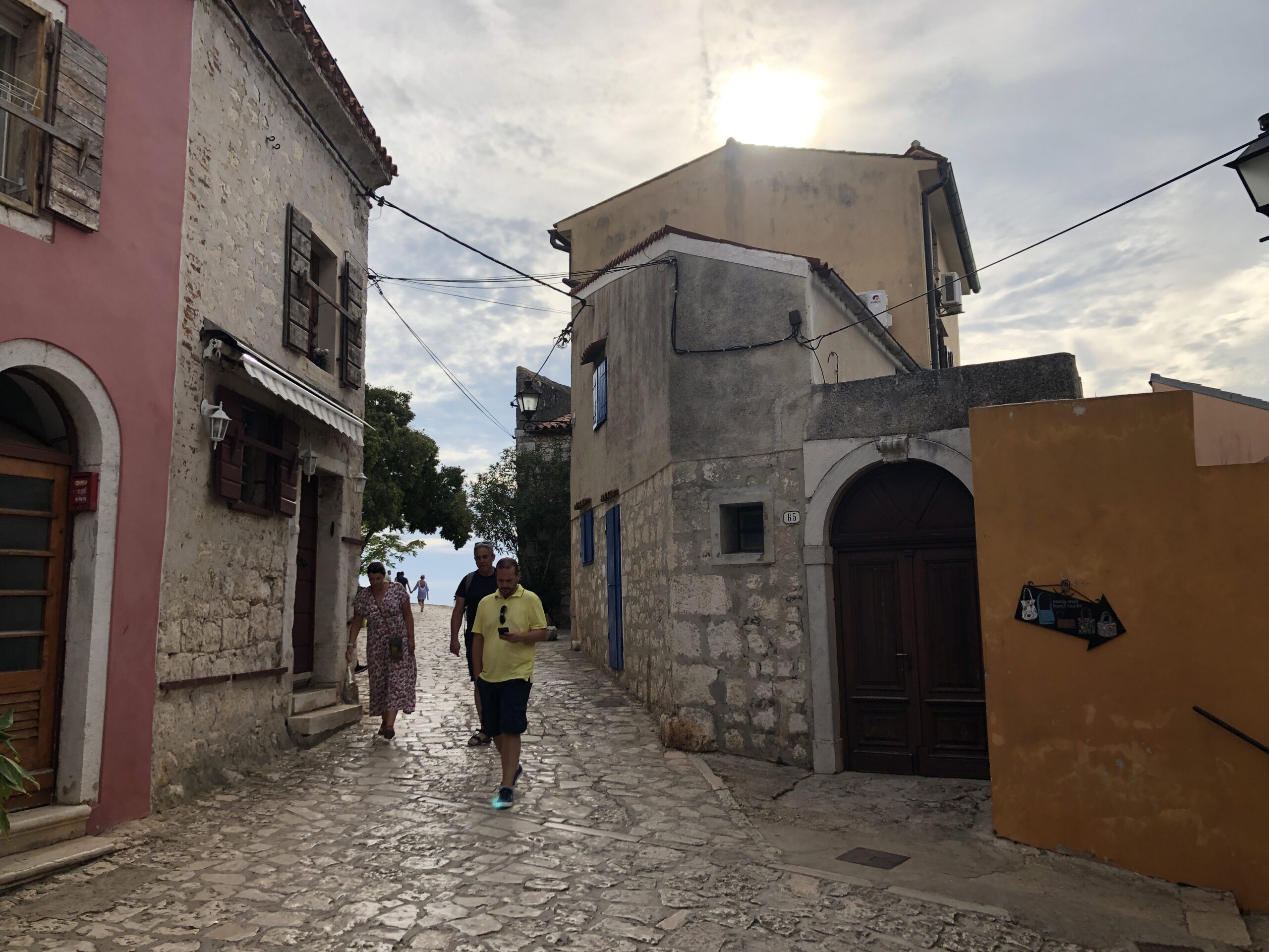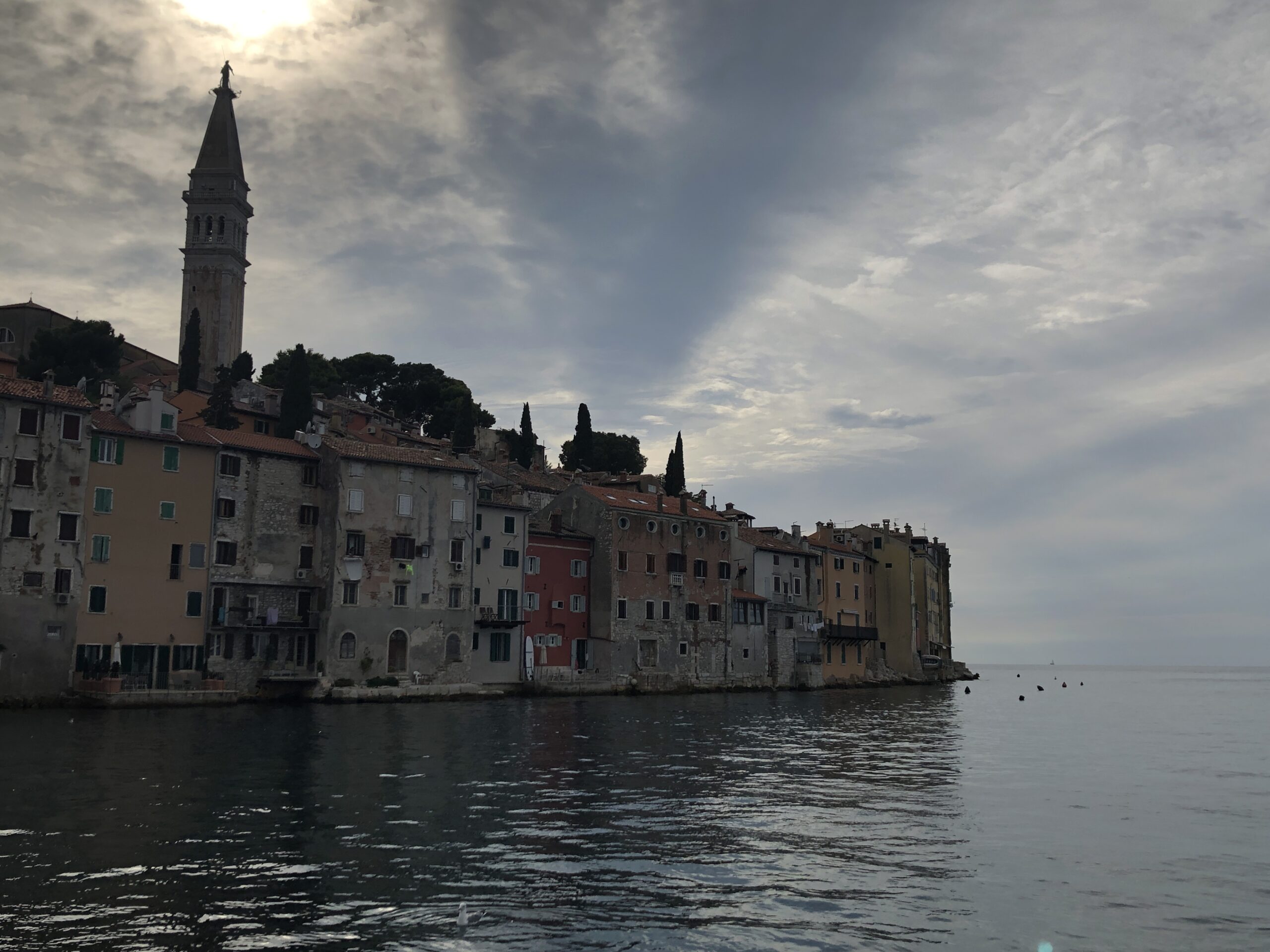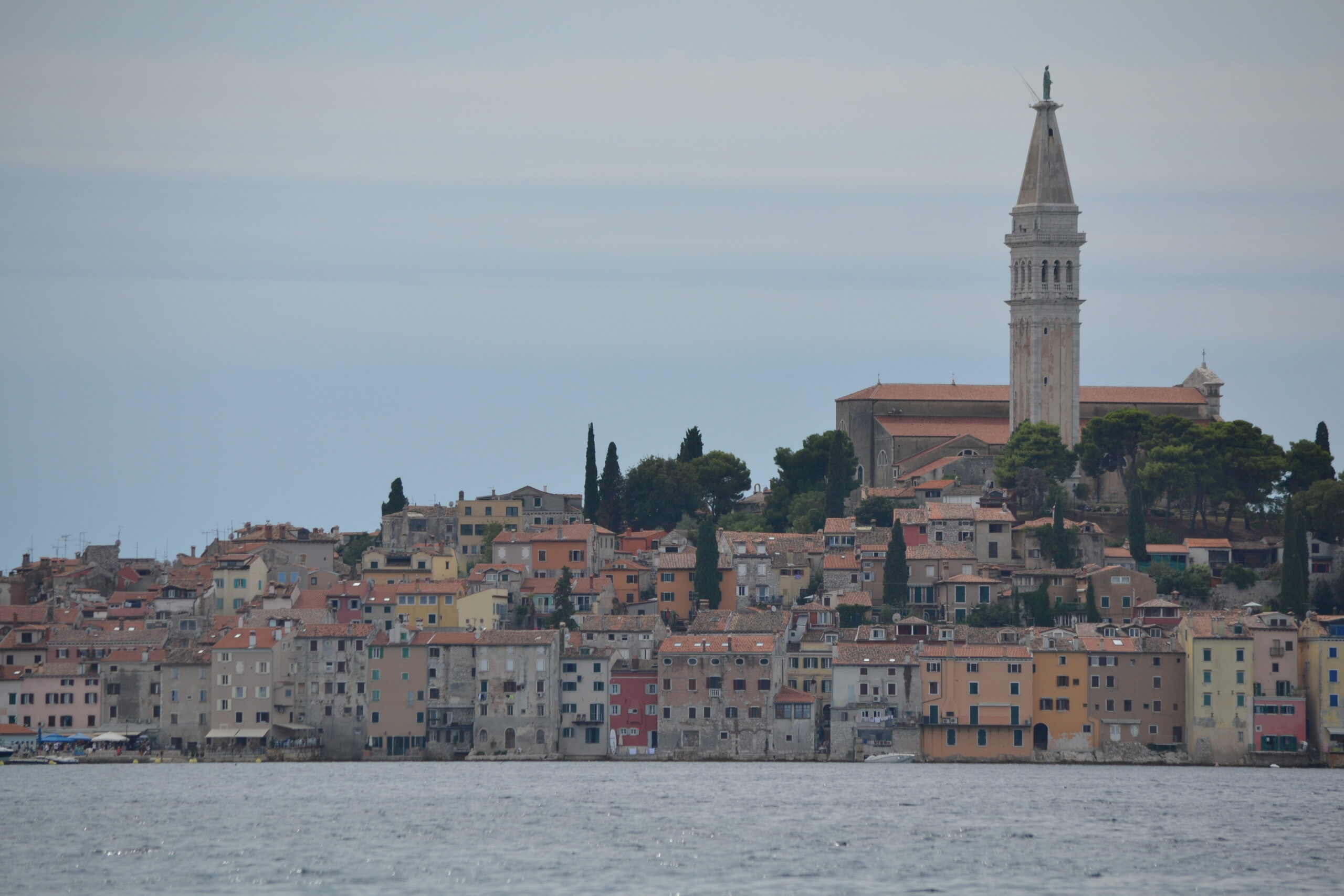 Tra le tante barche ce n’è una che assomiglia al pesciolino Nemo. Il suo fondo è trasparente ed è possibile ammirare i pesci che nuotano a pelo del fondale sabbioso. Il mare è una tavola e un giro è d’obbligo. Al largo Rovigno appare ancora più bella. Le casette a picco sul mare fanno un certo effetto. Immagino un ospite un po’ frettoloso che, in cerca del bagno, apre la porta che conduce dritta nell’Adriatico. “Franco! Me lo potevi dire che tenevi il mare in salotto! Li muerti…”