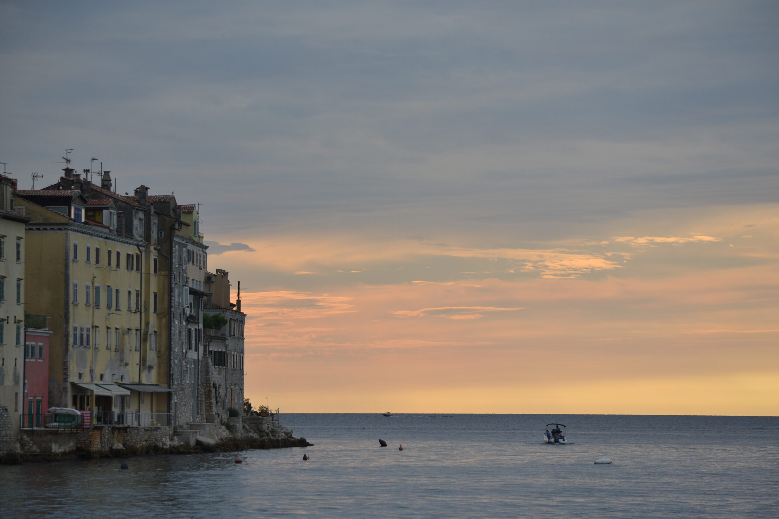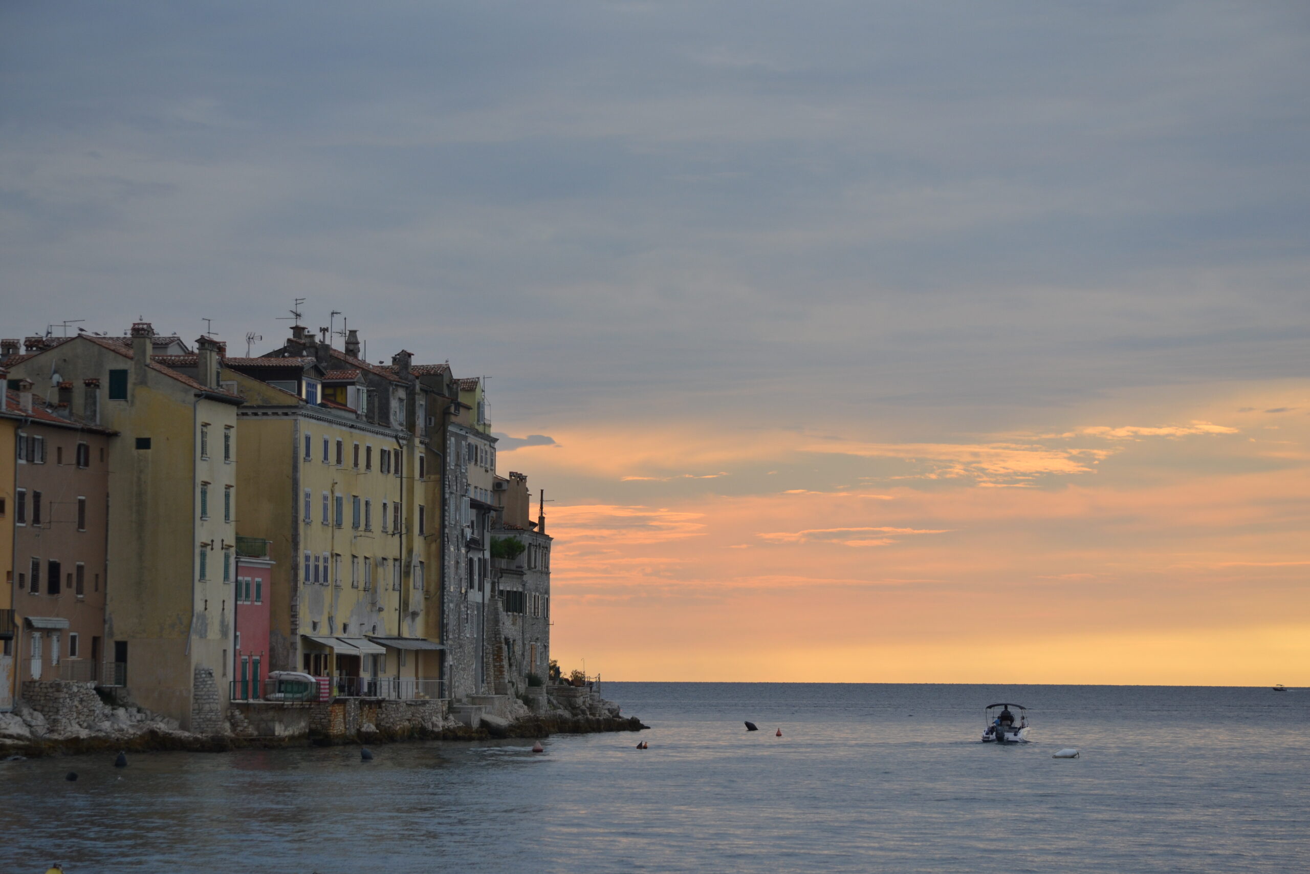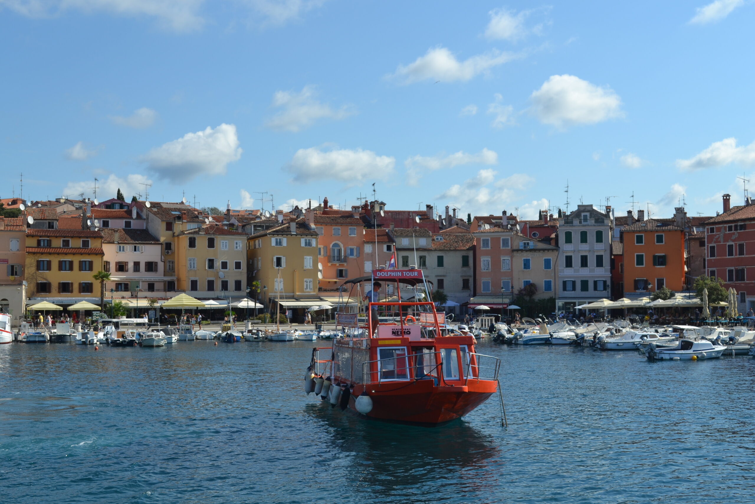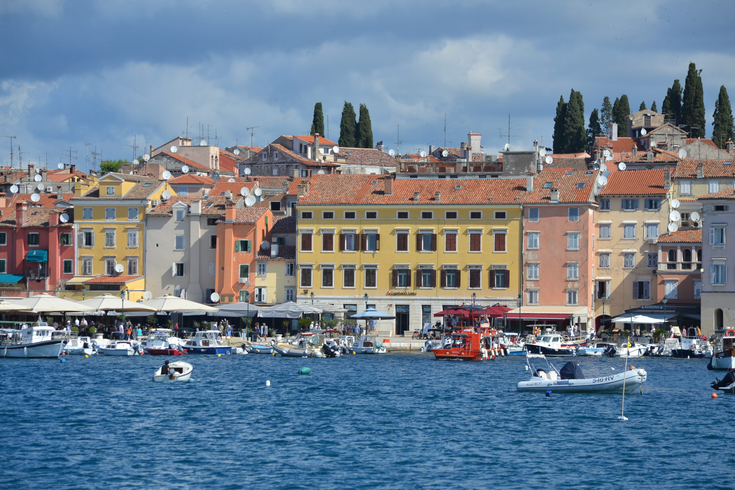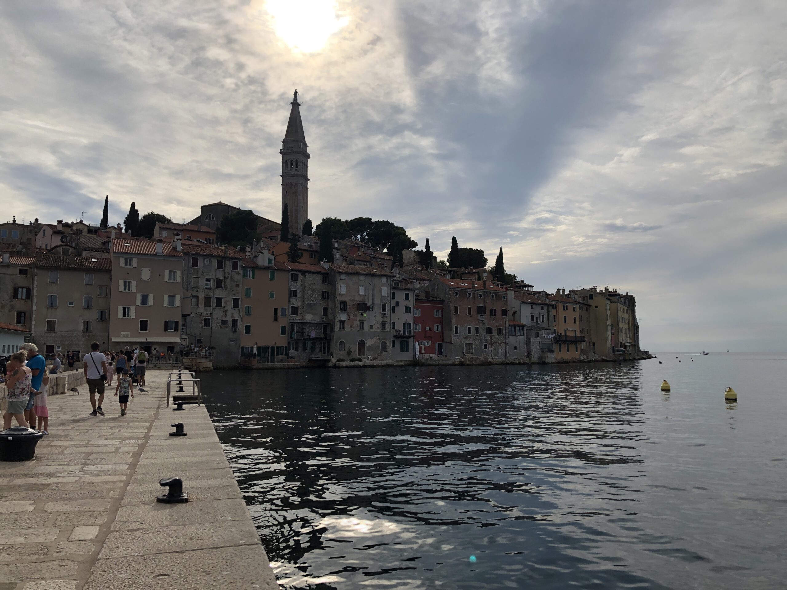 Tra le tante barche ce n’è una che assomiglia al pesciolino Nemo. Il suo fondo è trasparente ed è possibile ammirare i pesci che nuotano a pelo del fondale sabbioso. Il mare è una tavola e un giro è d’obbligo. Al largo Rovigno appare ancora più bella. Le casette a picco sul mare fanno un certo effetto. Immagino un ospite un po’ frettoloso che, in cerca del bagno, apre la porta che conduce dritta nell’Adriatico. “Franco! Me lo potevi dire che tenevi il mare in salotto! Li muerti…”