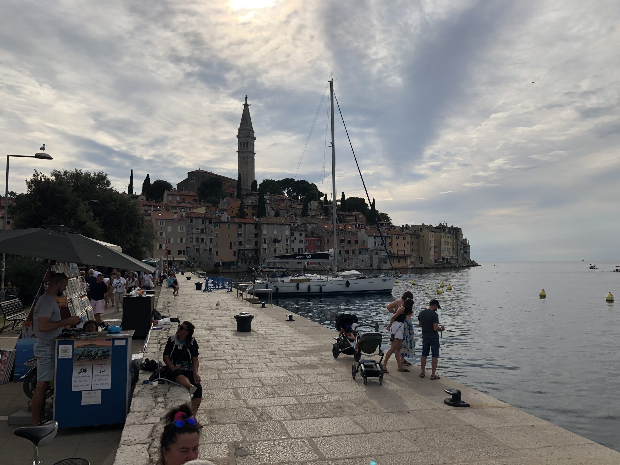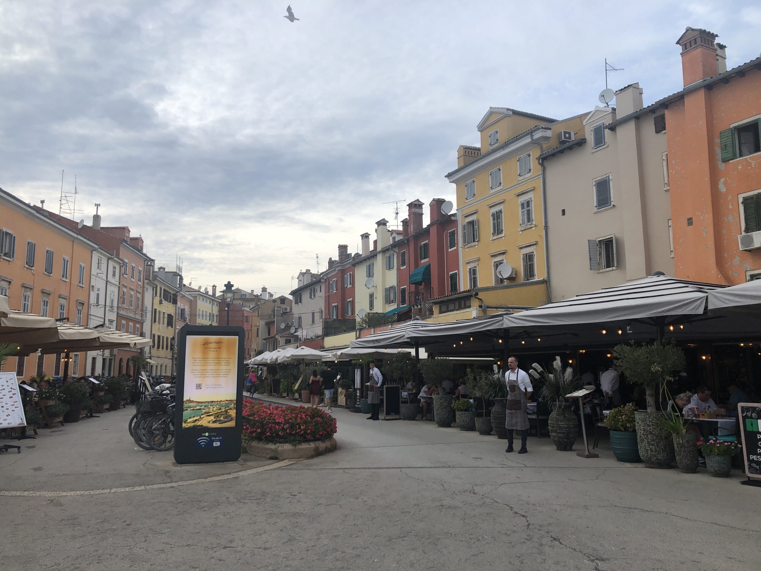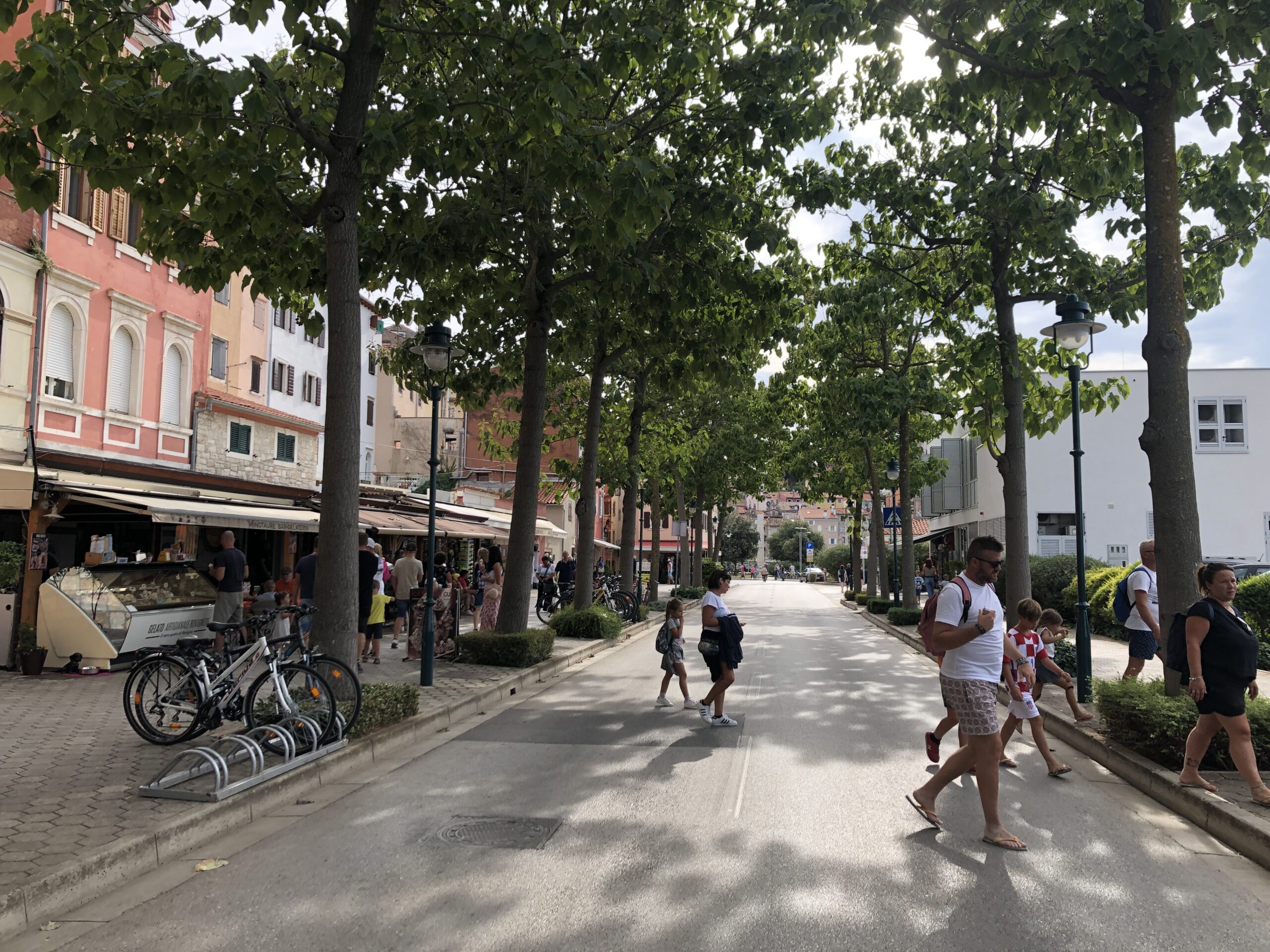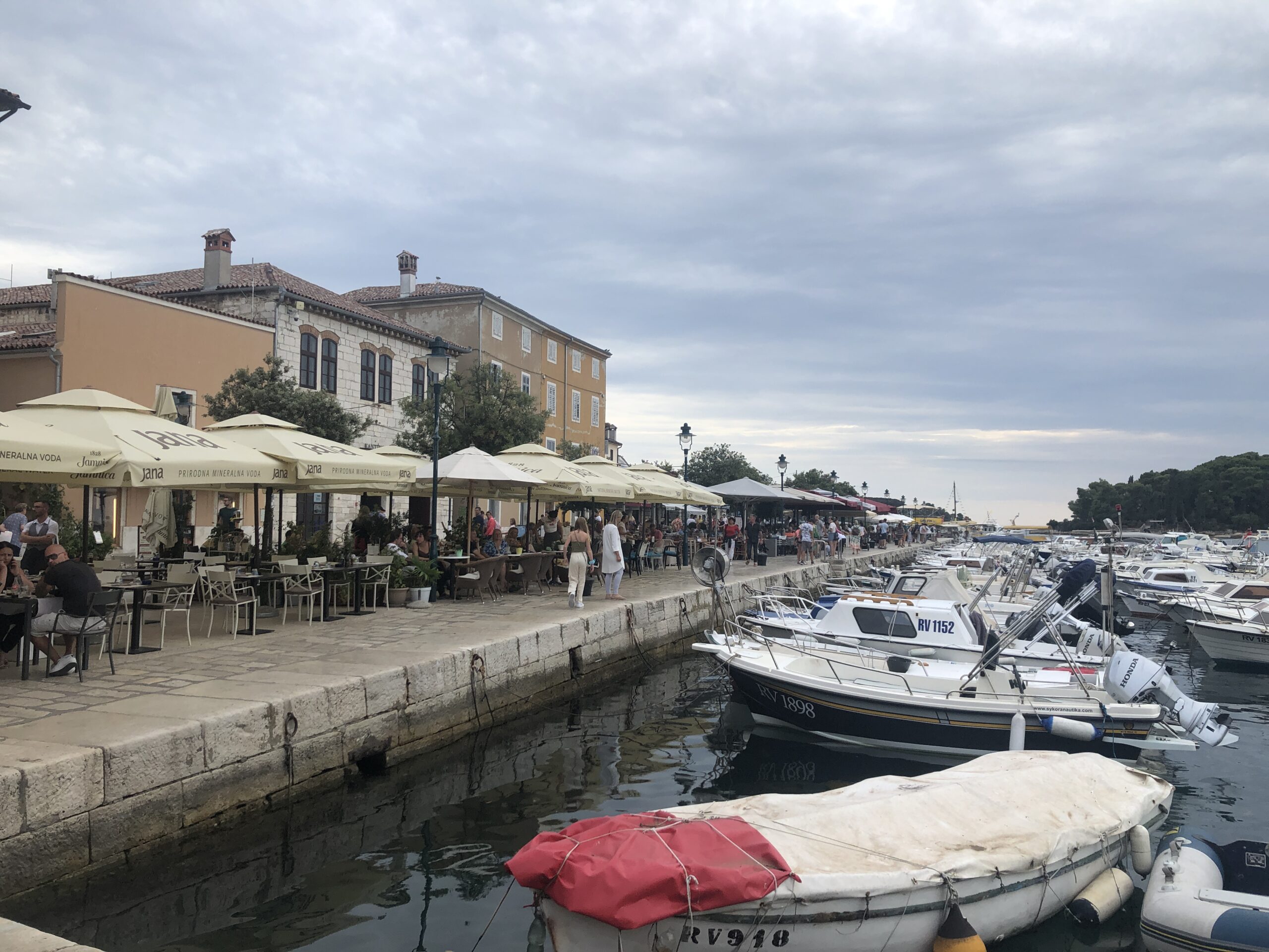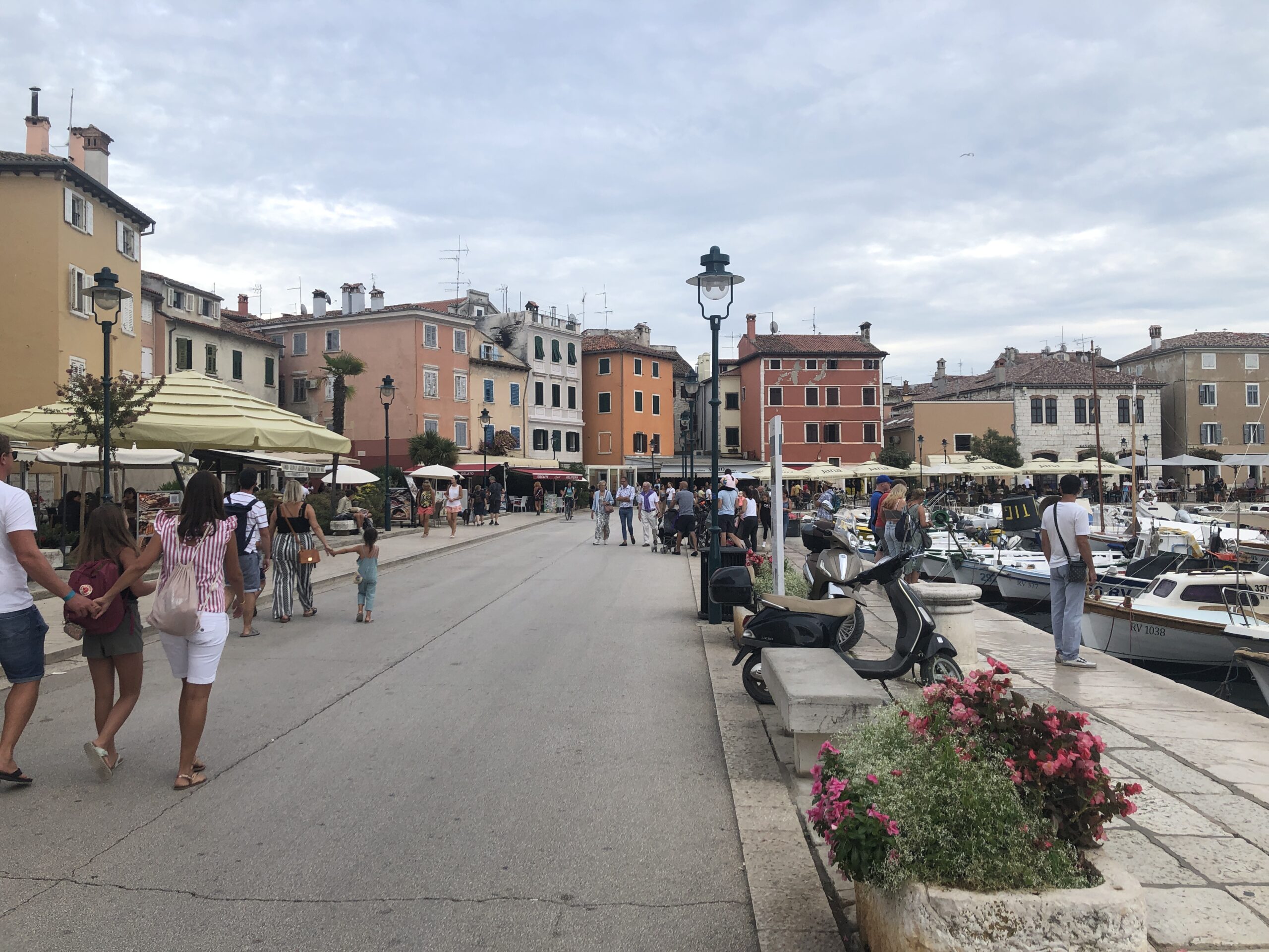 Visitare questa piccola perla d’Istria è semplicissimo. Dal parcheggio vicino all’attracco dei pescherecci parte un lungomare ricco di negozi e piccoli bar che finisce con un mercato all’aperto. Prodotti tipici e frutta fresca invadono i banchi e, poco distanti i ristoranti mettono in bella mostra il pescato del giorno accanto ai tavolini quadrati posizionati a due metri dall’acqua. Immancabili, come in ogni località di mare che si rispetti, gli stand appesantiti da teli da mare e borse da spiaggia.