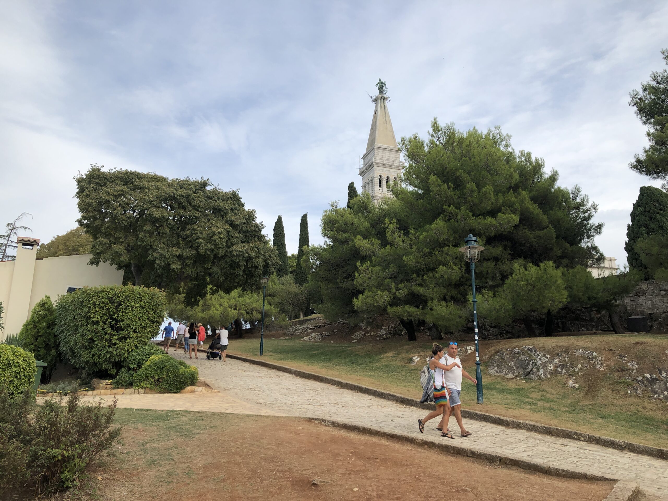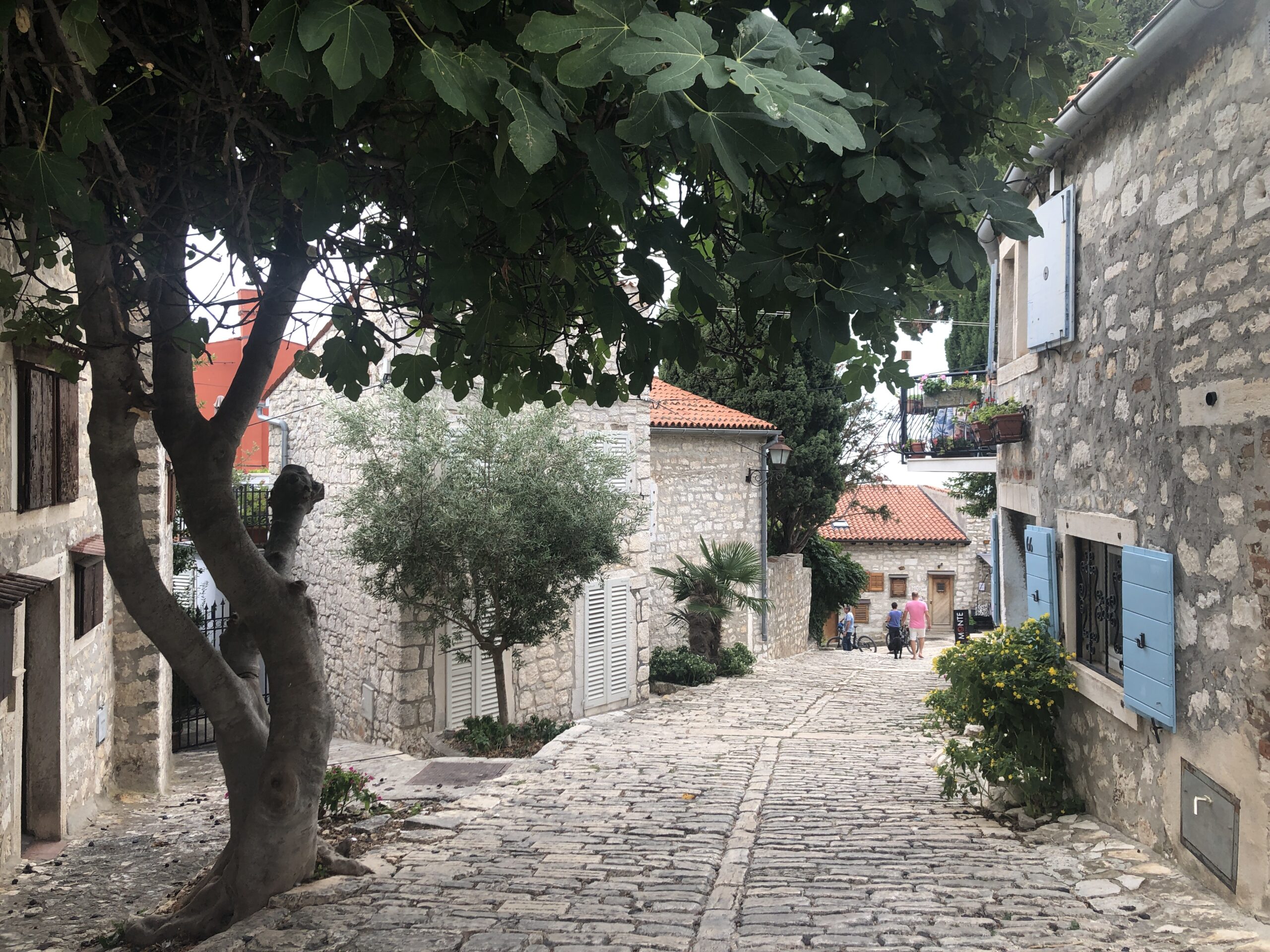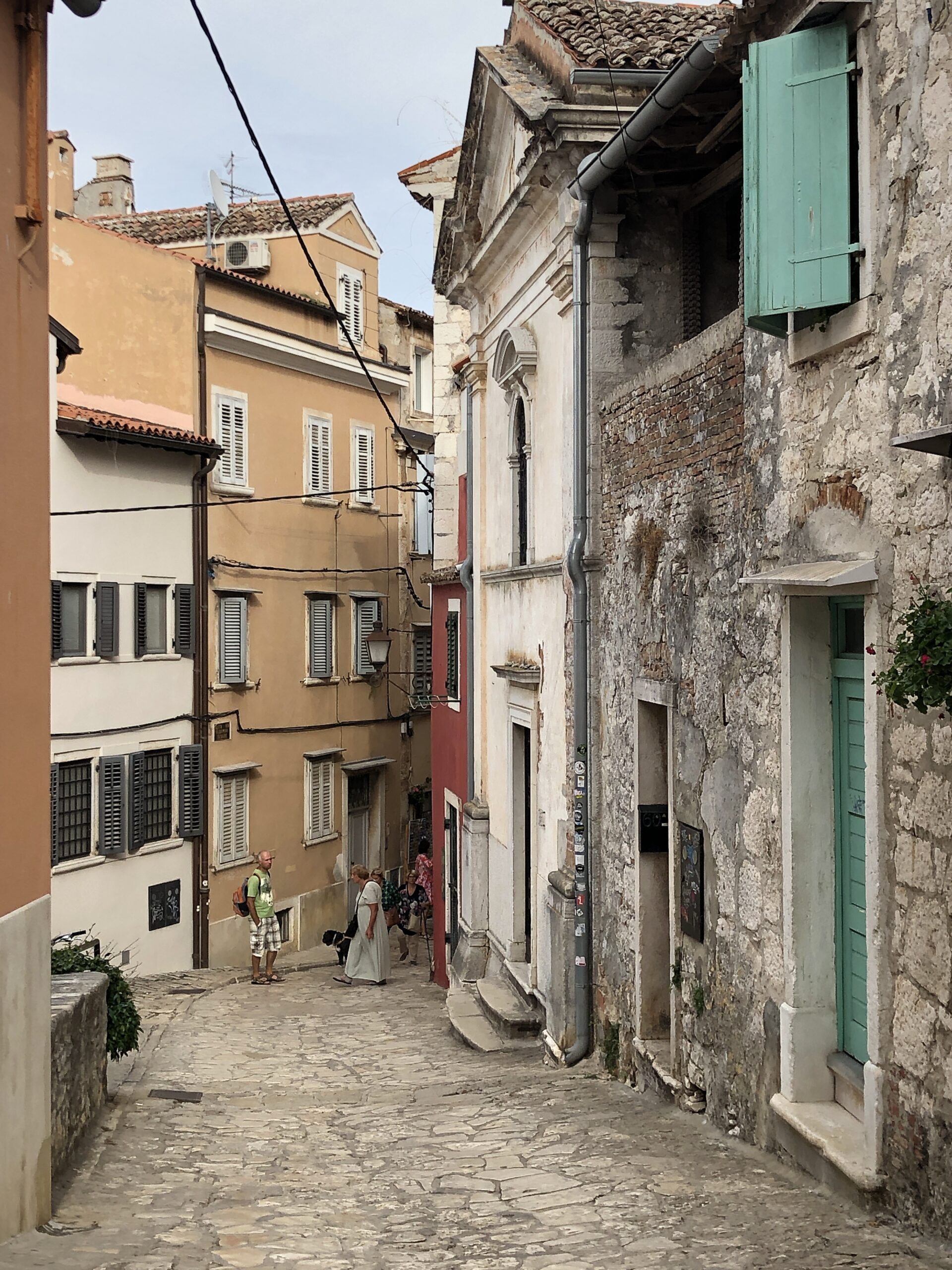 Una stretta stradina lastricata con pietre lisce color panna introduce ai vicoli nascosti di Rovigno. Negozietti per turisti e atelier di artisti allietano la passeggiata leggermente in salita che conduce in cima alla collina. Un piccolo faro, dei giardini pubblici e la cattedrale sono la conclusione della breve promenade. Scendendo dal lato opposto, sul retro della chiesa per intenderci, altre piccole vie piene di colori conducono all’altro lato della città. Proprio qui si trovano il maggior numero di ristoranti e locali, tutti affacciati sul porticciolo gremito di imbarcazioni in legno. C’è un’atmosfera rilassata e spensierata.
