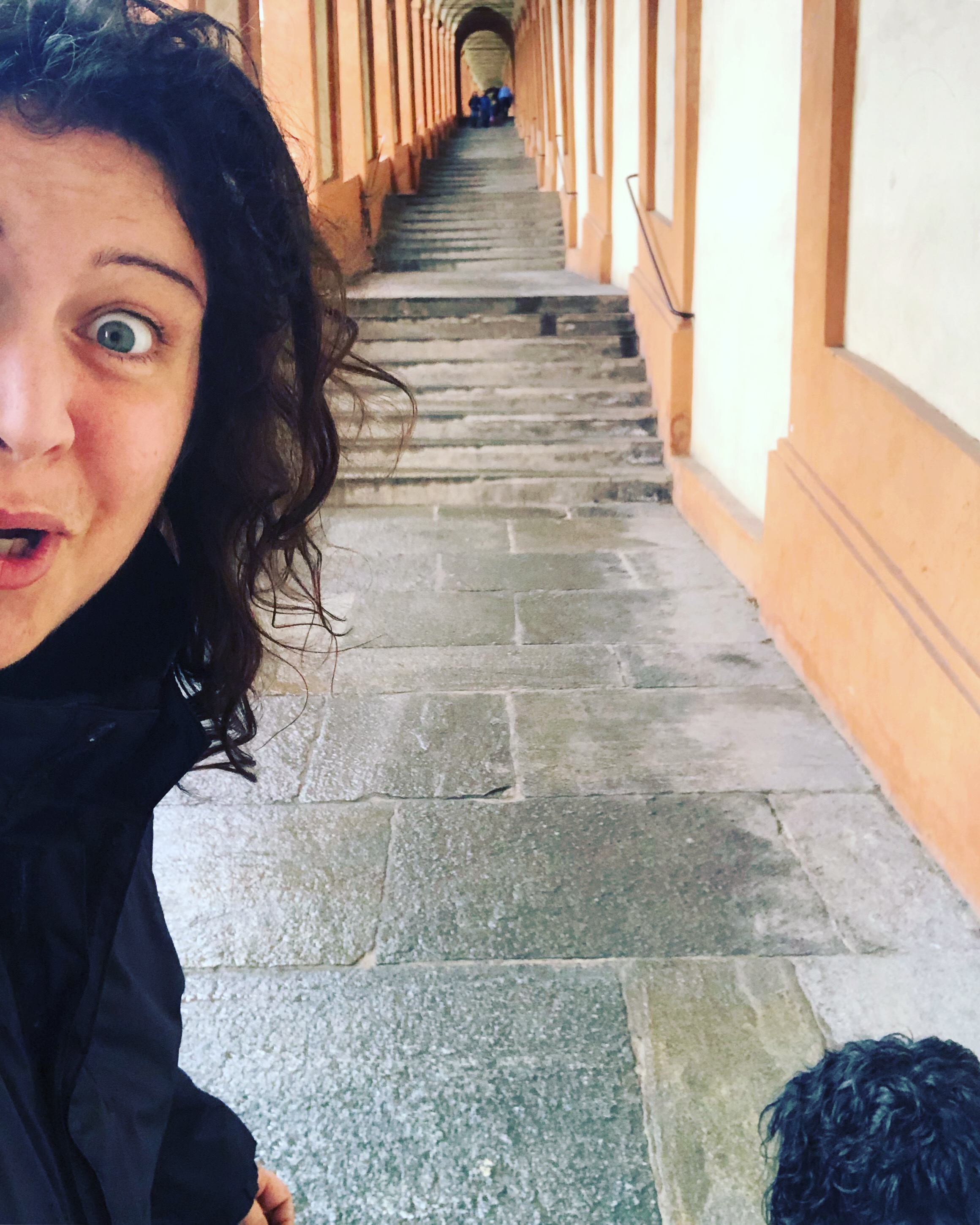 Pare sia il più lungo d’Europa composto da 666 arcate (certo per la Madonna ne potevano costruire anche uno in più già che ci si trovavano) e 489 scalini (non li ho contati, a dire il vero, ho perso il conto a 21).