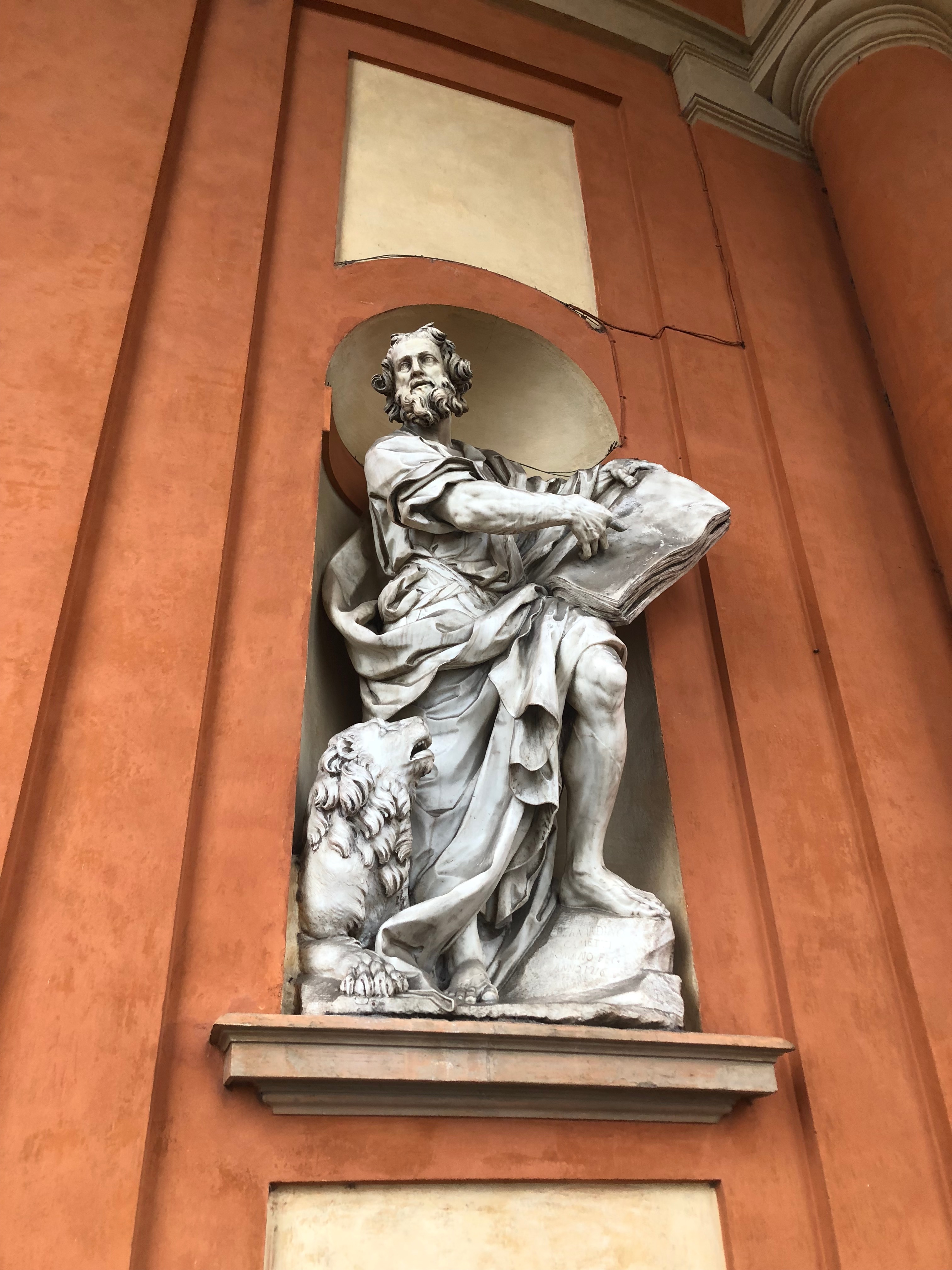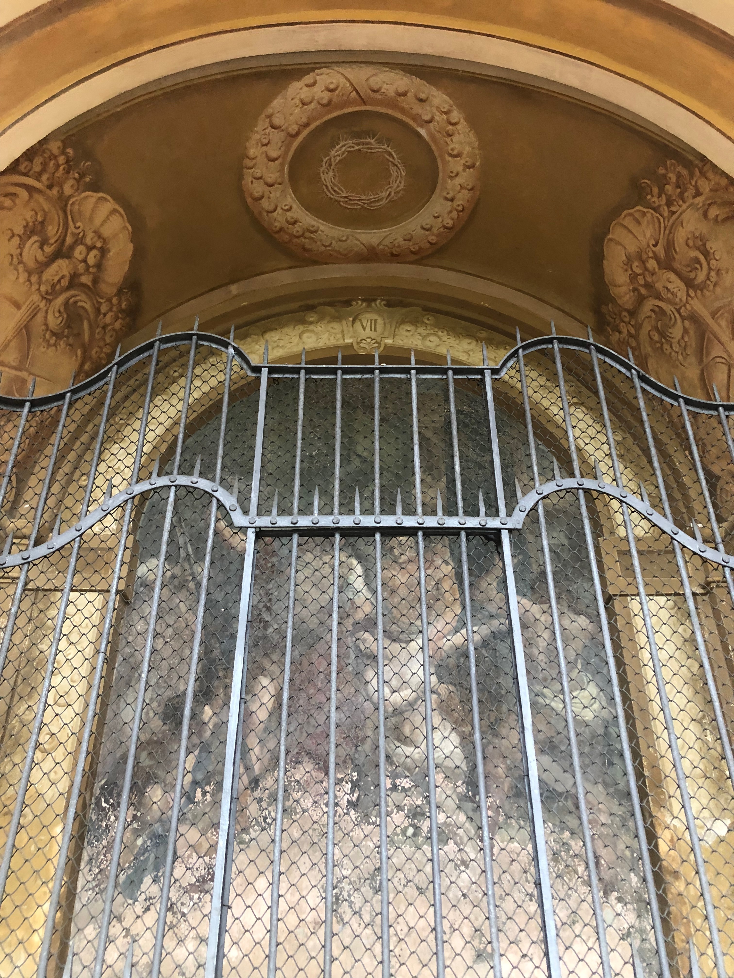 La mia ascesa è molto poco spirituale, non vedo l’ora che finisca, ci sono degli affreschi di tanto in tanto ma sono così scuri e le grate protettive così spesse, che, per me, potrebbe esserci raffigurato di tutto, un’immagine sacra, un paesaggio o addirittura Garfield.