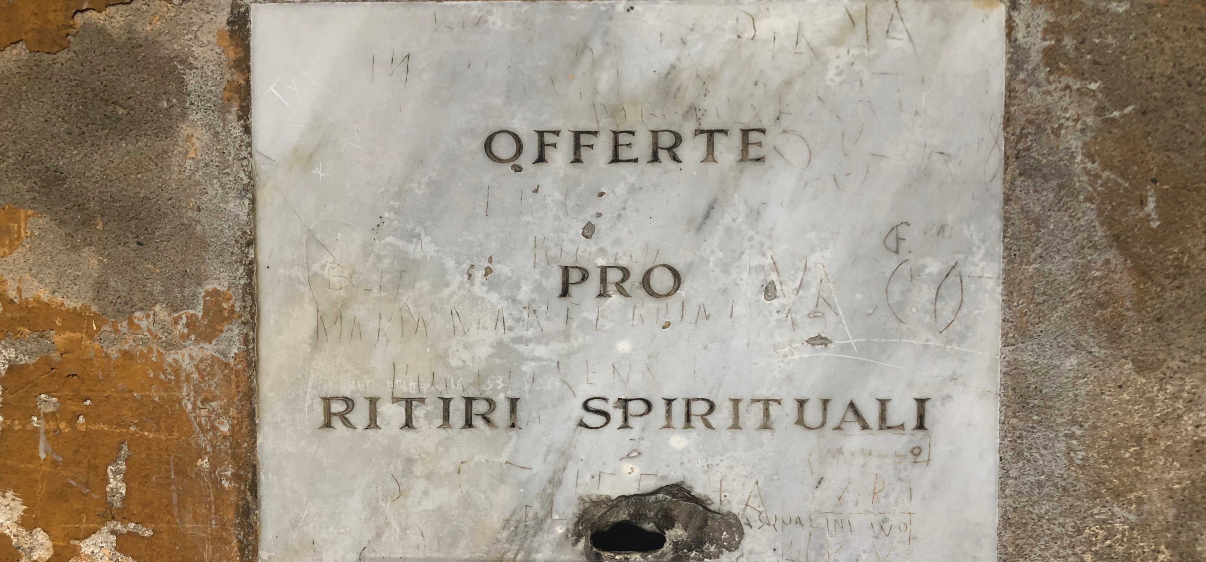 Gli scalini irriverenti mi fan sbuffare come un capodoglio a pelo d’acqua; di tanto in tanto scorgo una fessura sul muro con piccoli cartelli che invitano alla donazione.