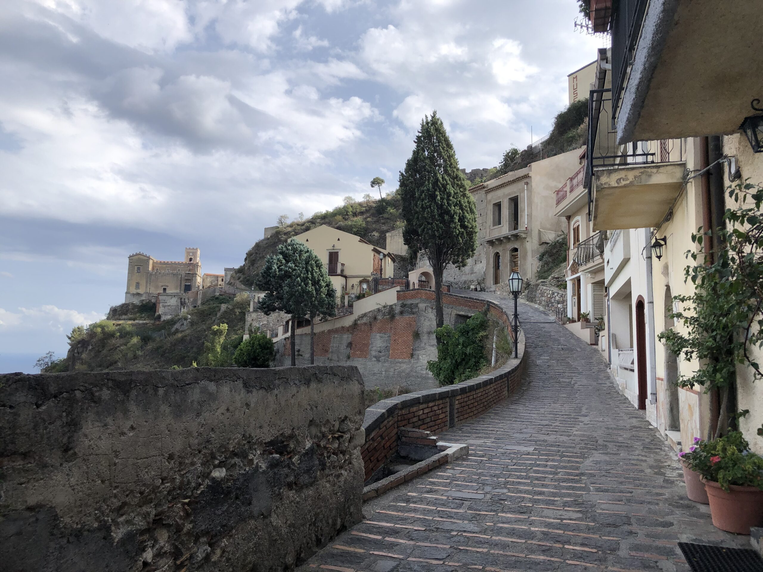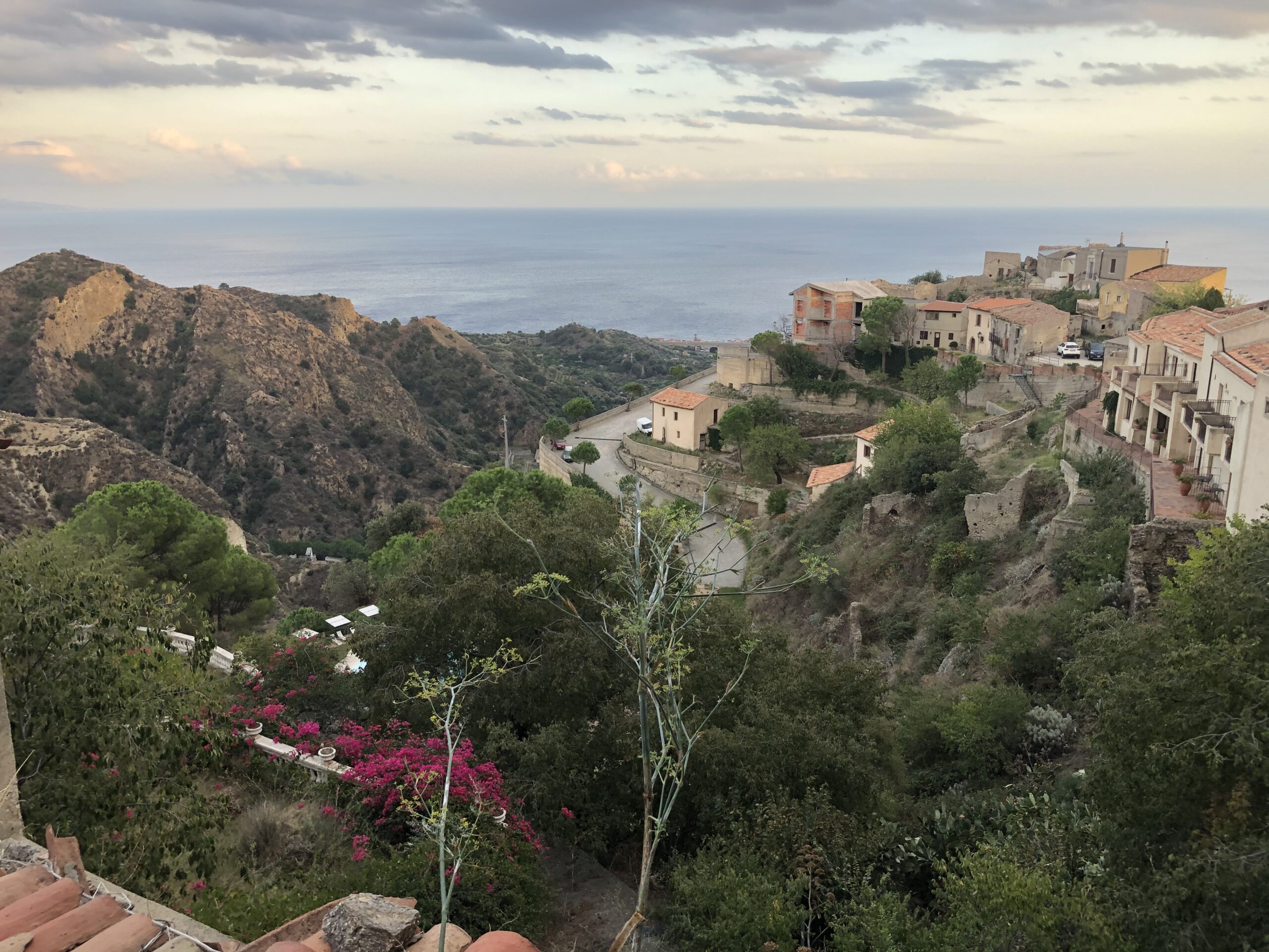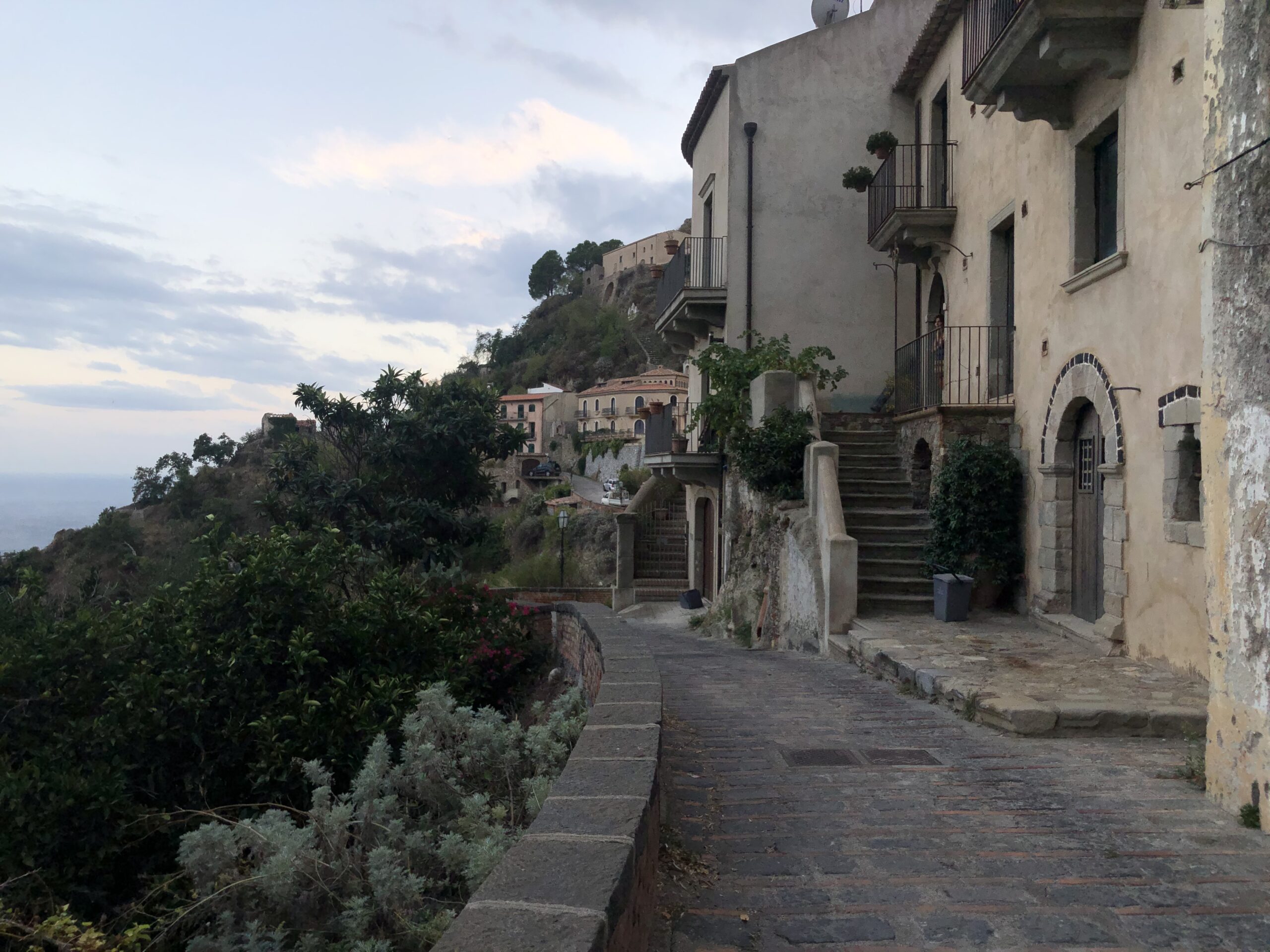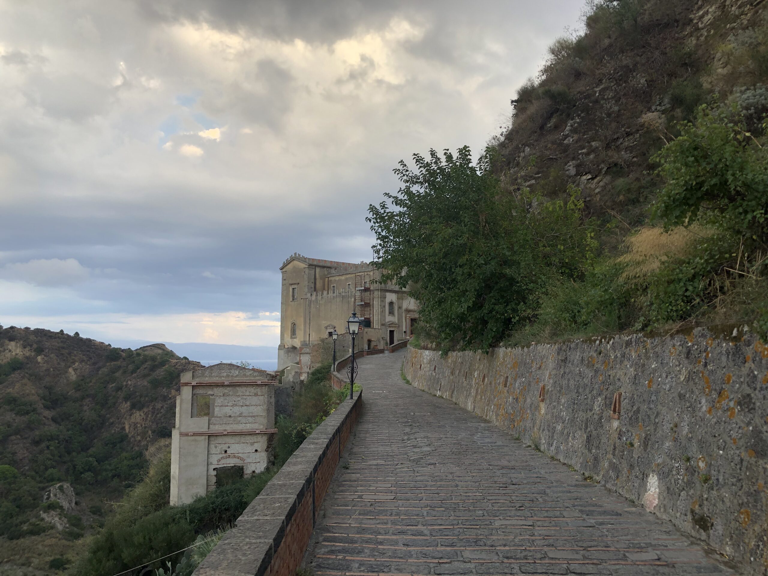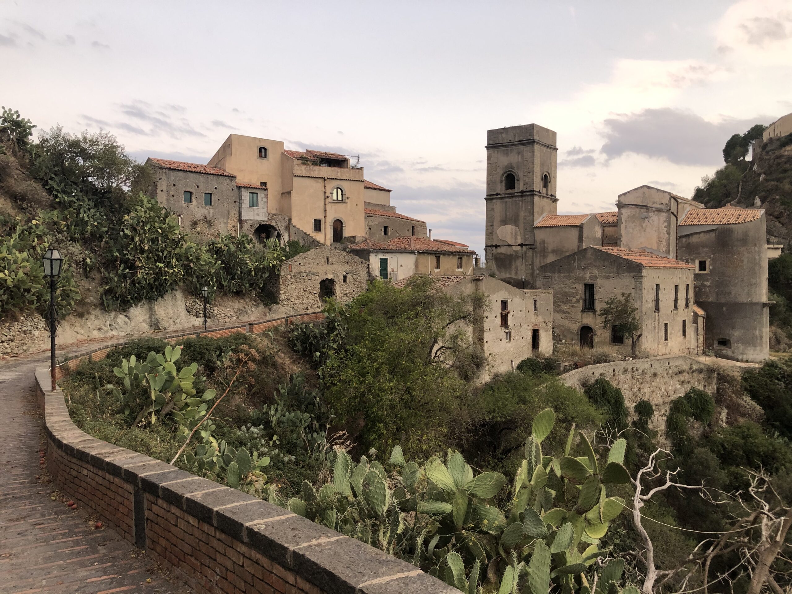 Una strada lastricata gira intorno al paese, è ben illuminata e permette di camminare anche dopo che è calato il sole. Il panorama lungo tutto il percorso è entusiasmante: c’è sempre lui, il mare, che si mostra con tutte le sue sfumature di blu; ci sono i fichi d’india che macchiano di verde le pareti color ocra delle colline; ci sono le rovine del castello sulla sommità del promontorio dal quale si apprezza una vista a 360 gradi; c’è la chiesa del celebre matrimonio dei Corleone e poi ci sono loro, le vecchie case, alcune delle quali completamente mangiate dalla vegetazione, che conferiscono a tutto il paesaggio un atmosfera malinconica.