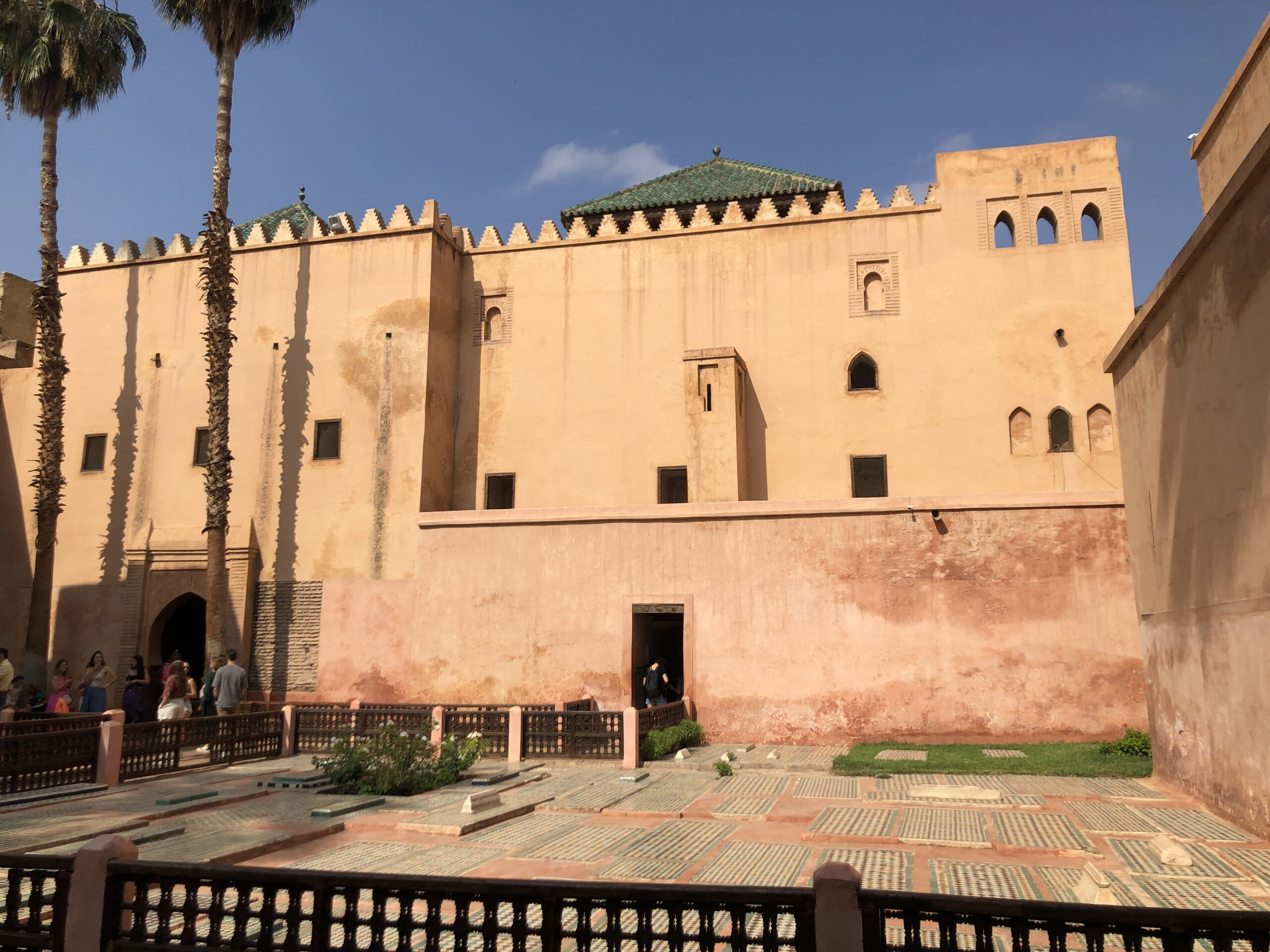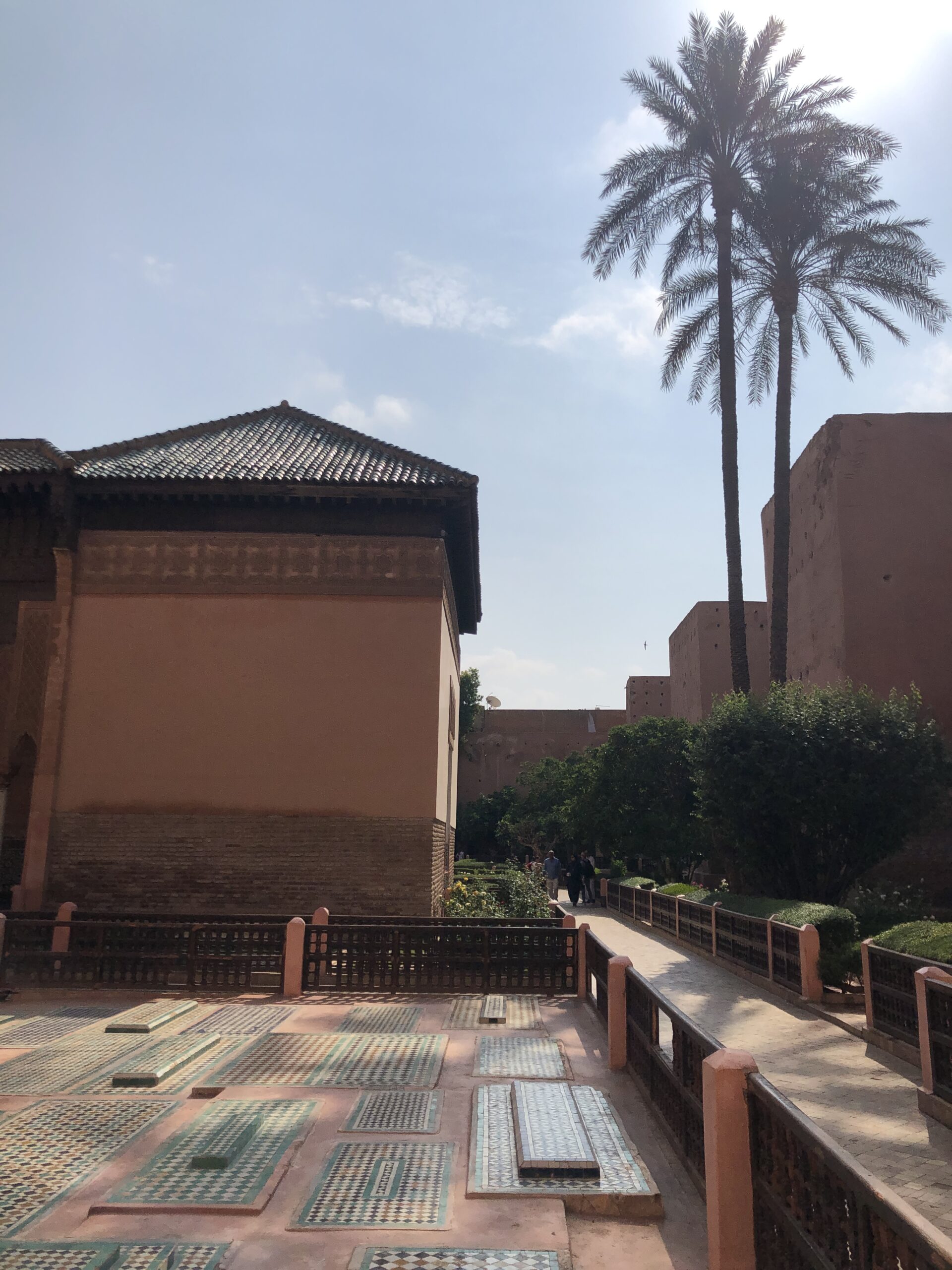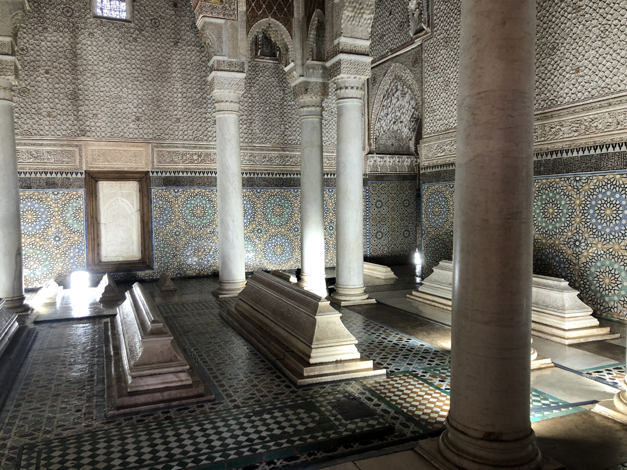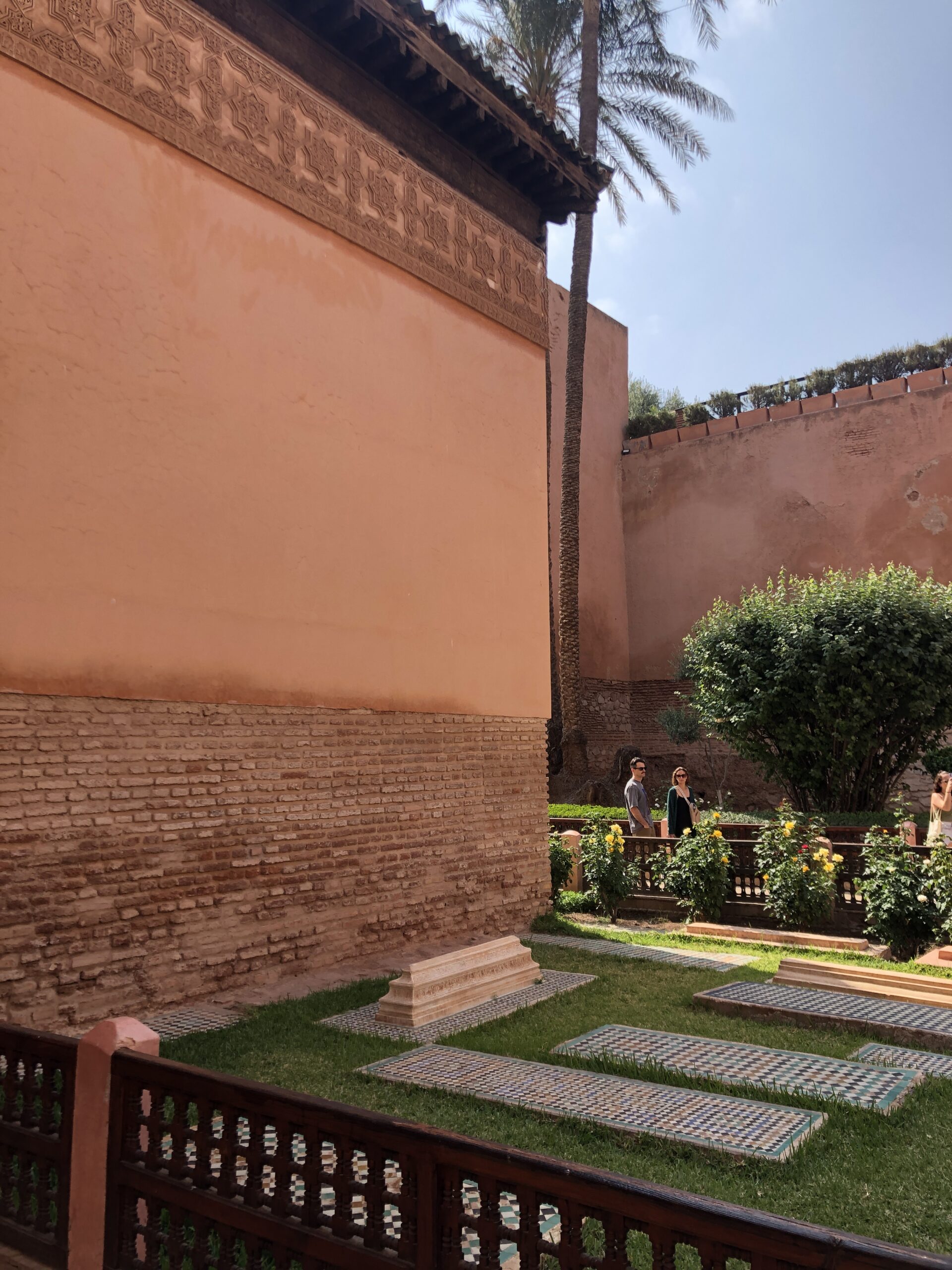 A tutti gli effetti si tratta di un cimitero monumentale, diviso in ambienti coperti ed aree verdi, che ospita centosessantasei tombe risalenti alla seconda metà 1500. Tra i defunti: il sultano Ahmad al-Mansur (il committente) e i membri della sua famiglia, oltre a cancellieri e consorti. Le tre sale facenti parte del mausoleo principale, sono decorate con mosaici che rivestono senza soluzione di continuità pareti e tombe. I capitelli e le volte delle sale sembrano fatti di trine e, uno di questi ambienti (il più famoso), ha al suo interno ben dodici colonne.