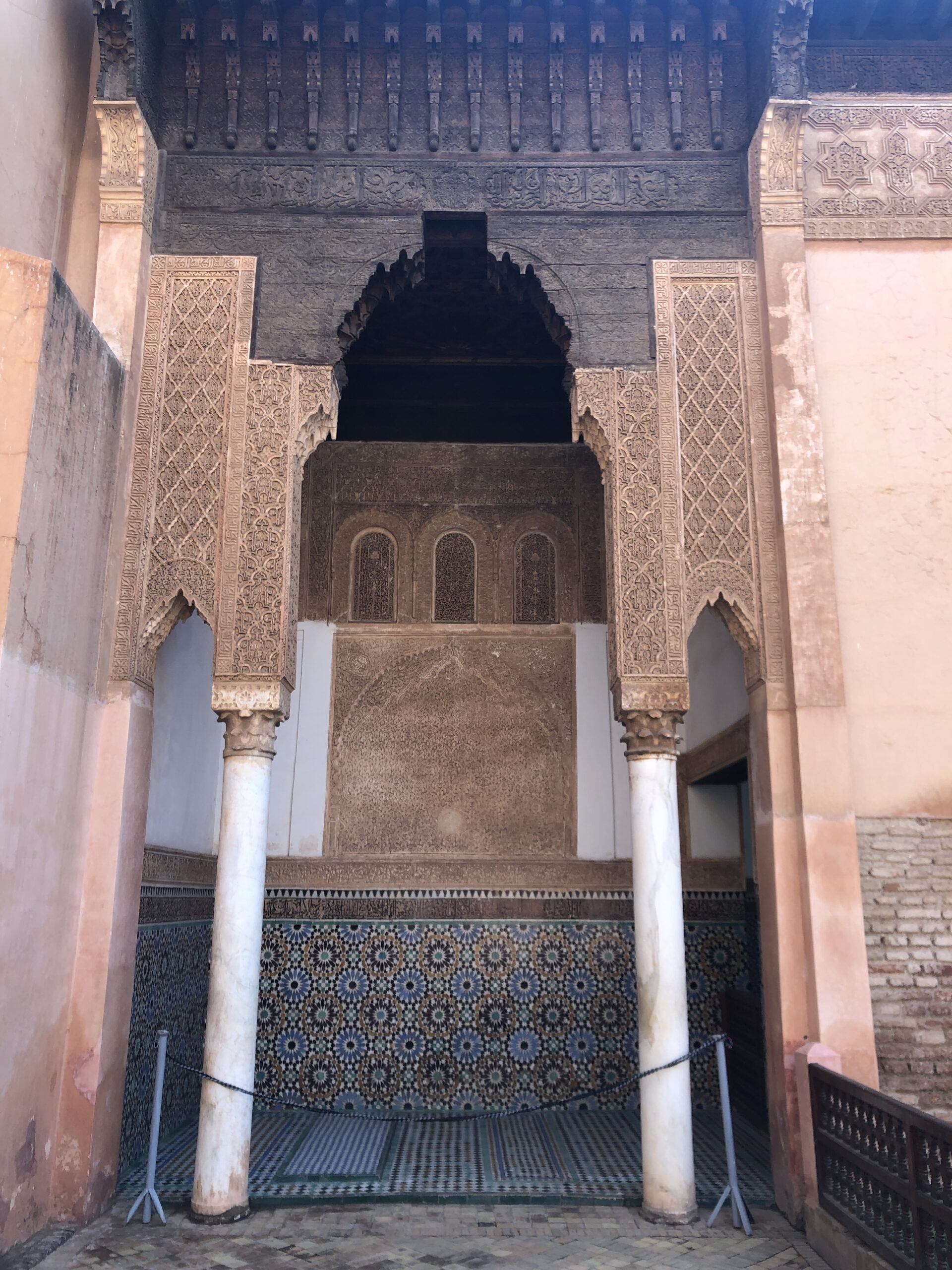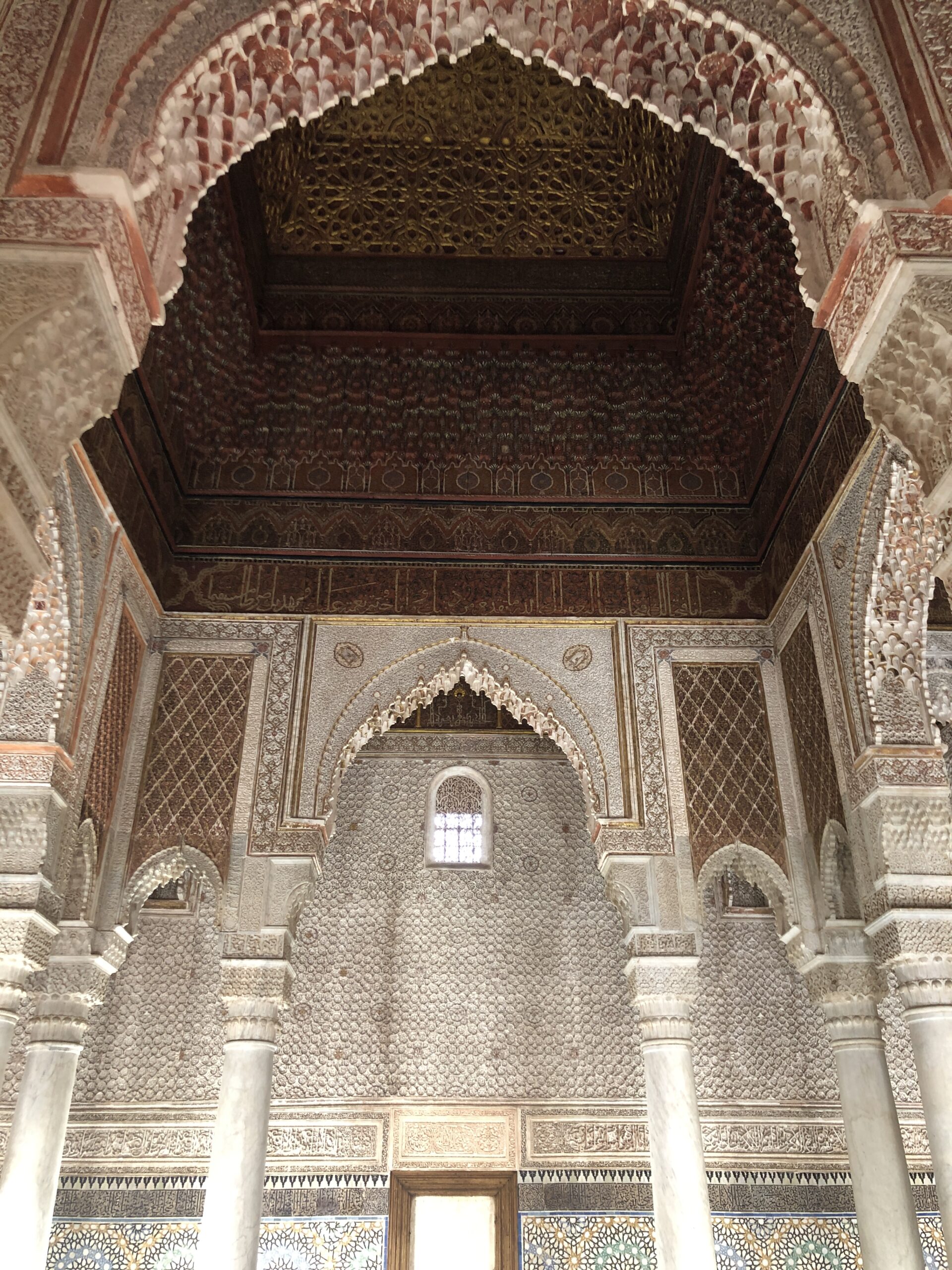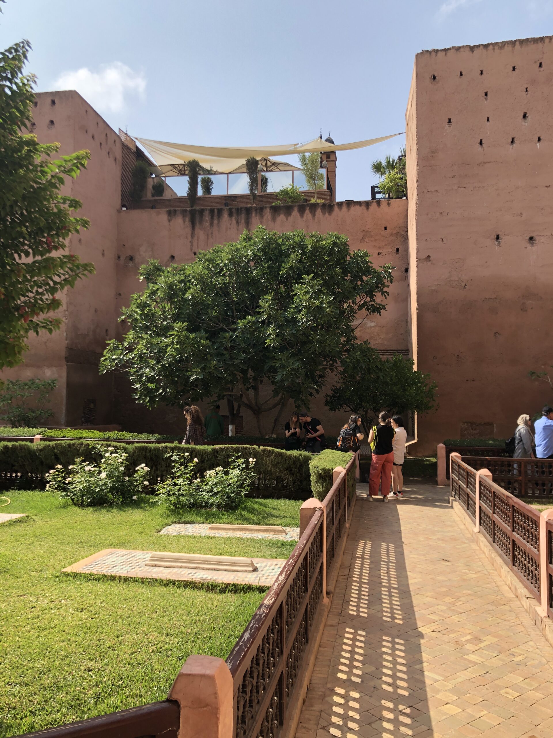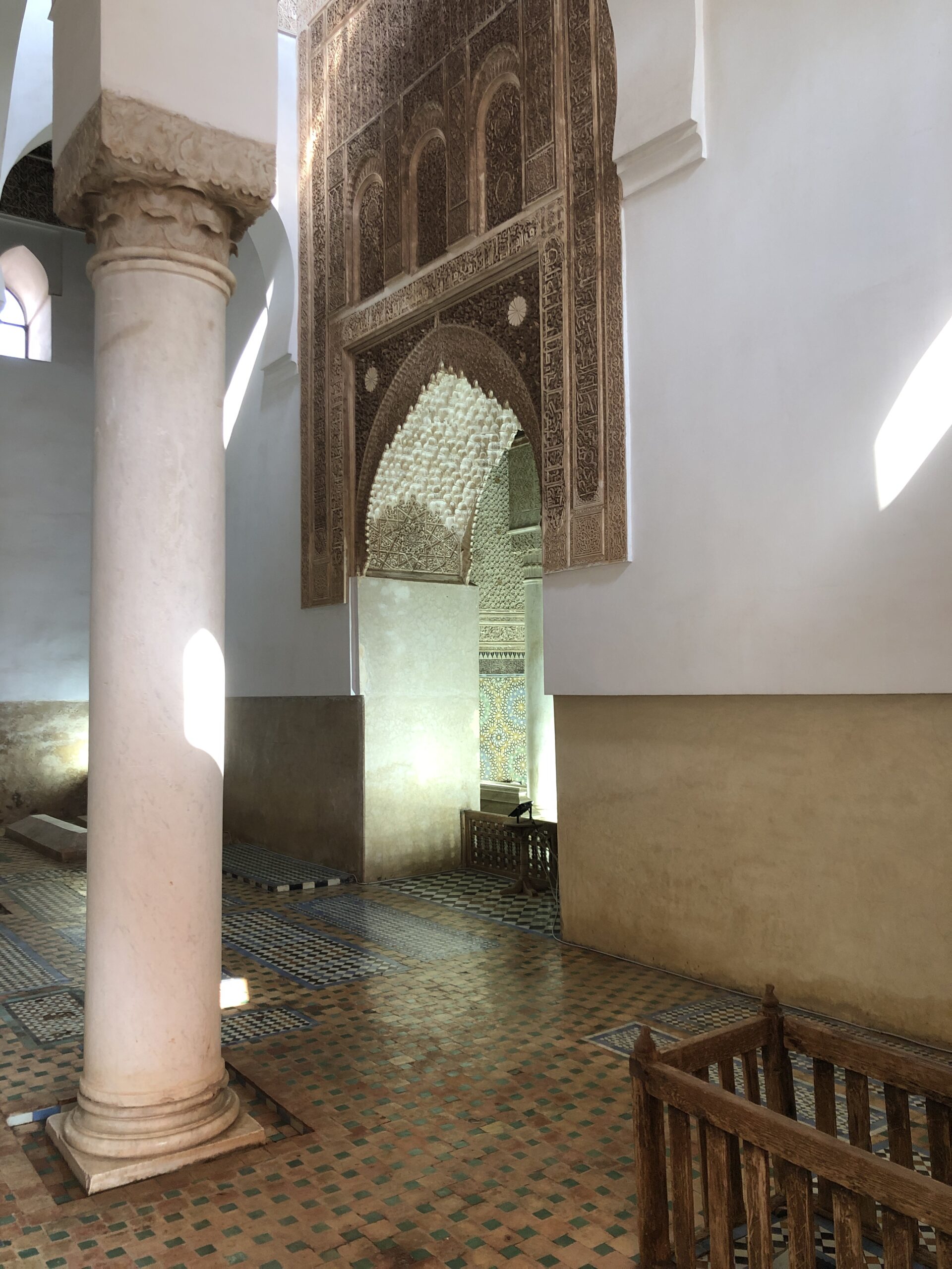 A tutti gli effetti si tratta di un cimitero monumentale, diviso in ambienti coperti ed aree verdi, che ospita centosessantasei tombe risalenti alla seconda metà 1500. Tra i defunti: il sultano Ahmad al-Mansur (il committente) e i membri della sua famiglia, oltre a cancellieri e consorti. Le tre sale facenti parte del mausoleo principale, sono decorate con mosaici che rivestono senza soluzione di continuità pareti e tombe. I capitelli e le volte delle sale sembrano fatti di trine e, uno di questi ambienti (il più famoso), ha al suo interno ben dodici colonne.