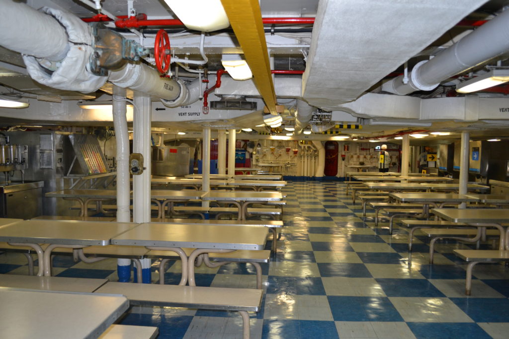Ci sono le brande dei marinai, le camere dei graduati, l’appartamento del capitano, il fabbro, il dentista, la sala operatoria, la lavanderia, la cucina, la sala riunioni, c’è proprio tutto.
