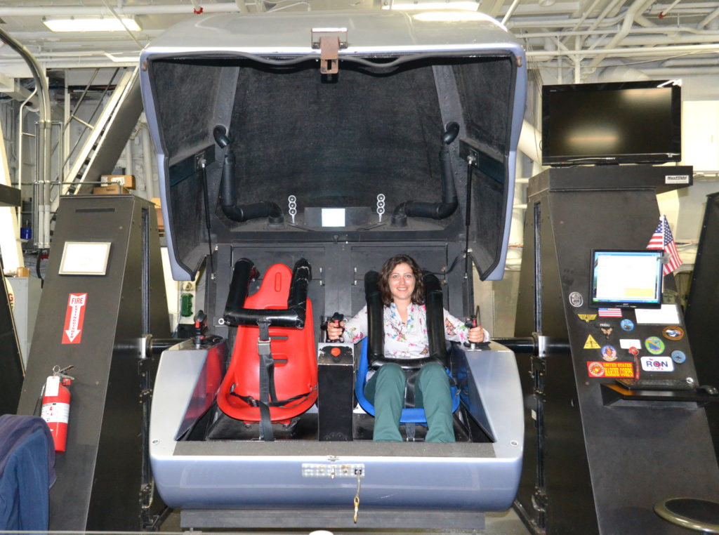 Sono come un ragazzino di otto anni, non ci capisco un cazzo di aerei ma faccio la fila per salire su ognuno di loro. Faccio persino un giro sul simulatore di volo. Che gran figata! Dopo essermi schiantata circa 7, forse 8 volte, e dopo aver implorato di fare l’ennesima prova in barba ai più piccoli che stavano aspettando in fila, riesco a pilotare per ben 20 secondi consecutivi! Scendo col sorriso stampato in faccia cercando di contenere l’euforia per non rischiare di ritrovarmi arruolata nei Top Gun data la mia eccellente prestazione.