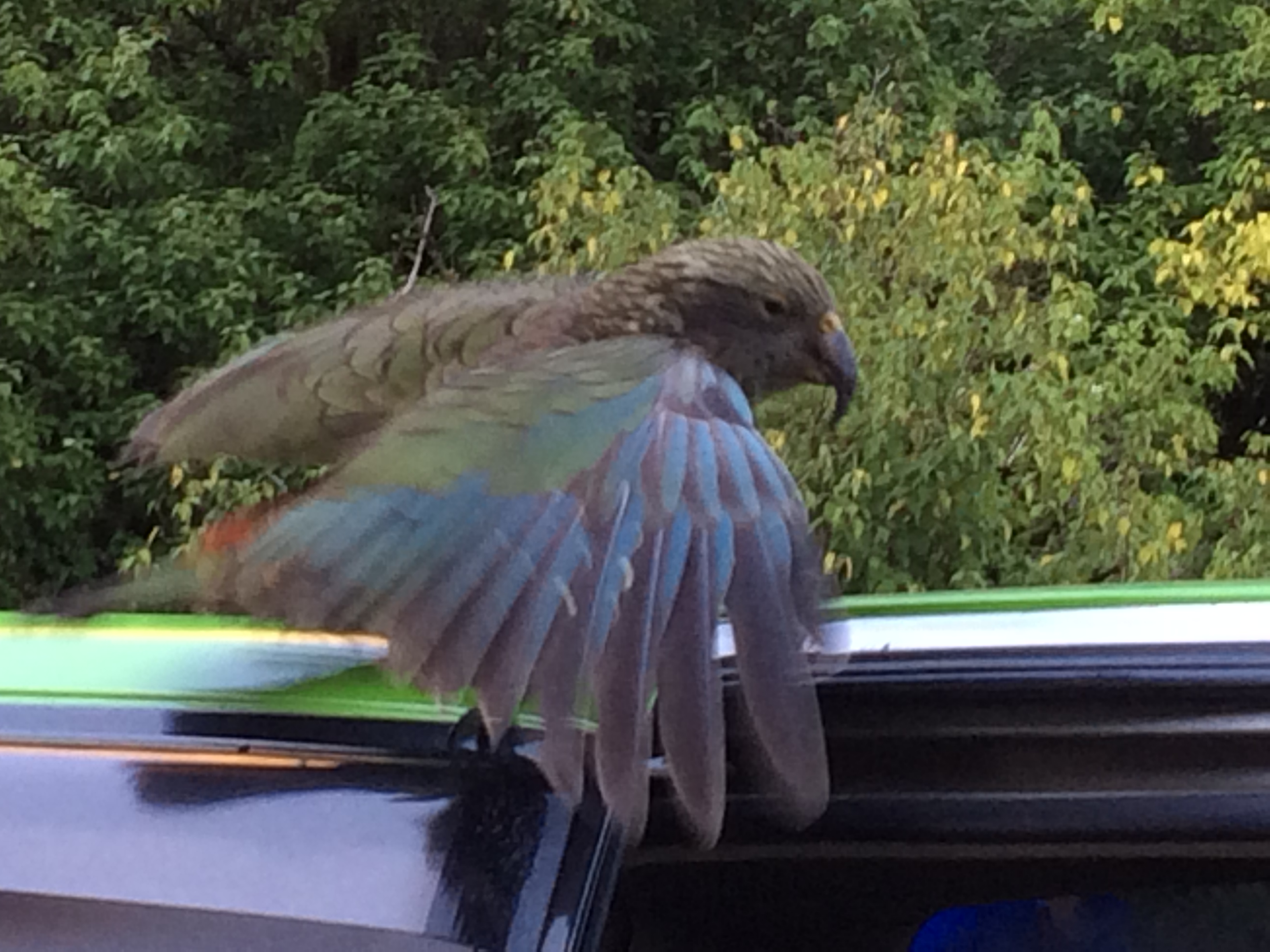 Ecco il kea, un pappagallo verde oliva di montagna. Curioso, dispettoso ed intelligentissimo. Sulla strada per Milford Sound c’è una piazzola di sosta, vediamo della gente girare intorno alle auto sorridendo, rallentiamo. Non si capisce cosa stiano facendo poi, da dietro una ruota spunta questo piccolo pennuto che se la cammina veloce cercando di rincorrere quelli che cercano di fargli una foto. E’ difficilissimo riuscire a fargli uno scatto decente, si muove senza paura tra le auto che parcheggiano, cammina tra le gambe delle persone e cerca di staccare pezzi di portiere. Sarà un chiaro segno d’ insofferenza al turista?