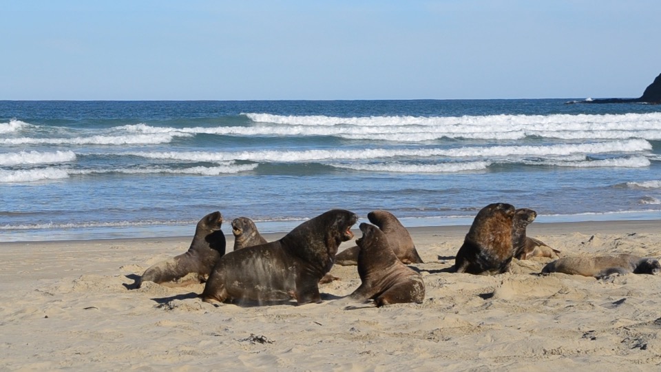 Sulle coste del distretto di Kaikoura è possibile stare seduti sulla spiaggia ad ammirare i leoni marini che si riscaldano al sole distesi a pancia all’aria come il quindici di agosto, sotto l’ombrellone, dopo la grande abbuffata di mezzogiorno. Ogni tanto muovono le pinne per gettarsi sabbia addosso oppure soffiano rumorosamente e si mettono su un fianco. Sono veramente degli animali buffi. É una comunità numerosa e ad un certo punto alcuni di loro si mettono a giocare (suppongo, o a litigare, non posso saperlo con assoluta certezza perché non capisco il loro linguaggio purtroppo) e lo fanno alitandosi raucamente addosso. Hanno un verso proprio particolare assomiglia vagamente al mio primo “buongiorno” del mattino dato senza voglia alcuna.