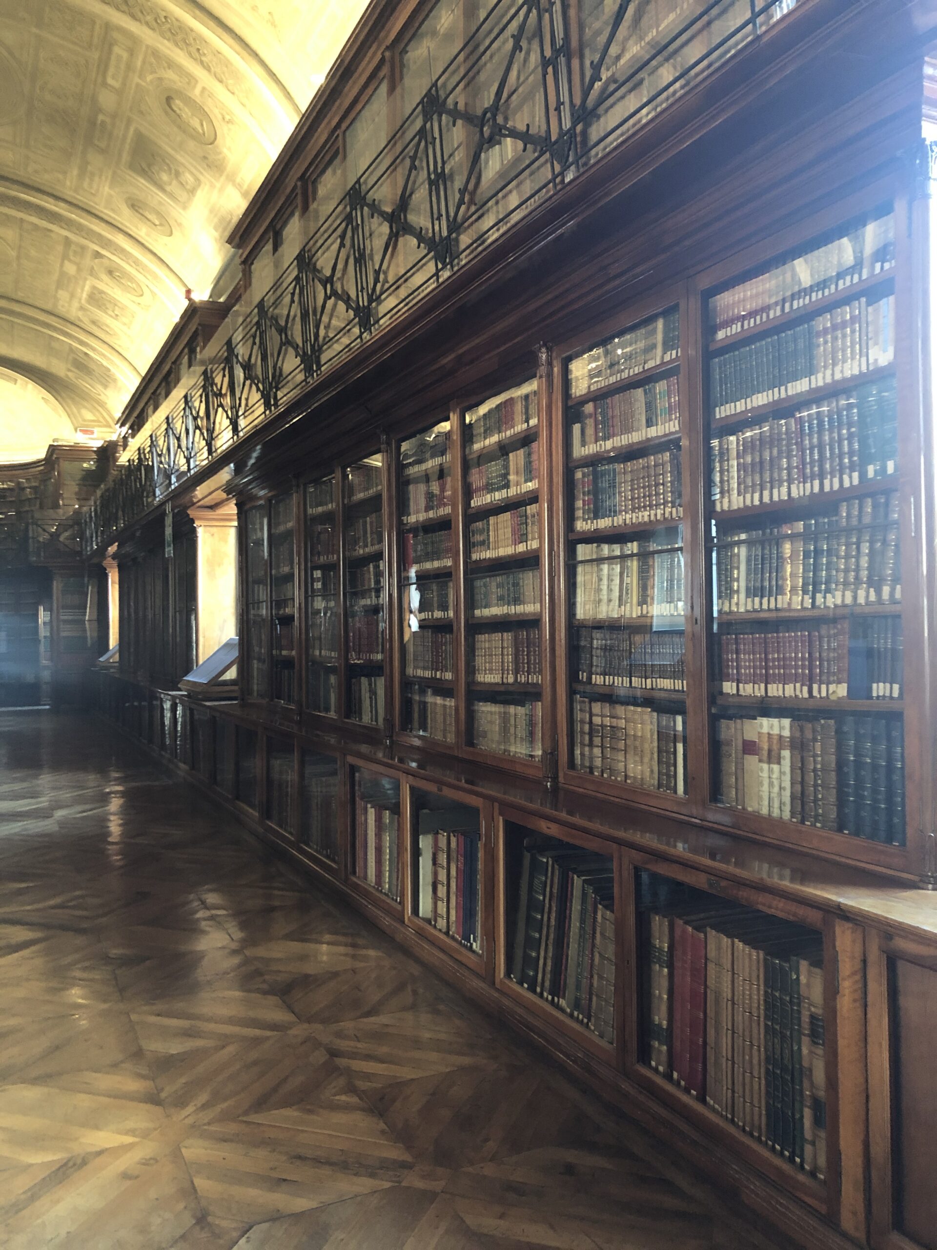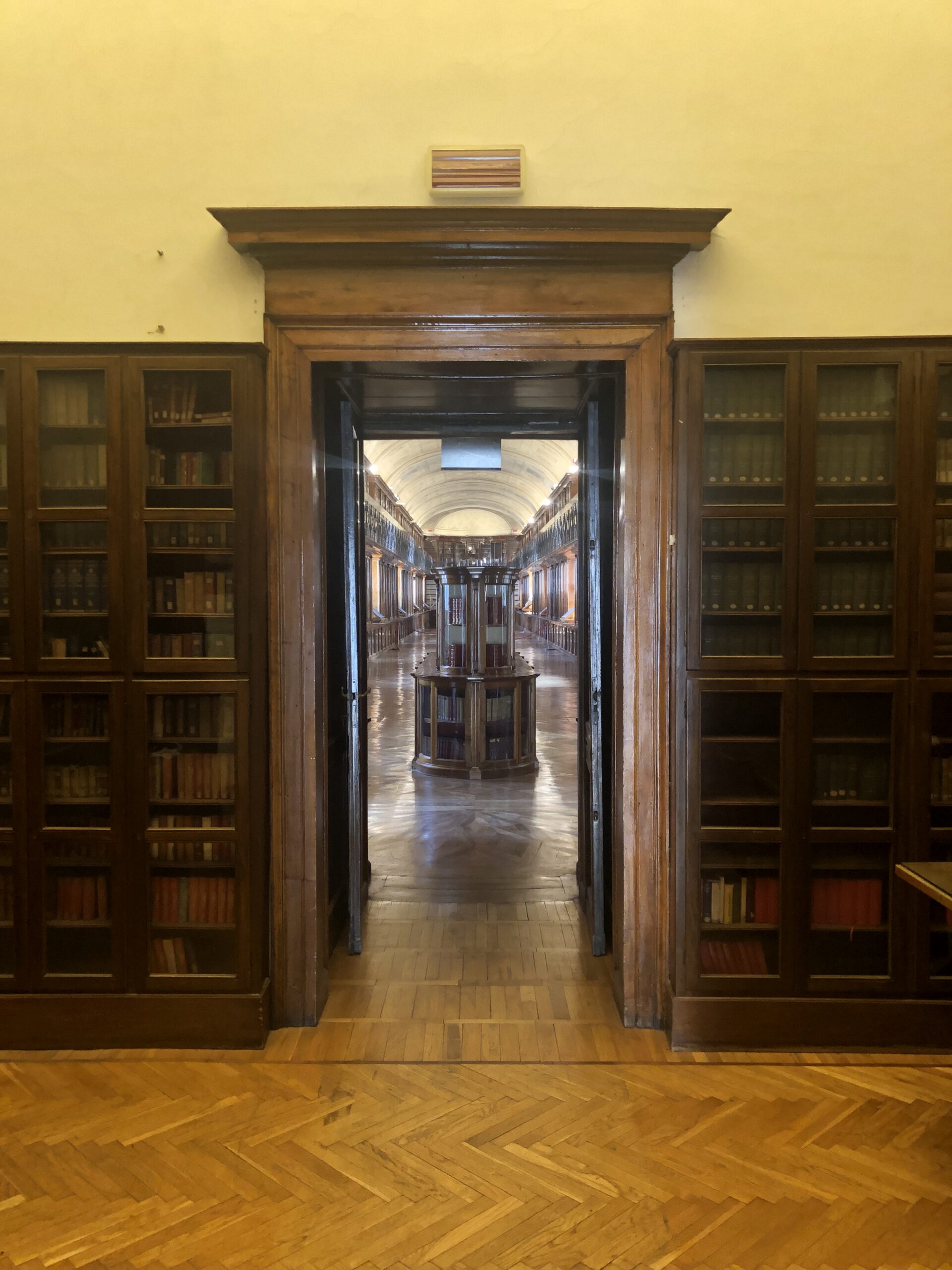 Ad oggi pare che nella biblioteca siano conservati circa duecentomila volumi. Ovviamente, non è possibile sfogliare e visionare nessuno di questi perché, seppur il termine ‘bene pubblico’ stia a significare che una cosa è di tutti, la verità è che quello che è pubblico in Italia non è di nessuno, o meglio, nessuno può accedervi se non pochi eletti.