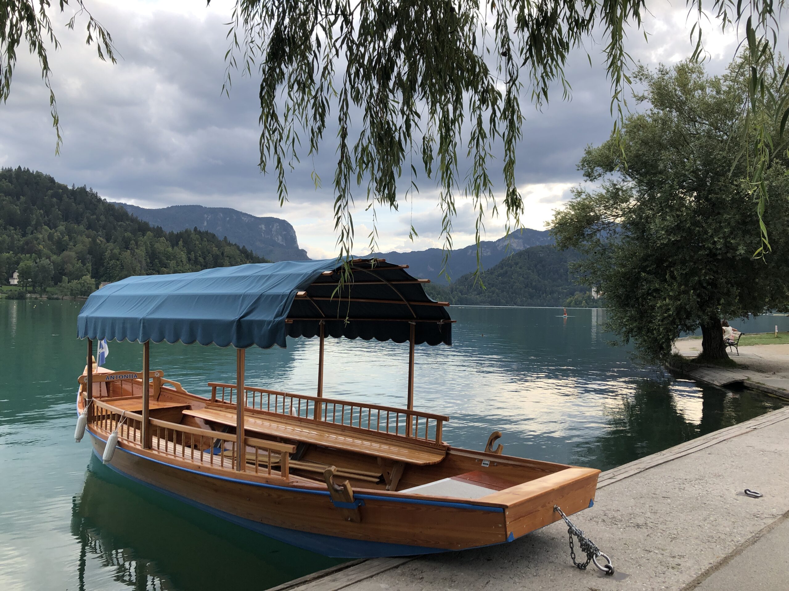 Prendiamo la pletna (la tipica imbarcazione a fondo piatto) anche se il tempo non è dei migliori. D’altronde siamo arrivati fin qui per questo. A me e al mio cane viene riservato il posto a prora, il più scomodo ed il peggiore per fare le foto perché, purtroppo, non ho ancora sviluppato gli occhi sulla nuca.
