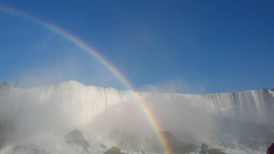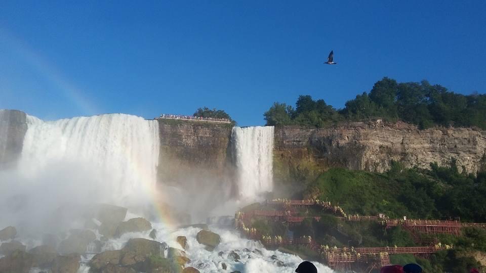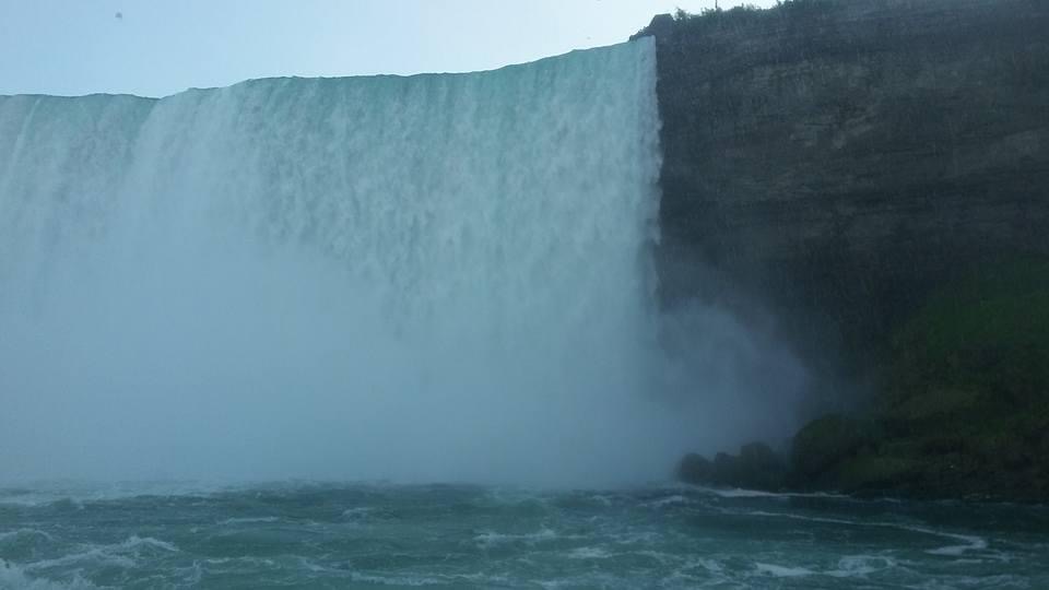 Non abbiamo il tempo di consultare l’orologio perchè la barca si muove e inizia il suo lento oscillare verso lo scroscio d’acqua. Vicino a noi scorrono le imbarcazioni battenti bandiera americana. I passeggeri hanno la casacca blu. Non sia mai che qualcuno provi a saltare di nave in nave e passi il confine così e, a pensarci bene, manco James Bond sarebbe in grado di fare una cazzata del genere. Una voce perentoria ci ordina di indossare il cappuccio perchè ci stiamo avvicinando alla cascata. Un rumore infernale paragonabile a quello che sentono le carote e le banane dopo esser state inserite in un frullatore acceso.
