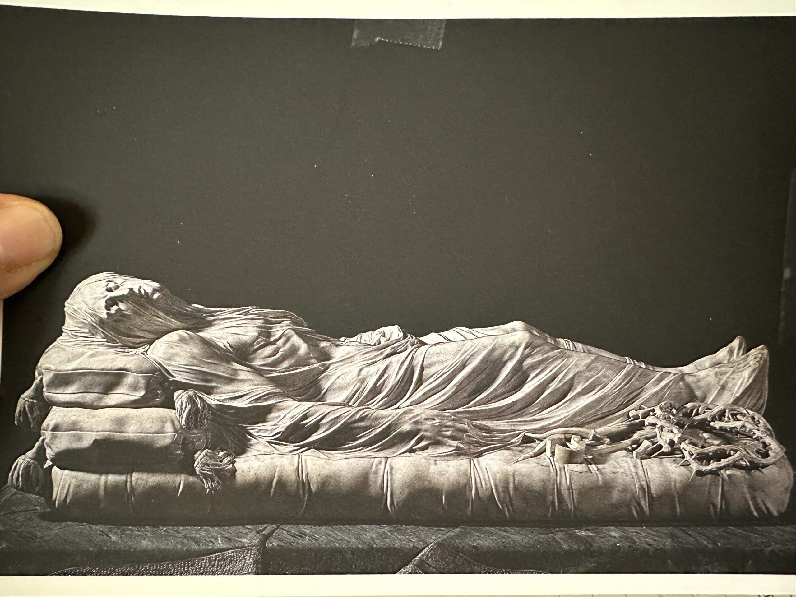 Nel mondo esistono capolavori che non hanno bisogno di presentazione come: il David di Michelangelo, la Venere del Botticelli, il Colosseo, i Concetto Spaziale Attese di Fontana, il parmigiano reggiano, l’abbiocco dopo il pranzo di pasquetta e…il Cristo Velato.