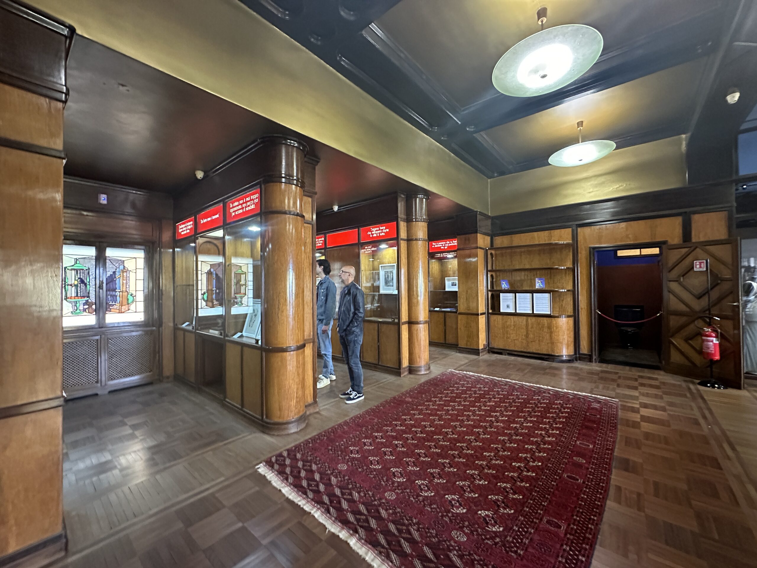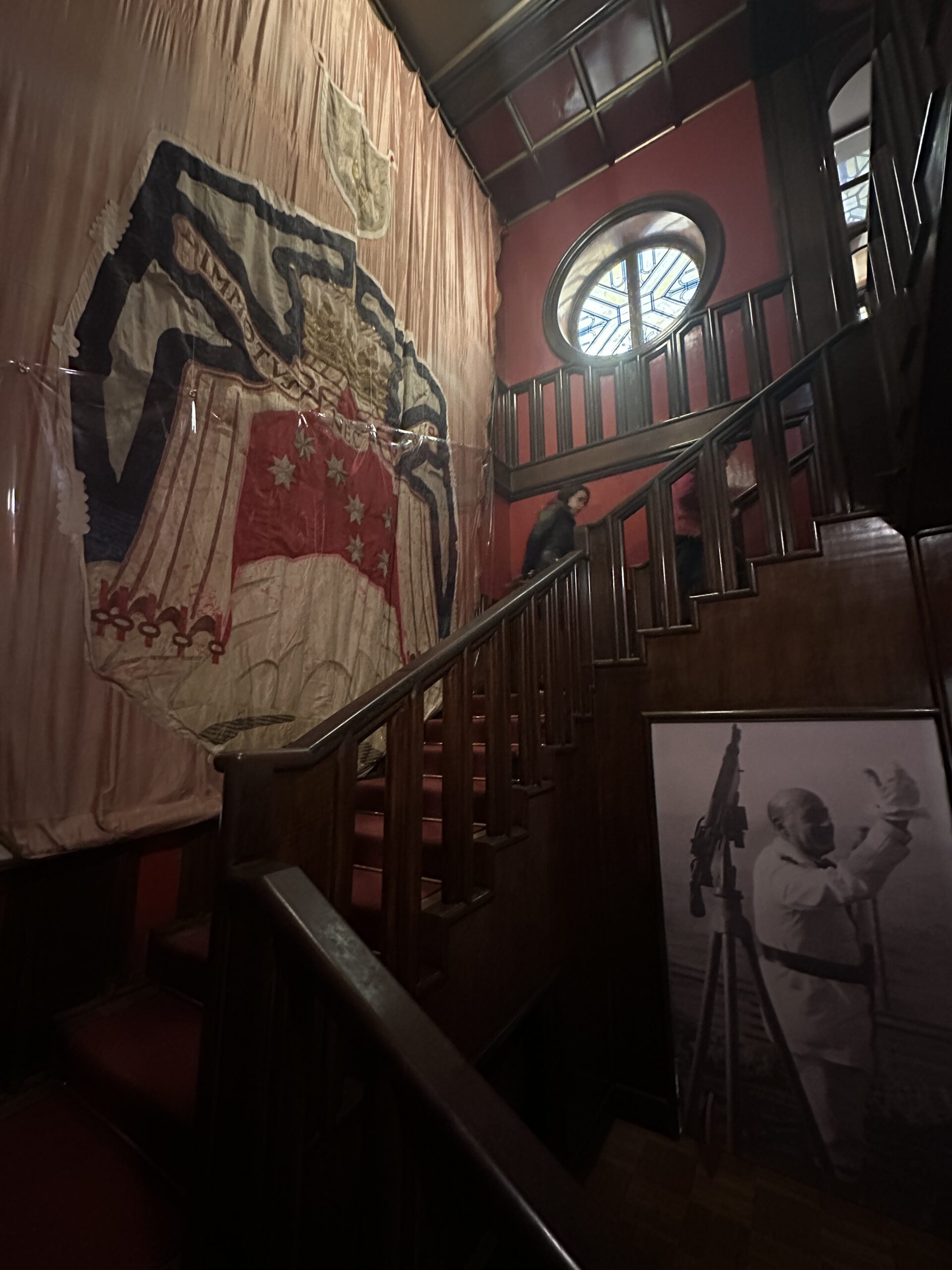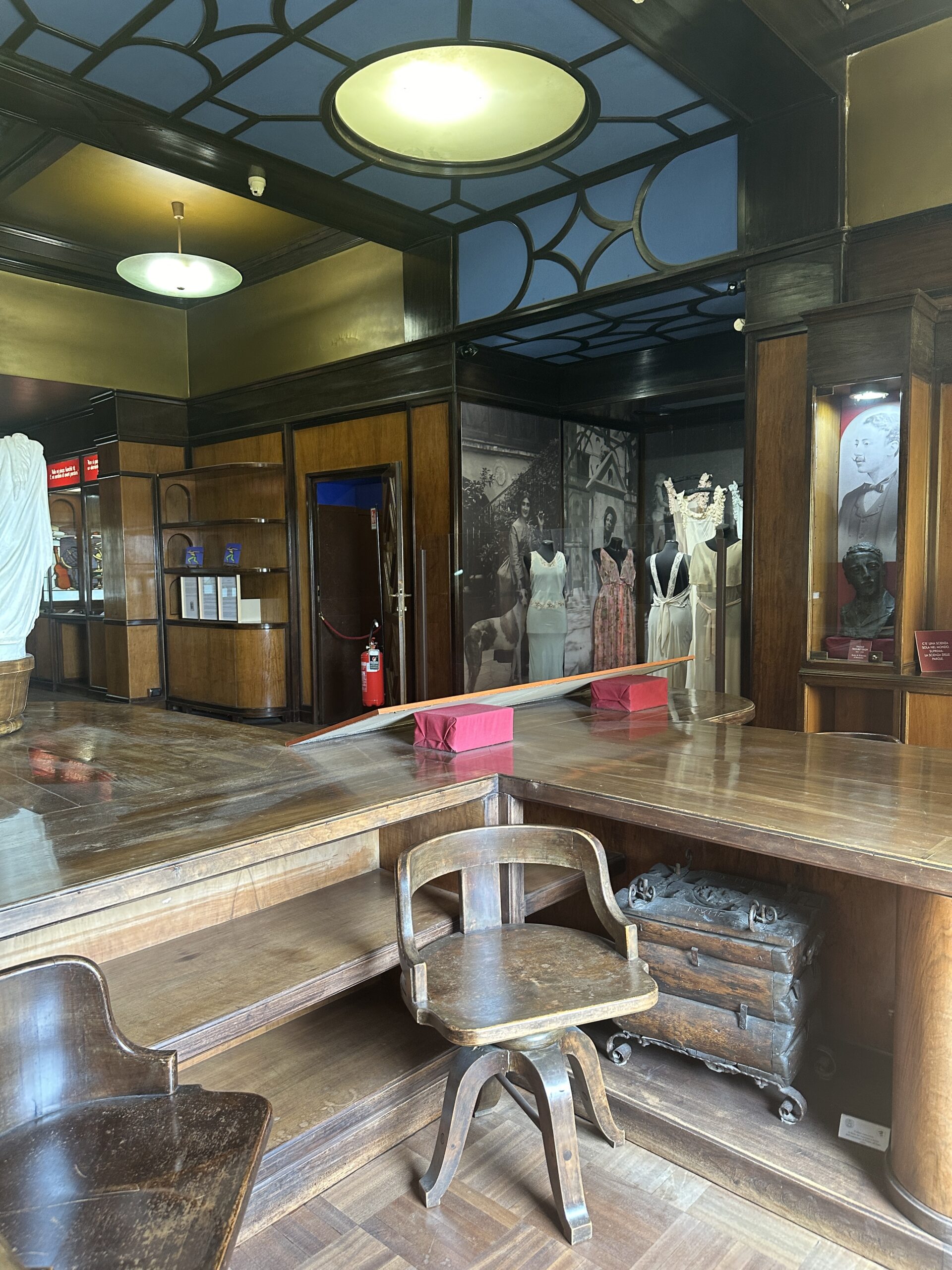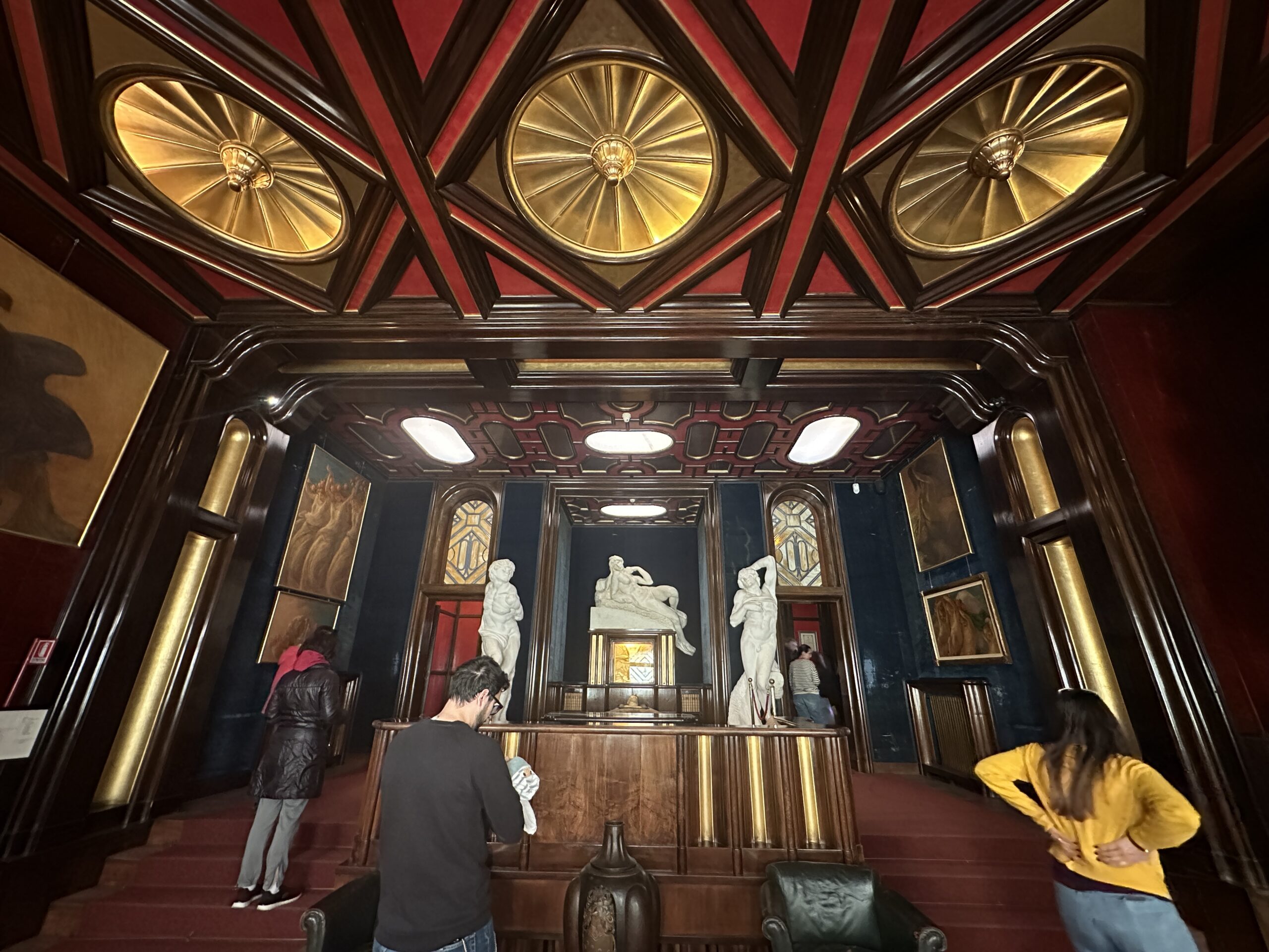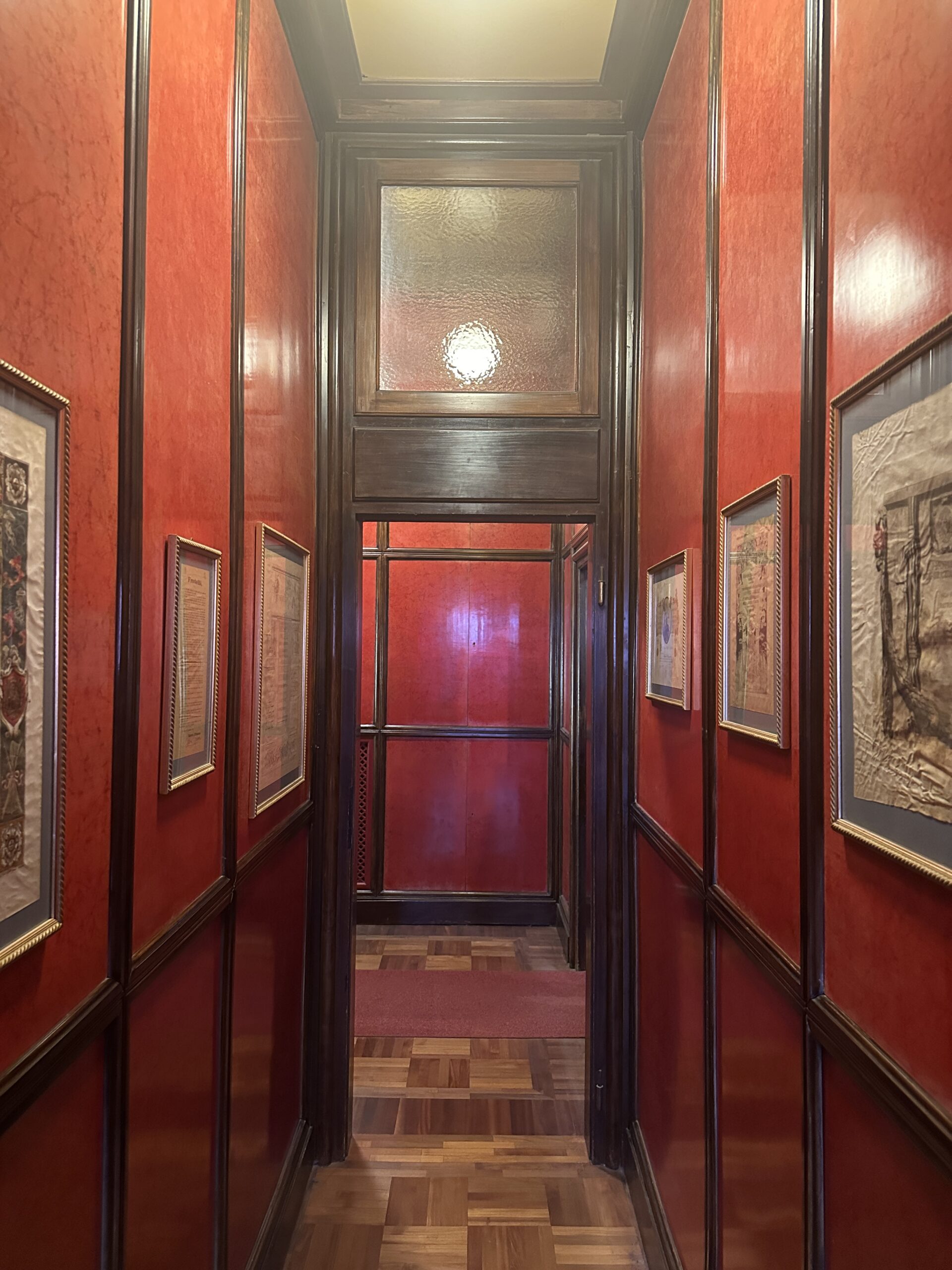La visita continua senza sosta tra sentore di incensi, odore di legno e, il mio preferito, profumo di libri e carta stampata. Esaurita la parte privata si giunge in una stanza di grandi dimensioni che appare come il set di un film hollywoodiano, con colori accesi e colonne enormi. Da qui inizia la parte nuova della dimora, quella che si può fotografare, quella adibita a museo.