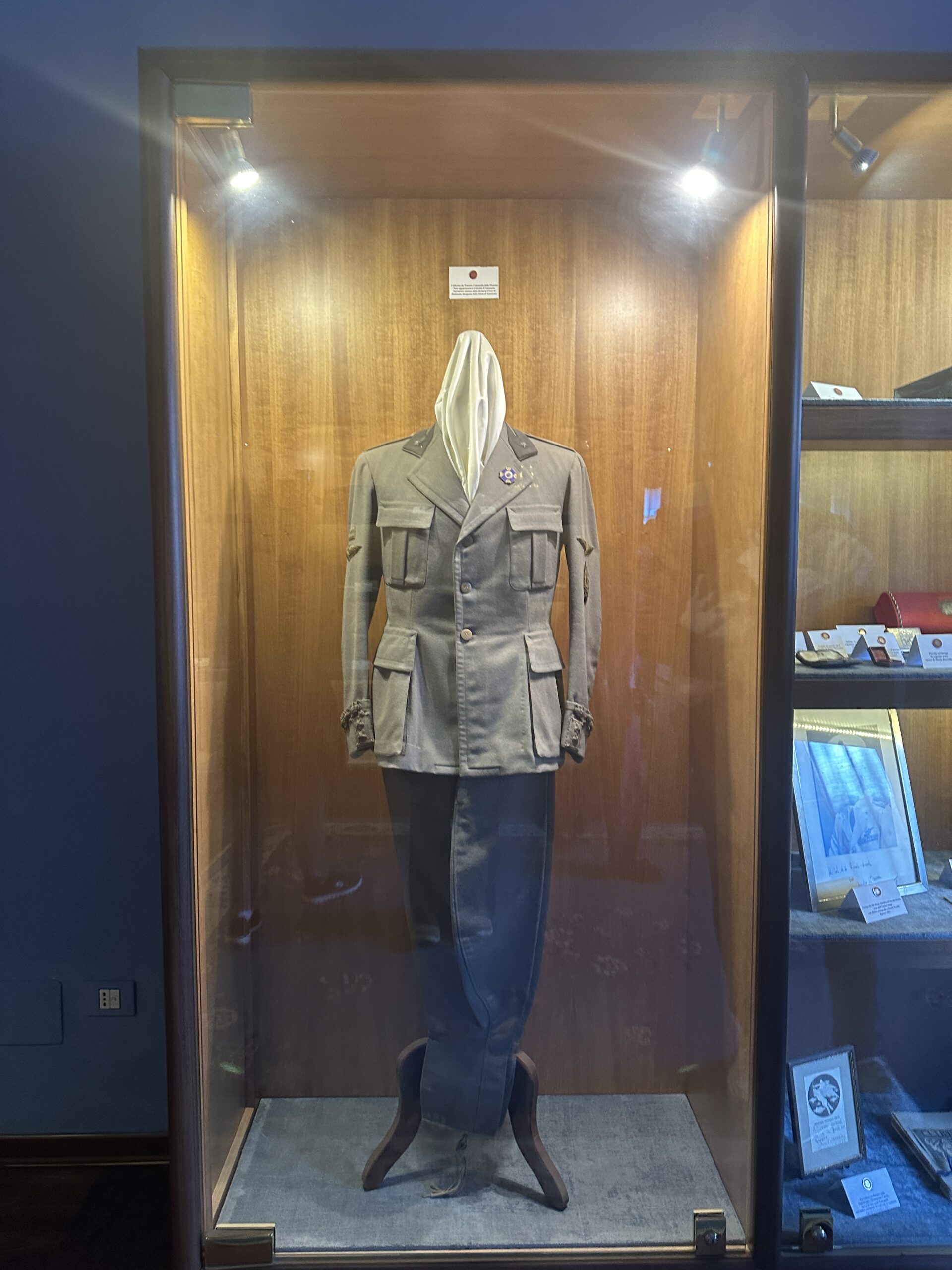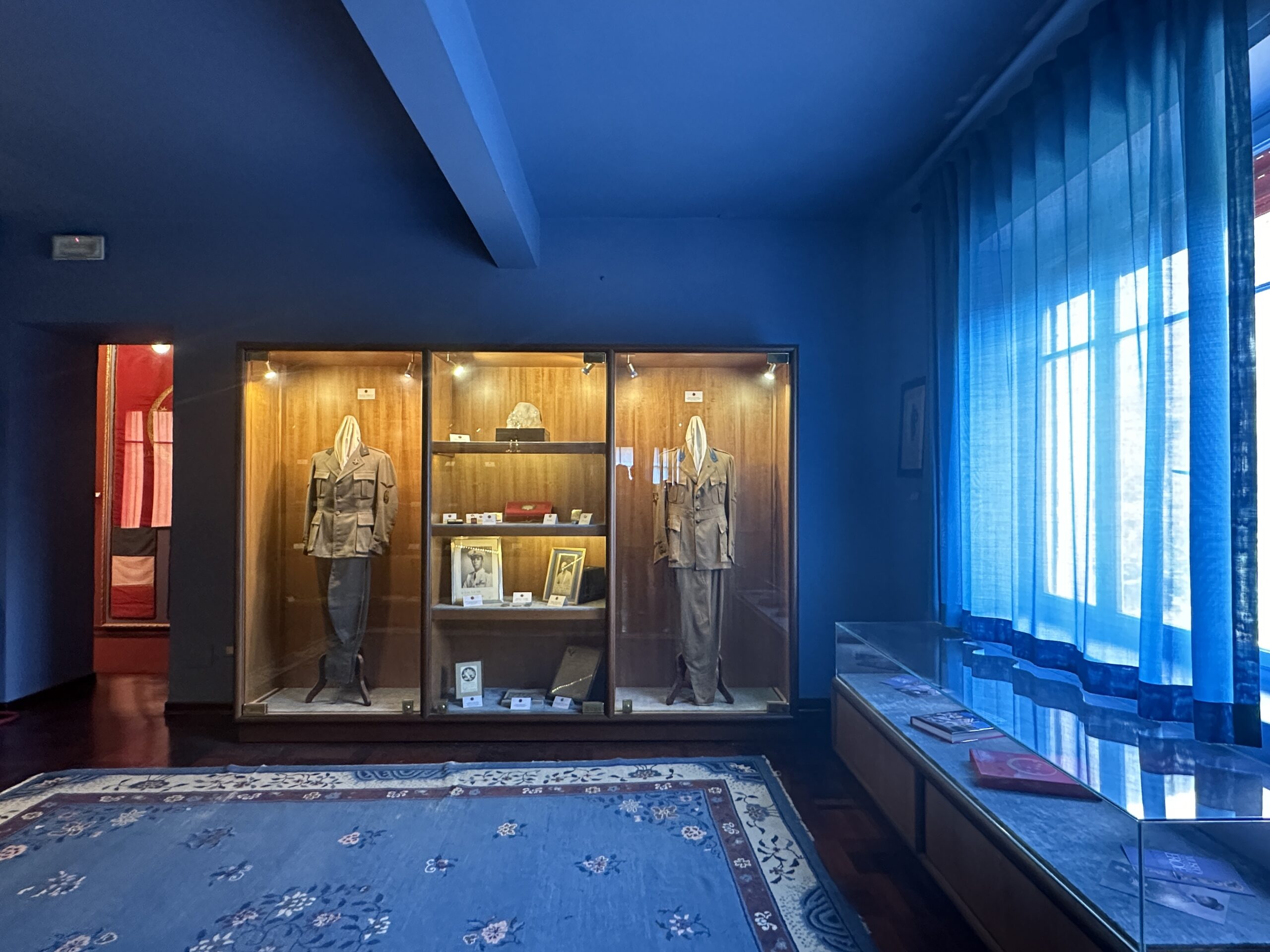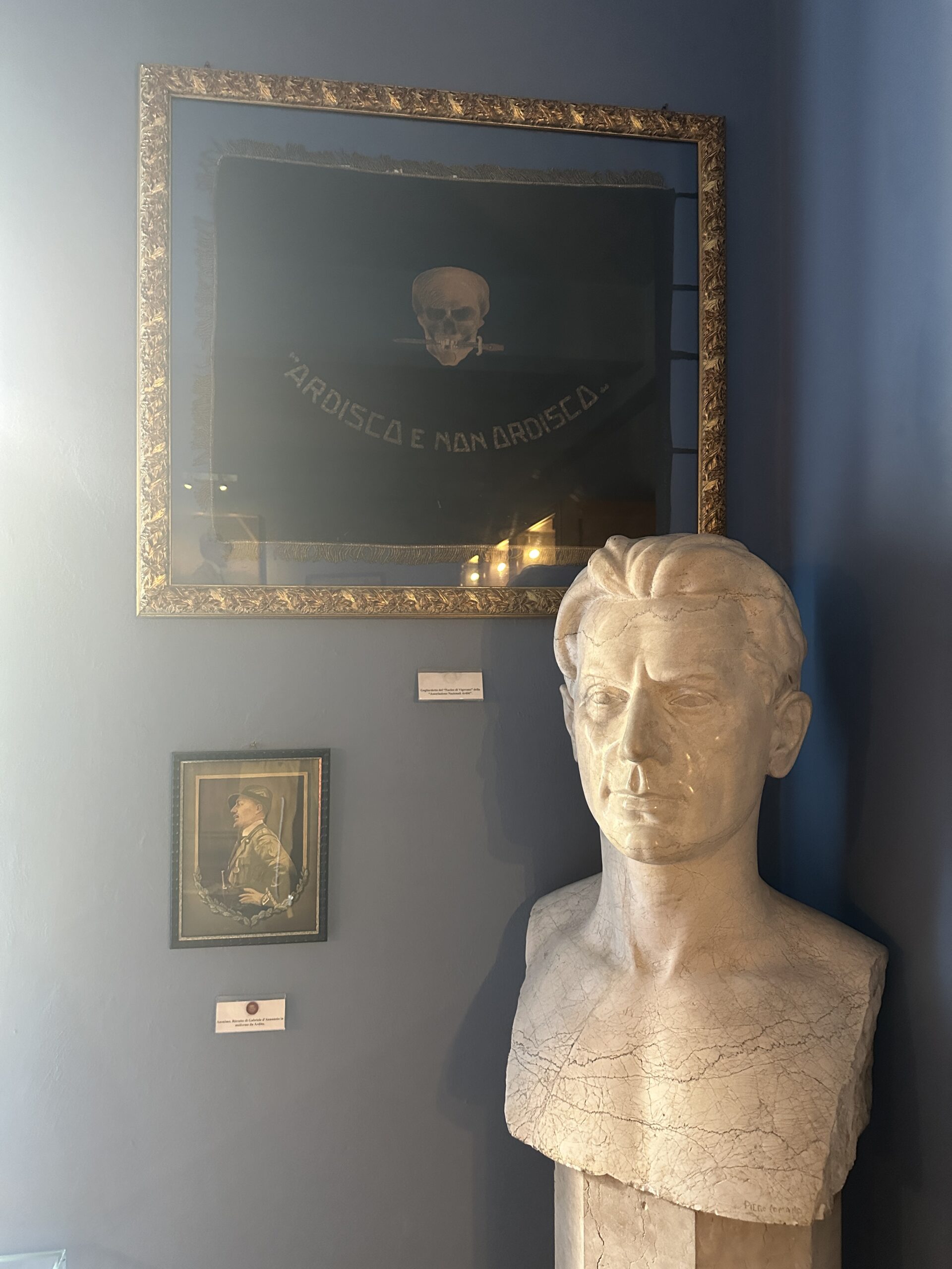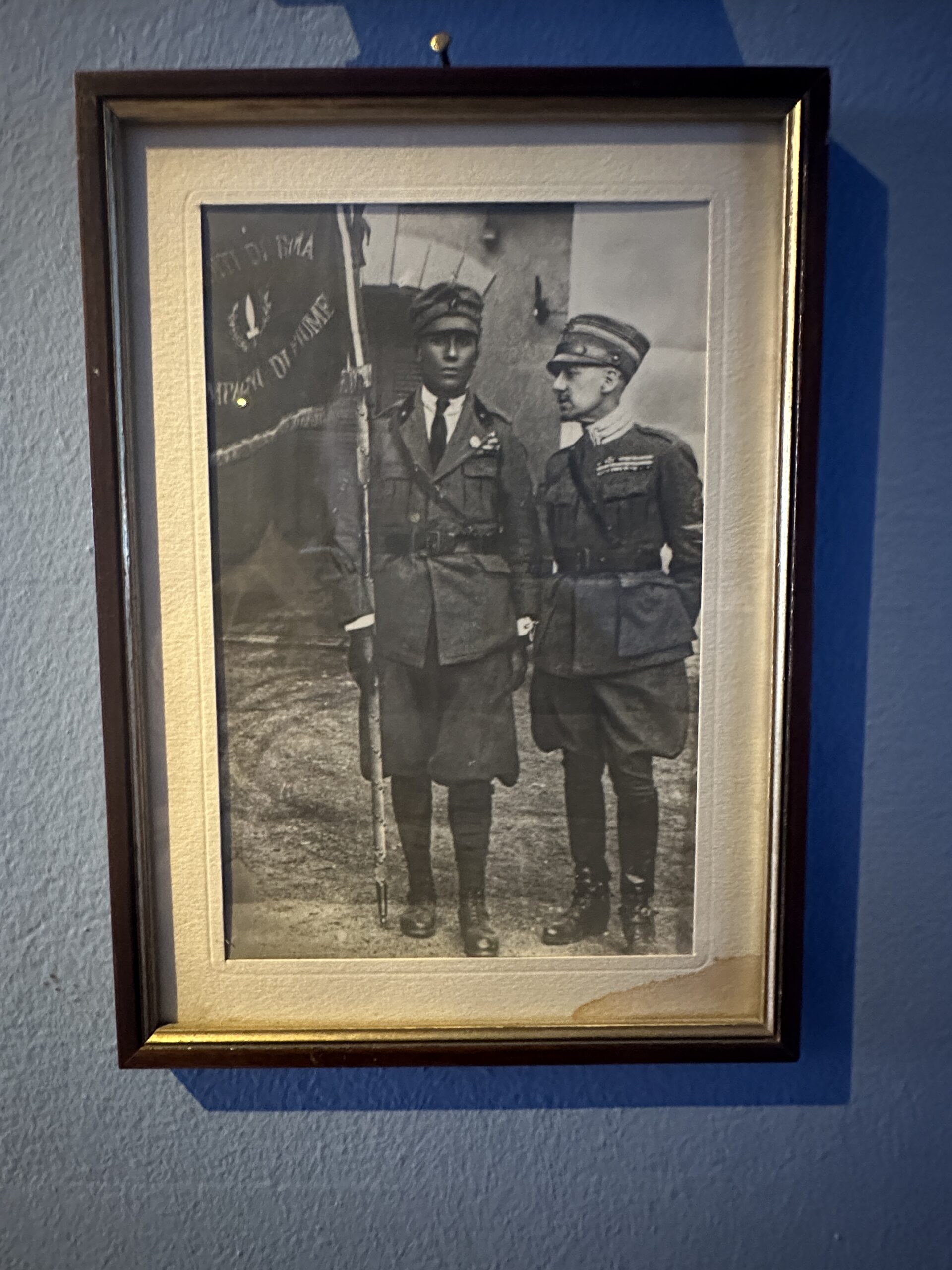 La vita intera, le passioni, le conquiste ed i lavori sono tra queste mura. Pale di aerei attaccate al soffitto, talismani, dipinti, abiti e lettere, prodotti da lui pubblicizzati e libri. Servirebbero mesi per analizzare ogni singolo oggetto racchiuso in questa casa. Il fatto che lui agognasse all’immortalità traspare dal modo in cui ogni cosa è in bella mostra per essere ricordata in eterno. Religioso e profano, il suo credo era il rischio, chiunque cercasse di superare se stesso era un eroe, i propri limiti erano solo sfide e non ostacoli, osare osare e ancora osare. Considerando che si arruolò volontario all’età di 52 anni, potrei affermare che la sua vita fu piuttosto coerente con il suo pensiero.