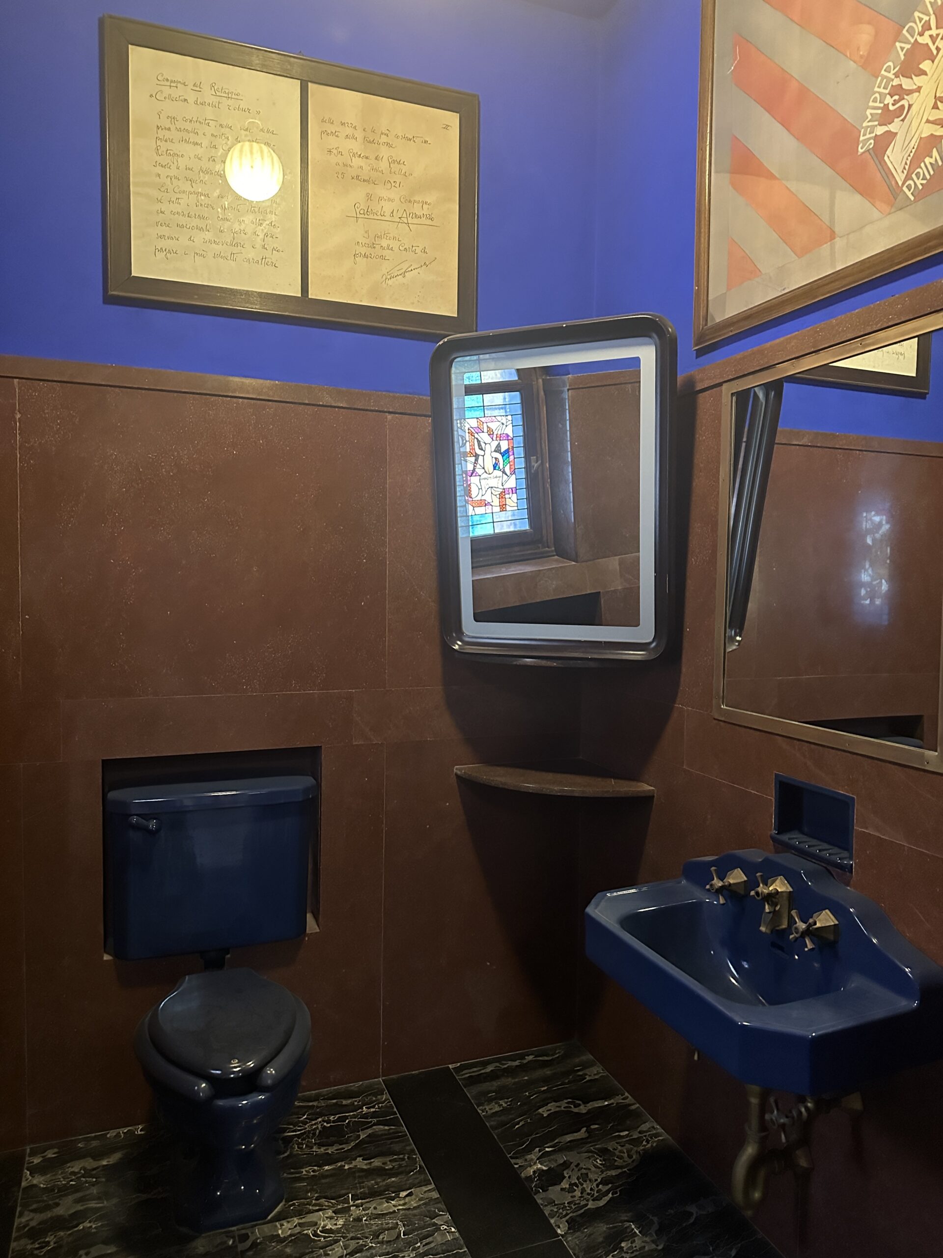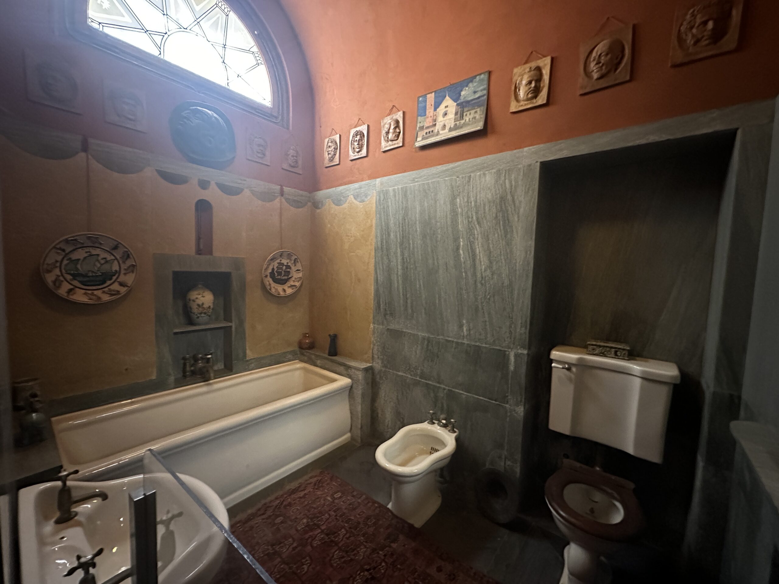 Non solo ricchezza materiale ed intellettuale, questa casa aveva anche tutti i confort, ad esempio: luce e telefono, rarità per l’epoca. La sala da bagno privata, di un verde bellissimo, è qualcosa di assolutamente fantasioso e delizioso, ma anche il bagno degli ospiti, seppur privo di vasca (perché il padrone di casa non voleva nessuno a dormire per la notte) è davvero elegante.