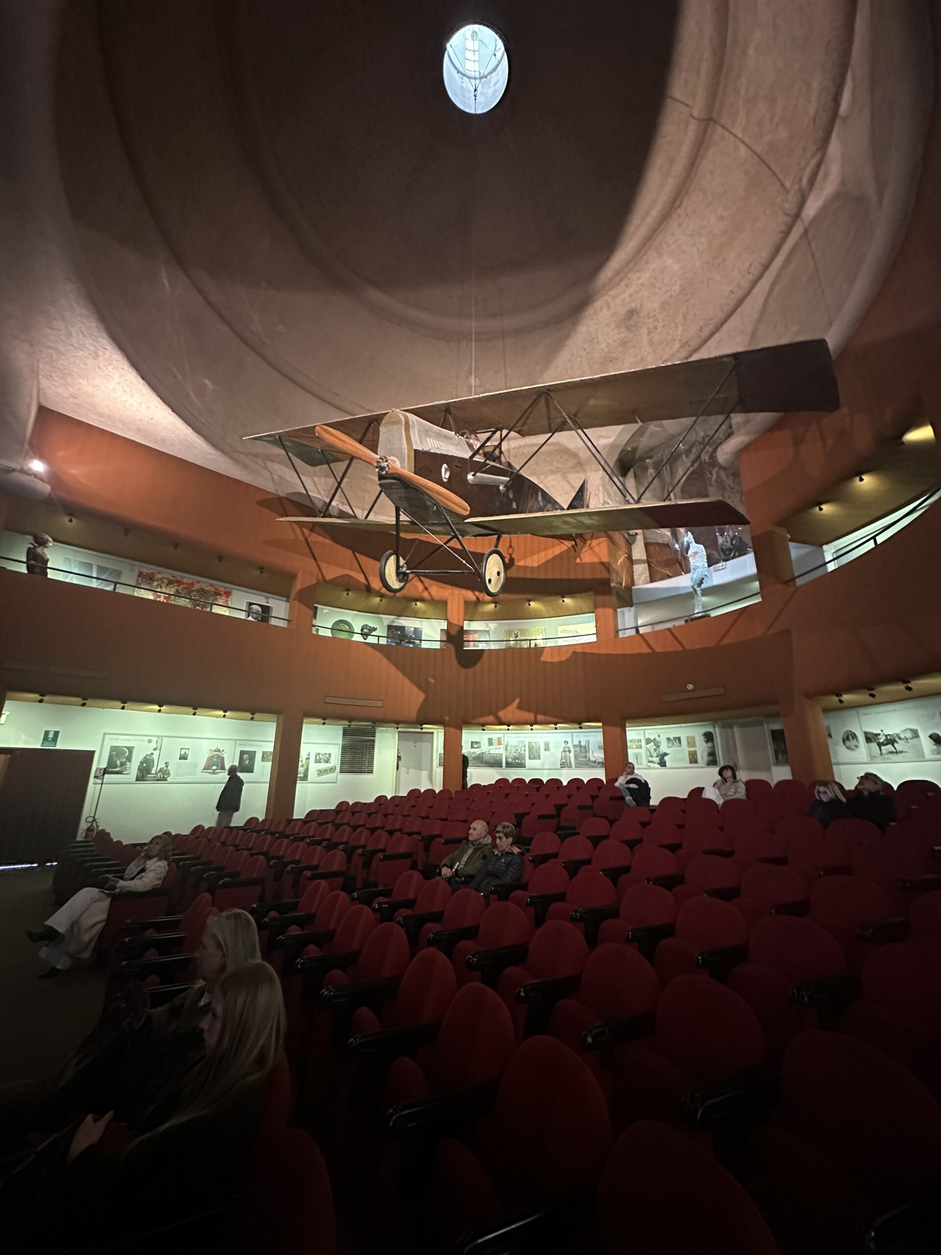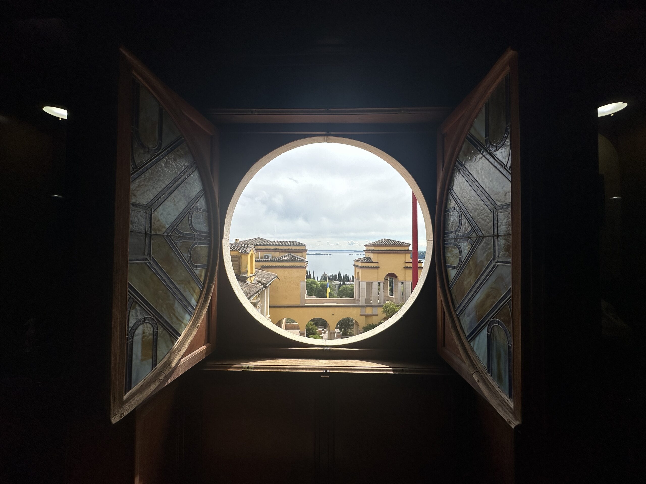 Follia e genialità, lasciano spazio a qualcosa di più ‘costruito’. All’interno di Schifamondo, la nuova area progettata dal poeta, l’atmosfera è quasi impersonale, imponente, anonima. Dalle finestre del piano superiore si gode della vista sul lago e dal soffitto del teatro pende lo SVA 1o che sorvolò Vienna.