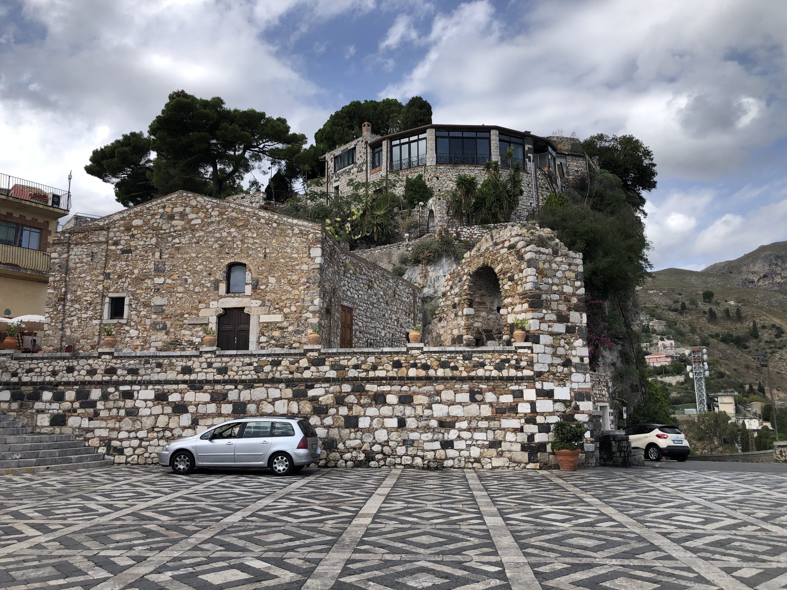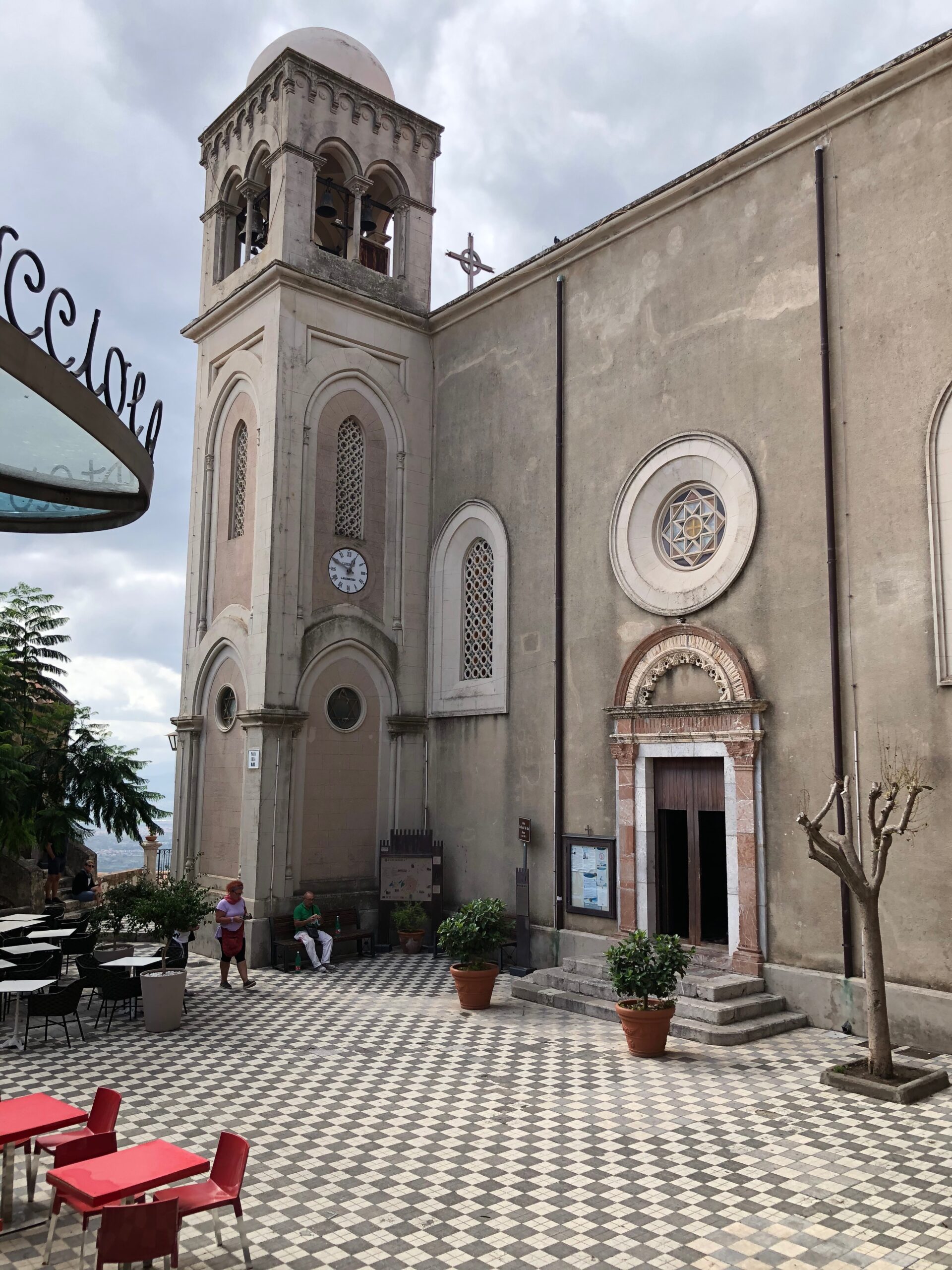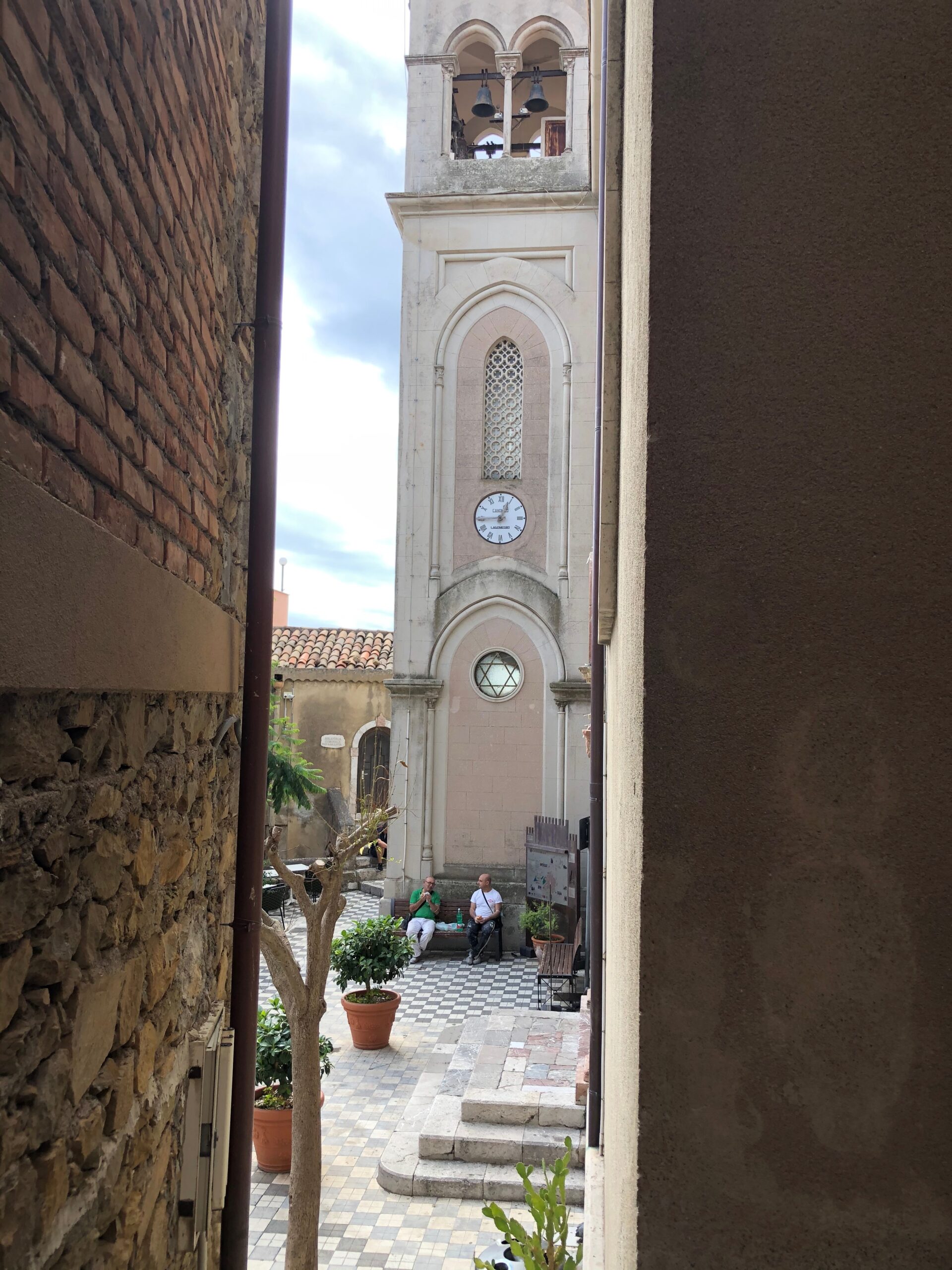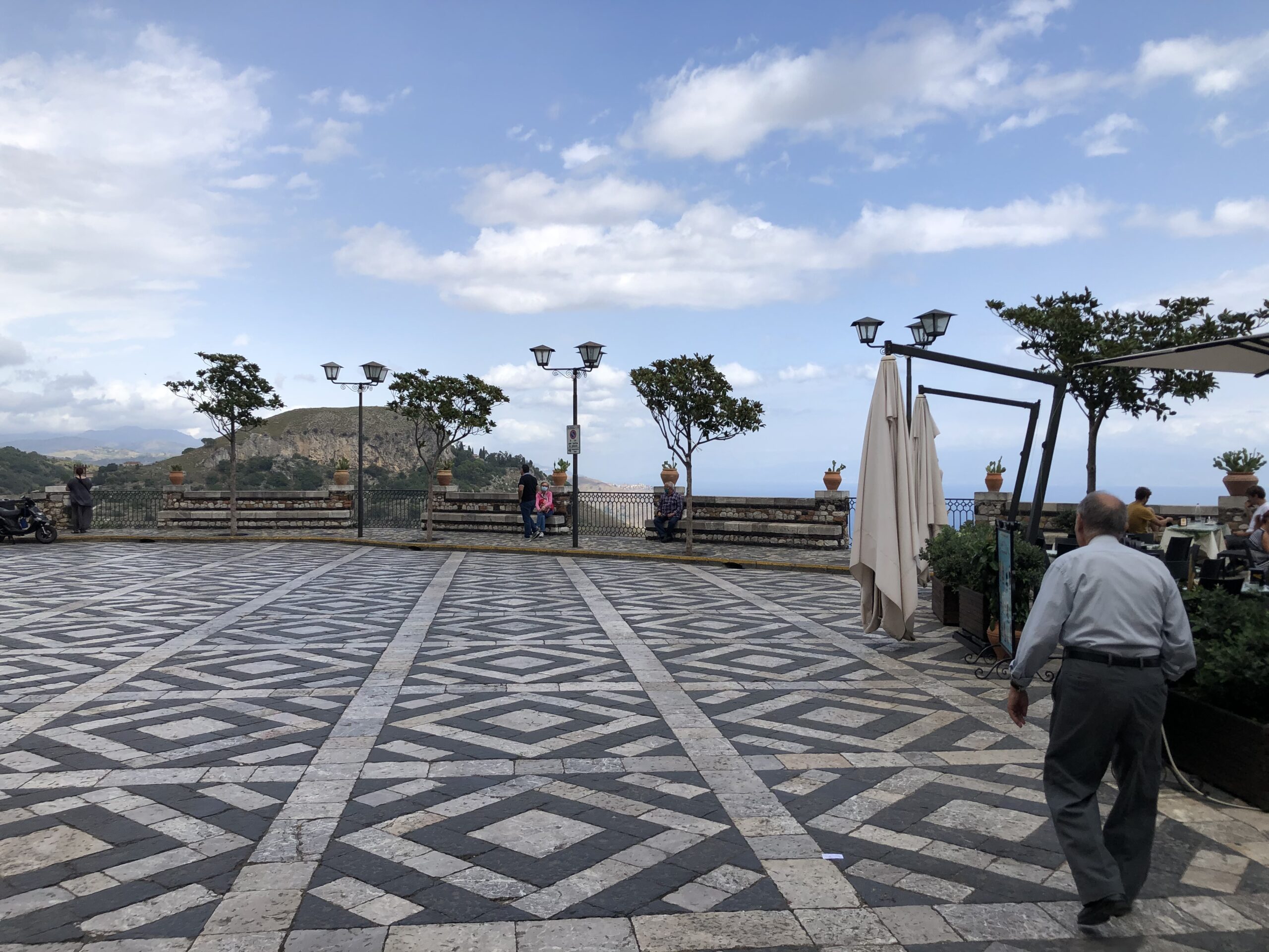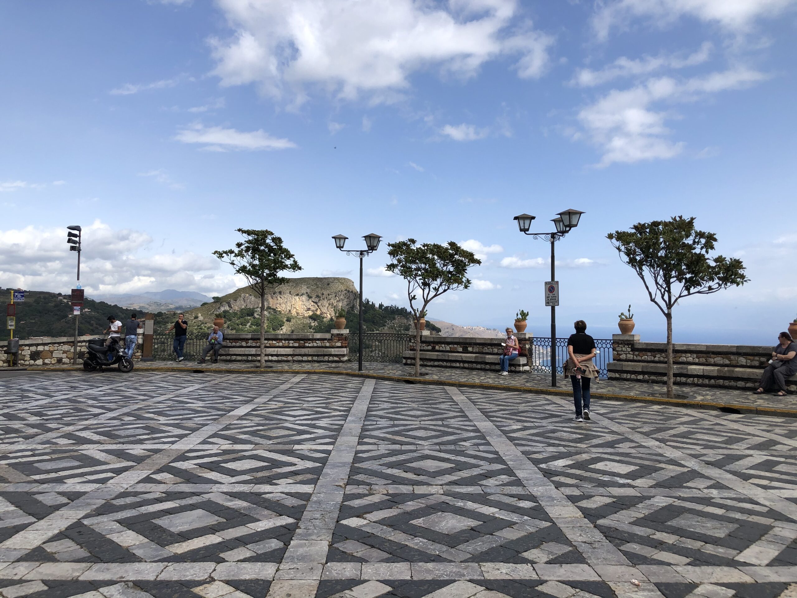 L’ingresso al piccolo borgo (facente parte dell’elenco dei più belli d’Italia), concede al turista un grazioso affaccio sul Mar Iono; la piazza principale si trova infatti proprio ad inizio paese e da qui, una lunga ringhiera volta al mare, disegna il perimetro di uno spiazzo reso inconfondibile dalla particolare pavimentazione bianca e nera.