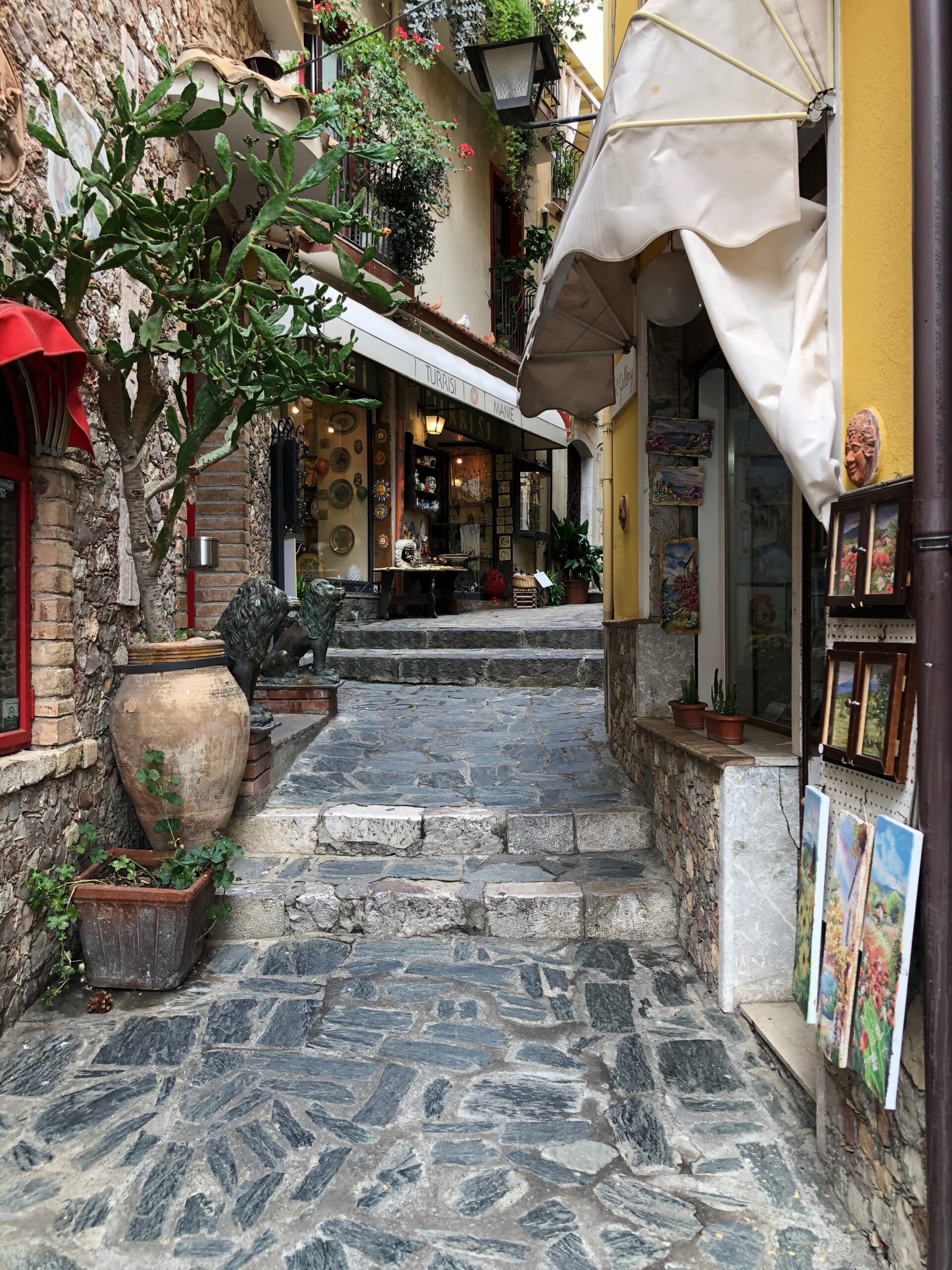 “Qui si respira la vera Sicilia. Passeggiando tra agrumeti e pale di succosi fichi d’india …la brezza del mare accarezza i capelli mentre soffia leggera…una donna cammina con la sola compagnia degli sguardi dei passanti, muovendosi dentro al bell’abito lungo con disegni di fiori e frutti che si gonfia e si sgonfia sotto il peso dell’aria. Si ferma prima di voltare l’angolo e sorride, nascondendosi sotto una ciocca di capelli lunghi lisci e neri come la pece; gli uomini in camicia bianca e bretelle afferrano con i loro indici e pollici le strette visiere della coppole per rispondere al saluto….Il profumo del latte di mandorla si mischia a quello della pasta con le melanzane e, mentre al mercato ittico viene mozzata con un sol colpo la testa di un pesce spada, qualcuno a bordo strada accompagna il suono dello scacciapensieri con le note di uno zufolo di legno.”