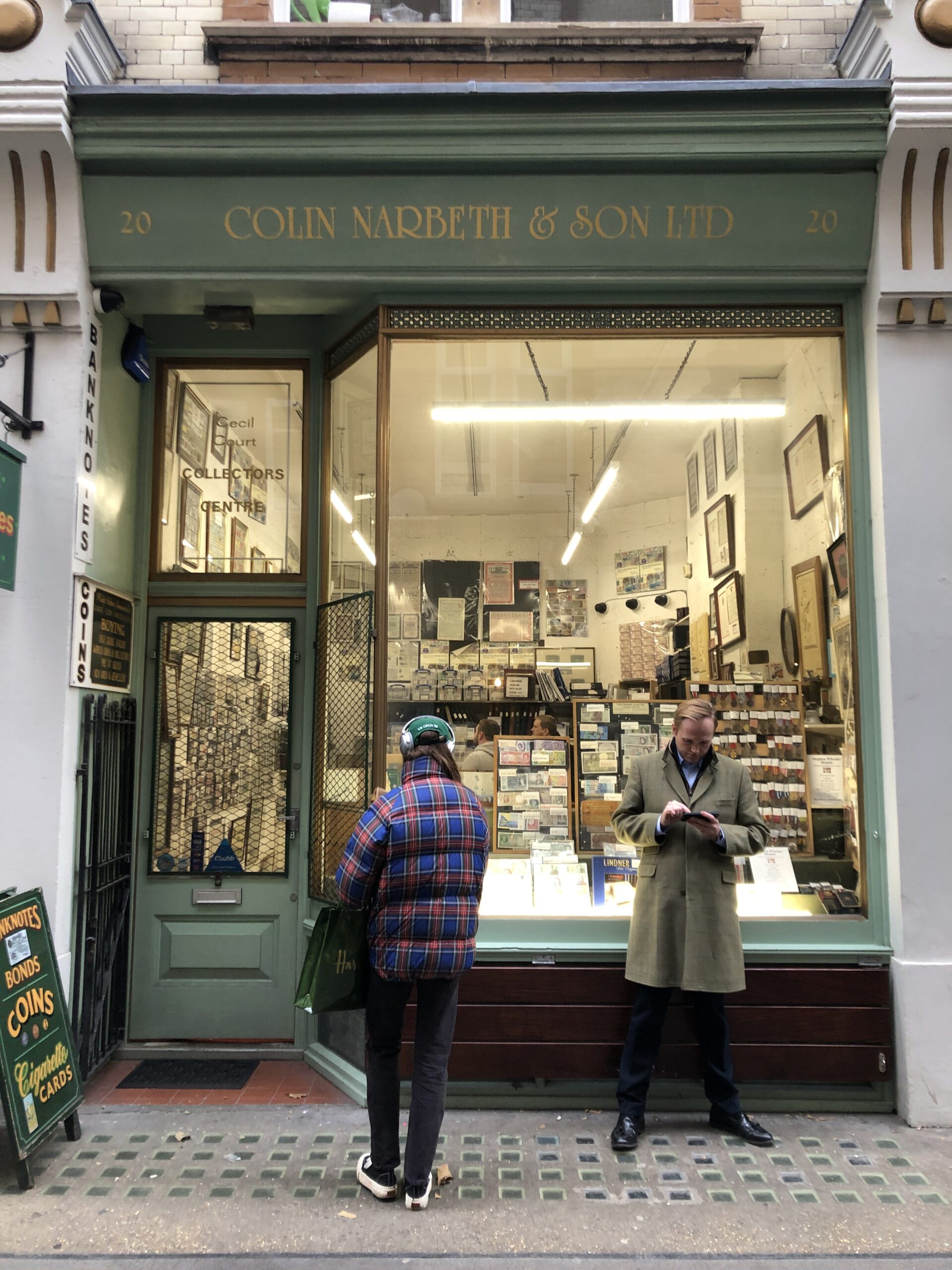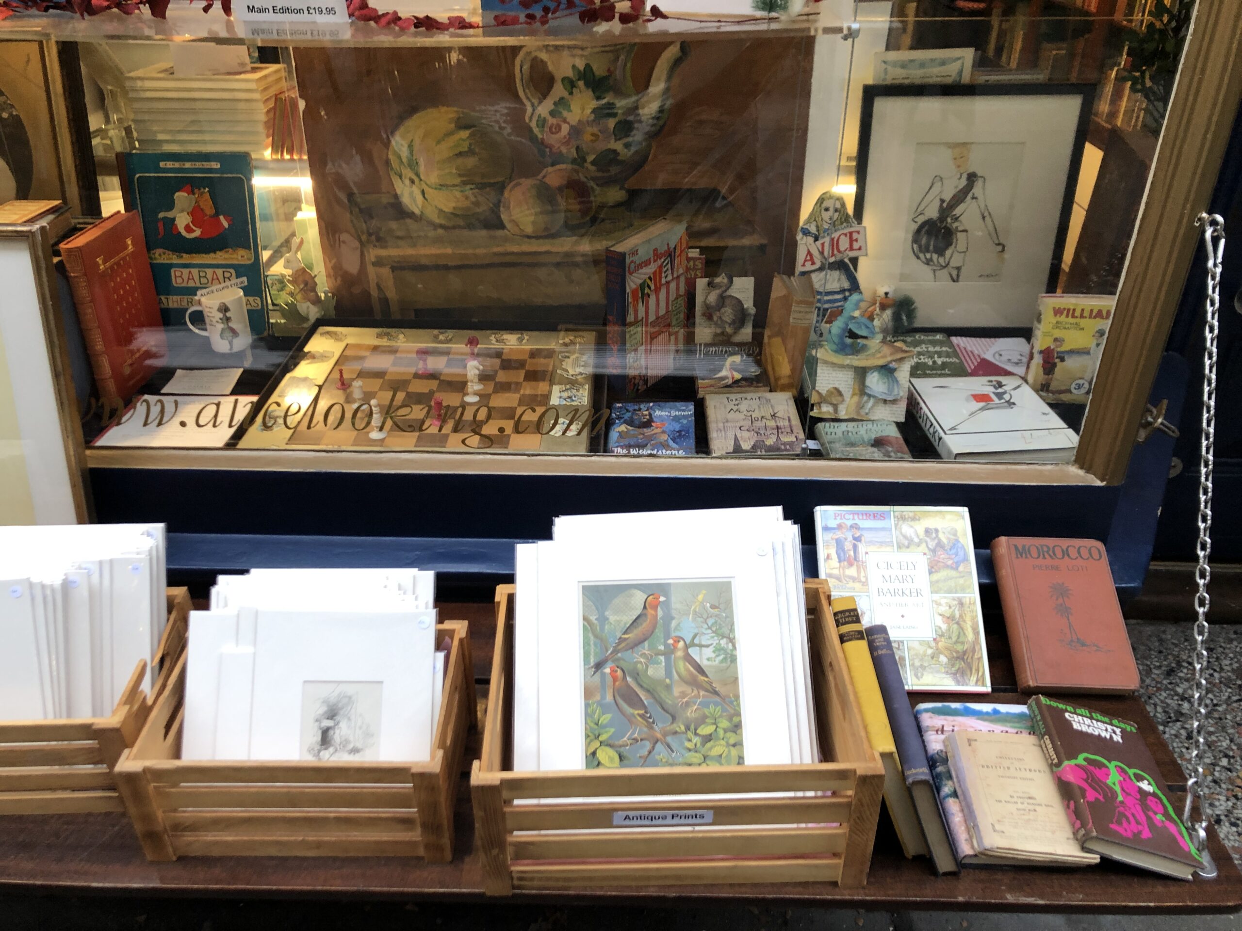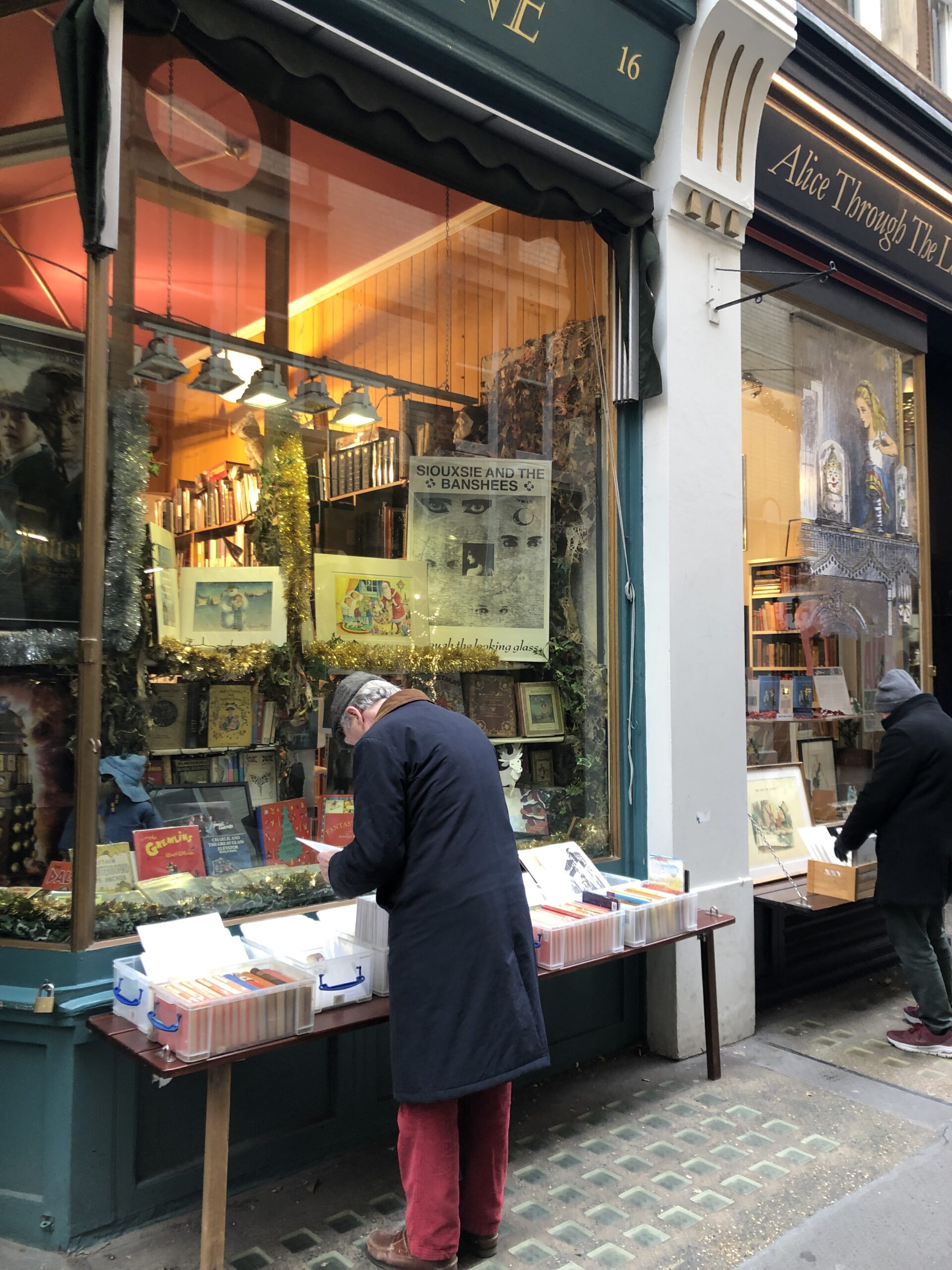 Per percorrere un così breve pezzetto di strada, se si è appassionati lettori come me, si rischia di impiegare più tempo di quello occorso per attraversare Hyde Park, l’unica cosa che può far accelerare il passo è sbirciare i prezzi scritti sui piccoli talloncini in cartoncino bianco infatti, se non si possiede un enorme portafoglio (o un portafoglio enorme – pseudo cit.), sarà difficile riuscire a fare compere qui a Cecil Court, gli unici veri affari si possono fare rovistando tra le cassette lasciate fuori dalla soglia d’ingresso dove, ogni giorno, vengono esposti libri a basso costo, stampe e litografie.
