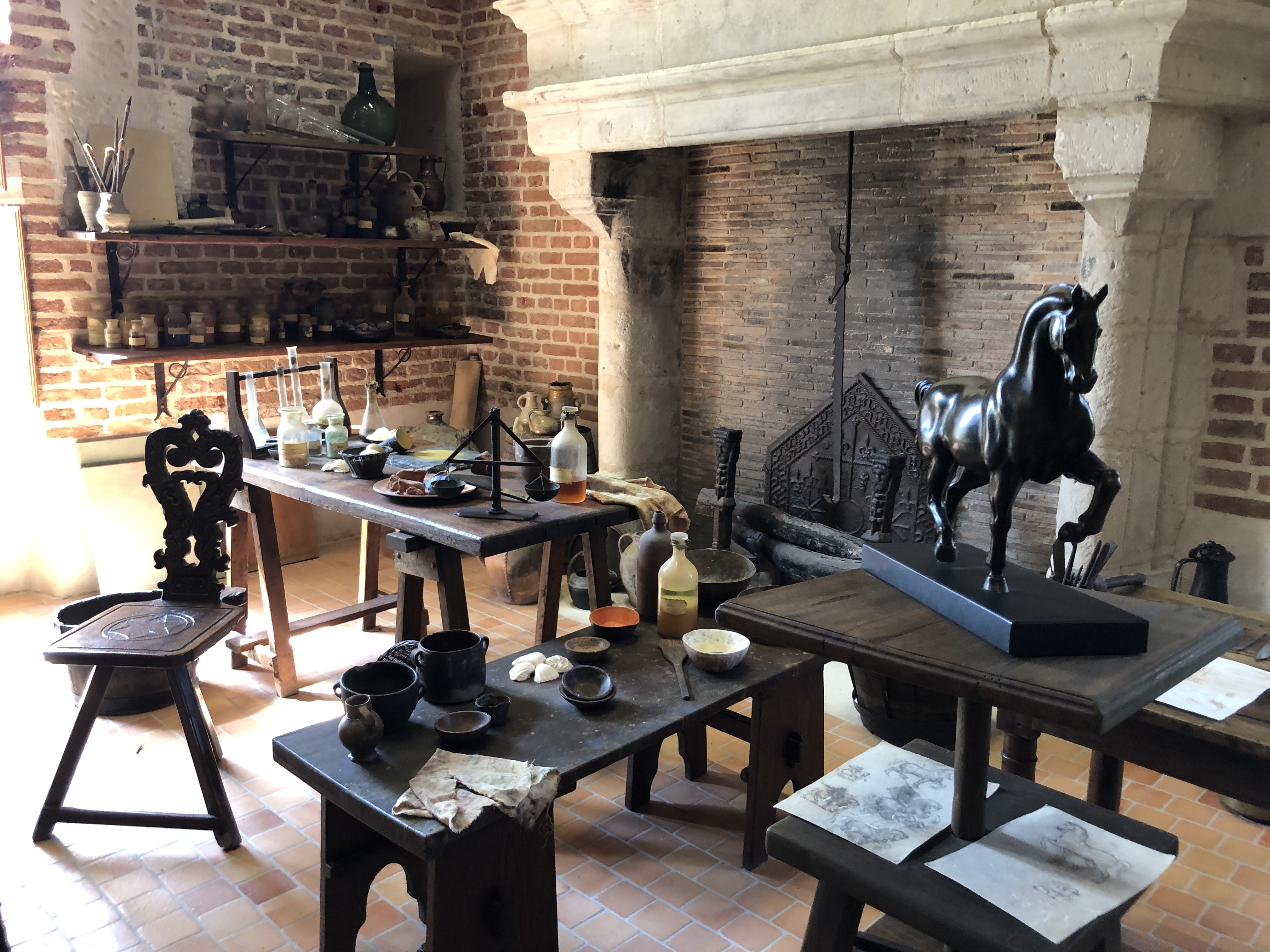 Gli ultimi tre anni della sua vita Leonardo li ha passati in questo maniero ad Amboise. Un luogo incantevole, alle porte della cittadina, non lontano dal castello del Re Francesco I che sovente era ospite di Da Vinci. Pare ci fosse un forte legame tra di loro, una stima che andava ben oltre l’ammirazione; alla sua morte il Re si trovava accanto al suo capezzale e lo strinse in un abbraccio addolorato, o almeno chi era lì riferì così. Come dargli torto, un genio se ne stava andando, un ingegnere, pittore, ideatore, un’uomo dalla straordinaria inventiva al di fuori dell’umana possibilità; quanti di noi vorrebbero avere un’idea geniale, una folgorazione; quanti vorrebbero inventare qualcosa di utile alla quale ancora nessuno ha mai pensato?