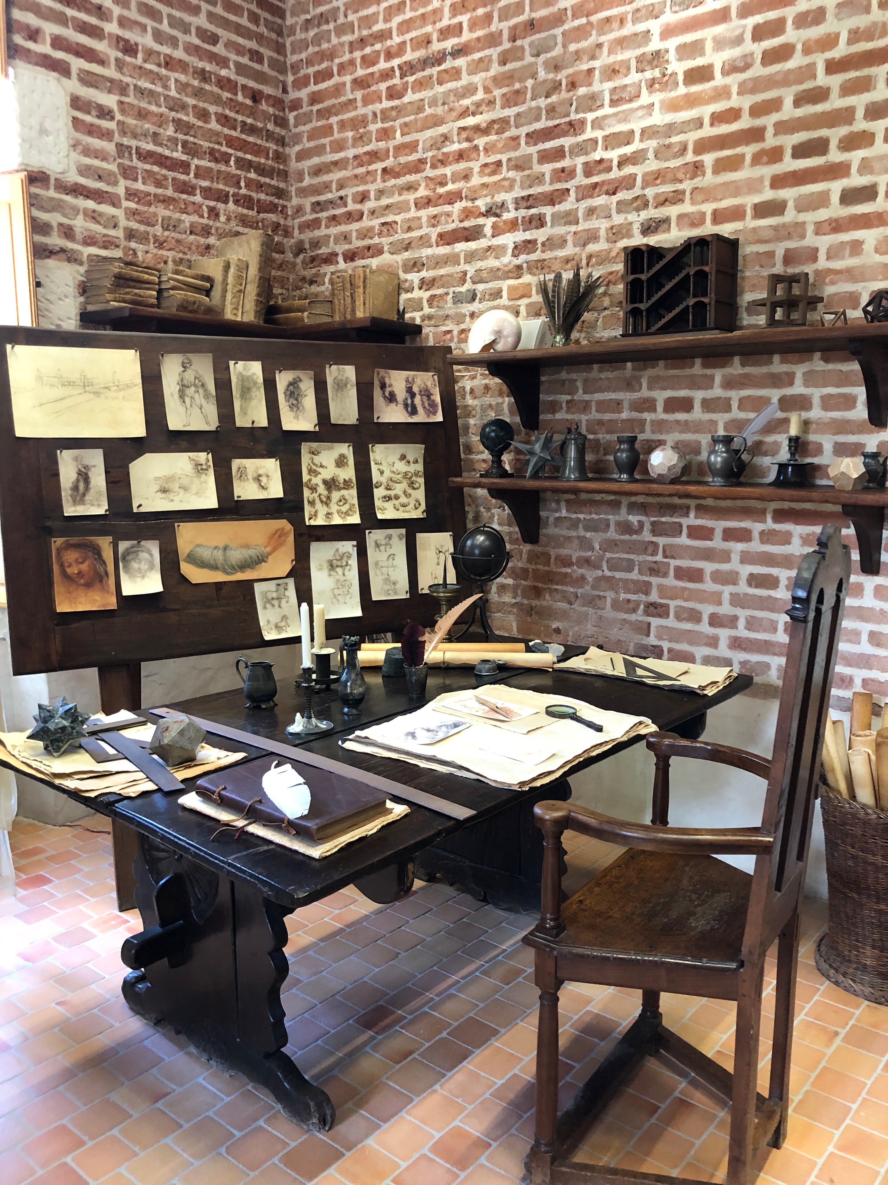 Casa di Leonardo mette quasi soggezione perché è piena zeppa di idee. Ci sono le armi da guerra, gli strumenti per volare, per costruire, per trasportare. Ci sono dipinti e studi scientifici, di botanica, di anatomia. La meccanica e l’ingegneria hanno trovato terreno fertile tra i tessuti cerebrali di quest’uomo barbuto.