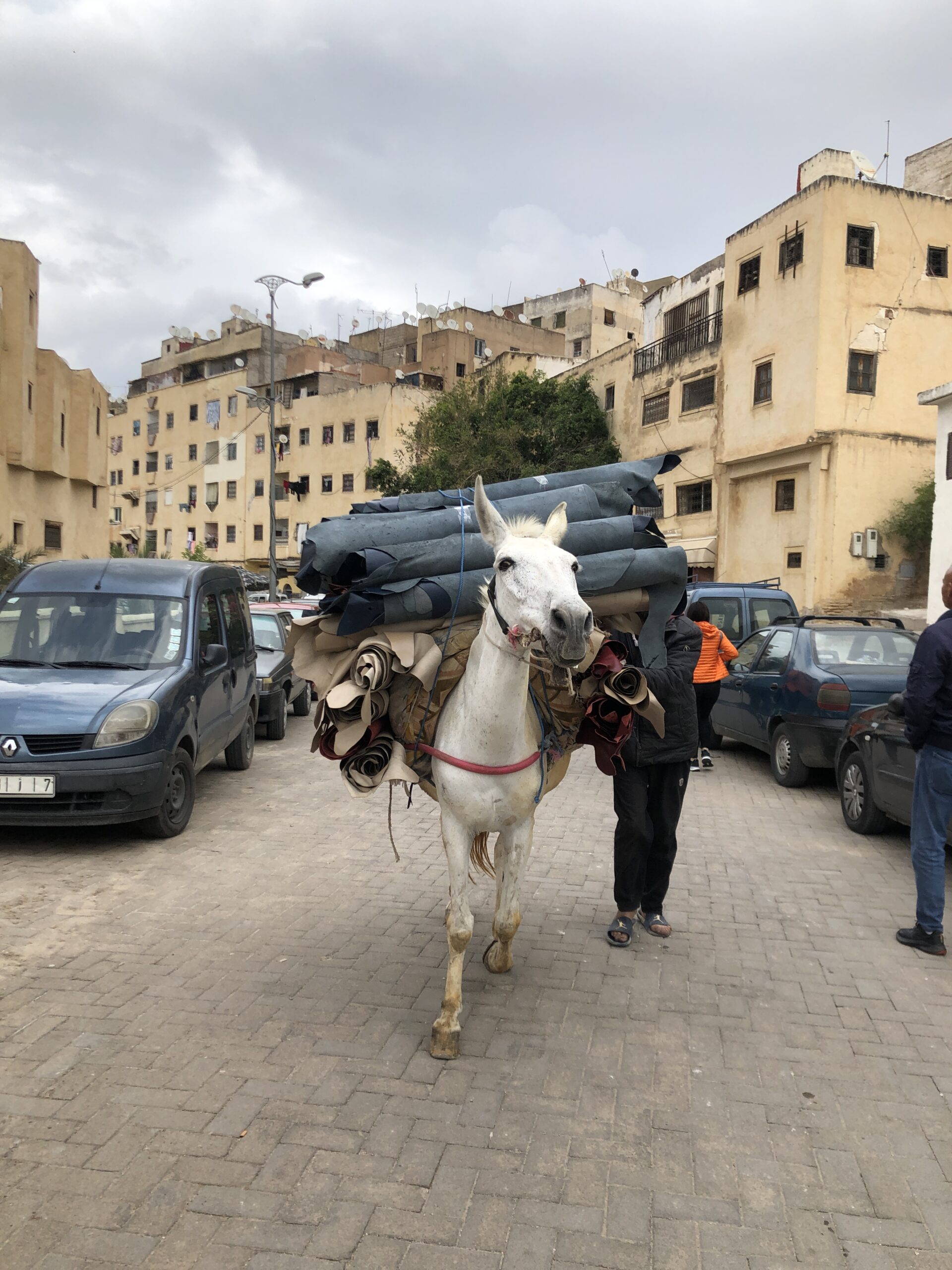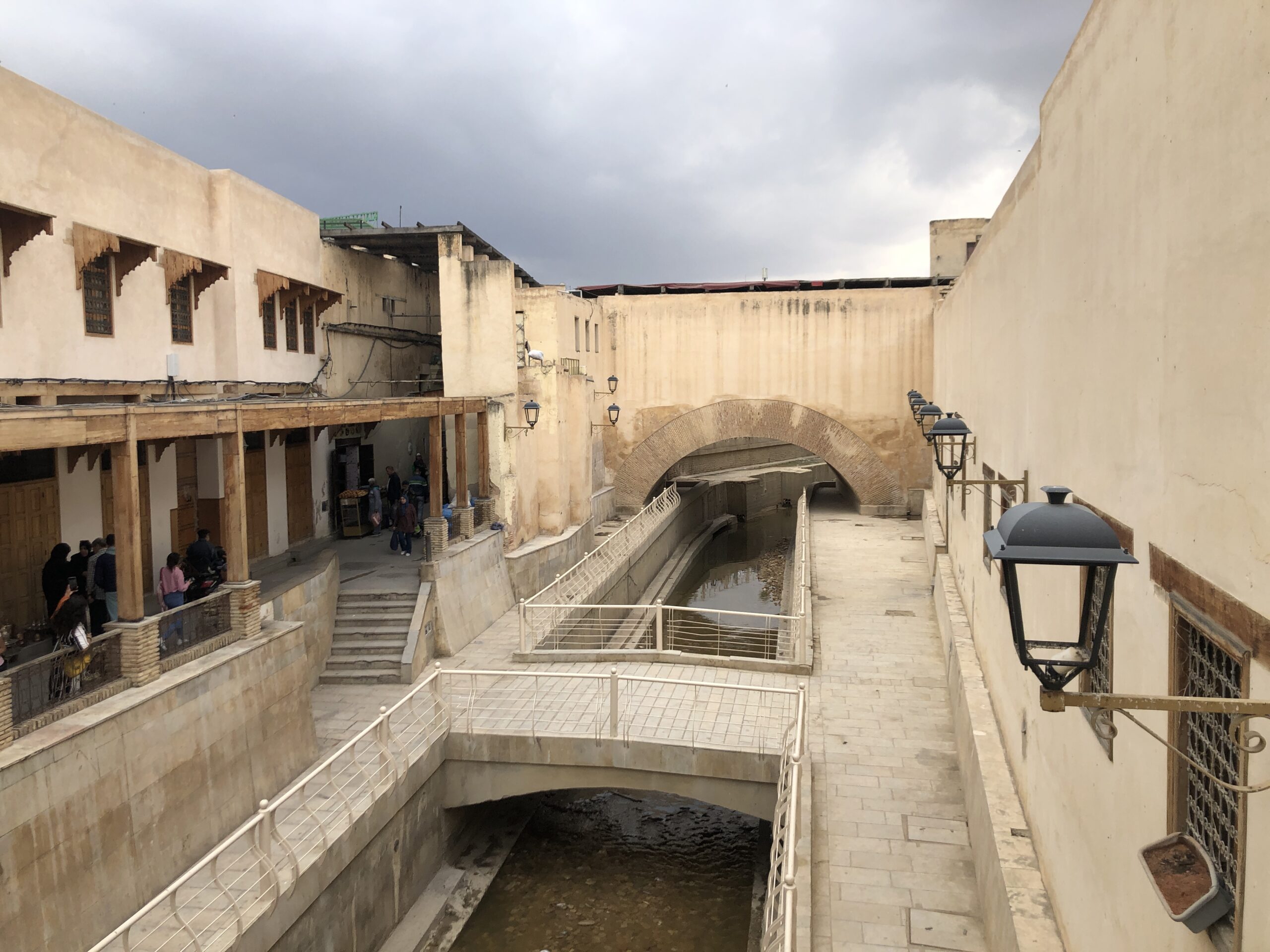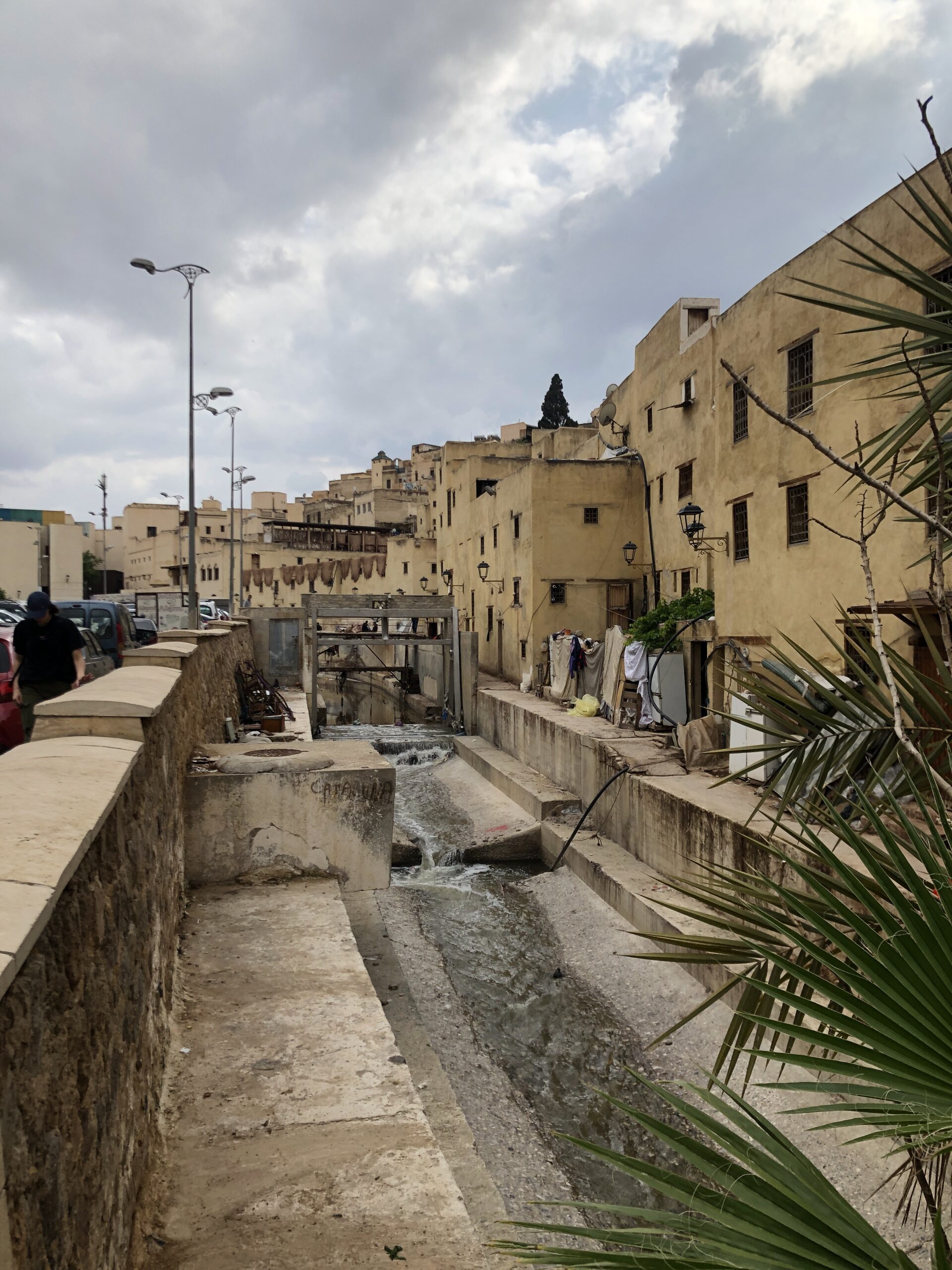Il quartiere delle concerie è formato da palazzi squadrati color sabbia con piccole fessure che appaiono scure da distante. Le finestre sono di modeste dimensioni per ostacolare il calore del sole che s’insinua in casa quasi tutto l’anno. É un luogo la cui ricchezza culturale indiscussa l’ha fatta entrare a far parte del patrimonio UNESCO, qui vengono lavorati le pelli seguendo antiche tradizioni e proprio laggiù, nelle vasche alla mia destra, noto un uomo completamente immerso sino alla cintola in questo nauseabondo liquido colorato, con fatica e dimestichezza immerge e sbatte lunghi lembi di pellame. A mani nude, senza alcuna protezione al viso o indumenti di lavoro.