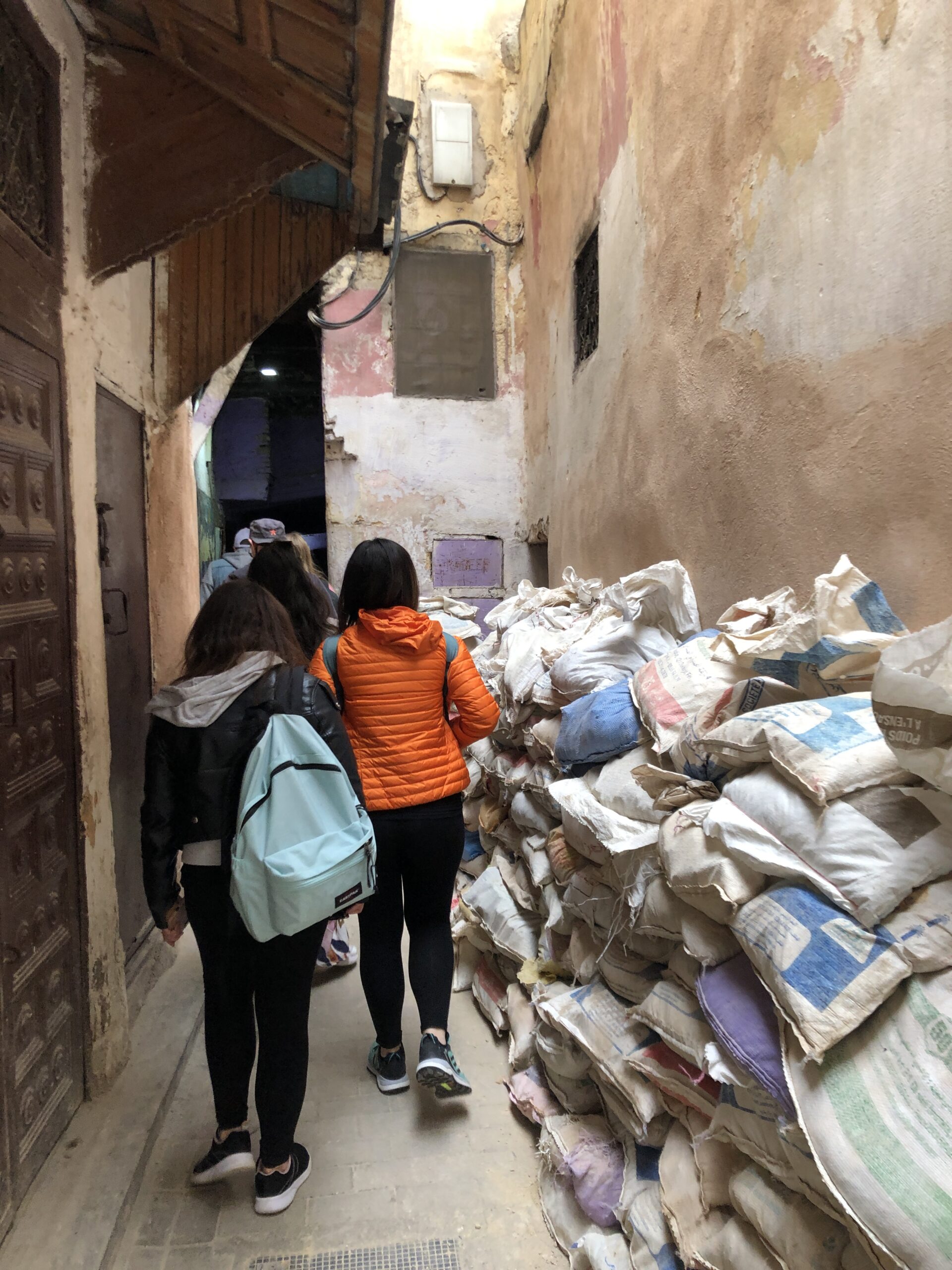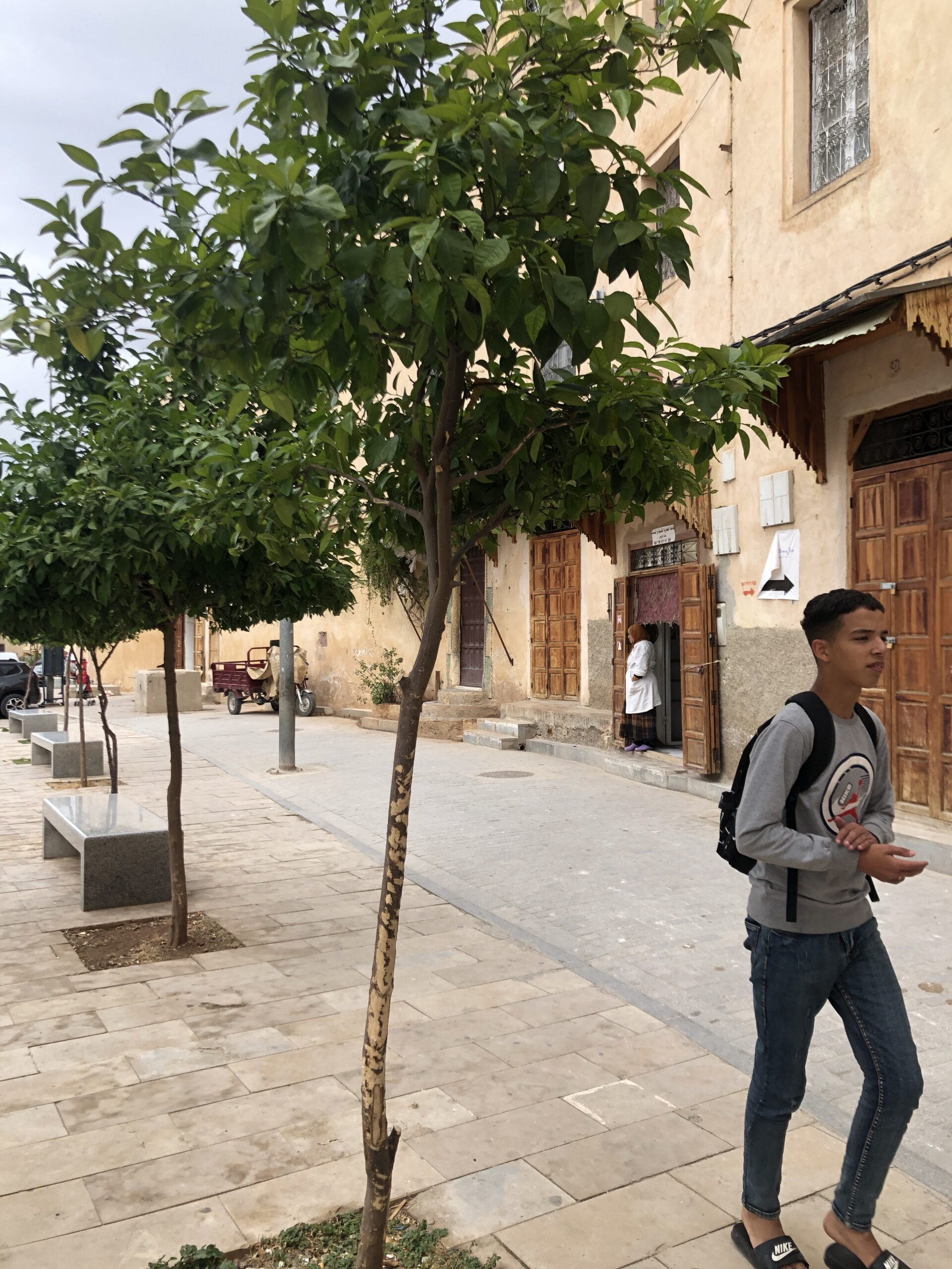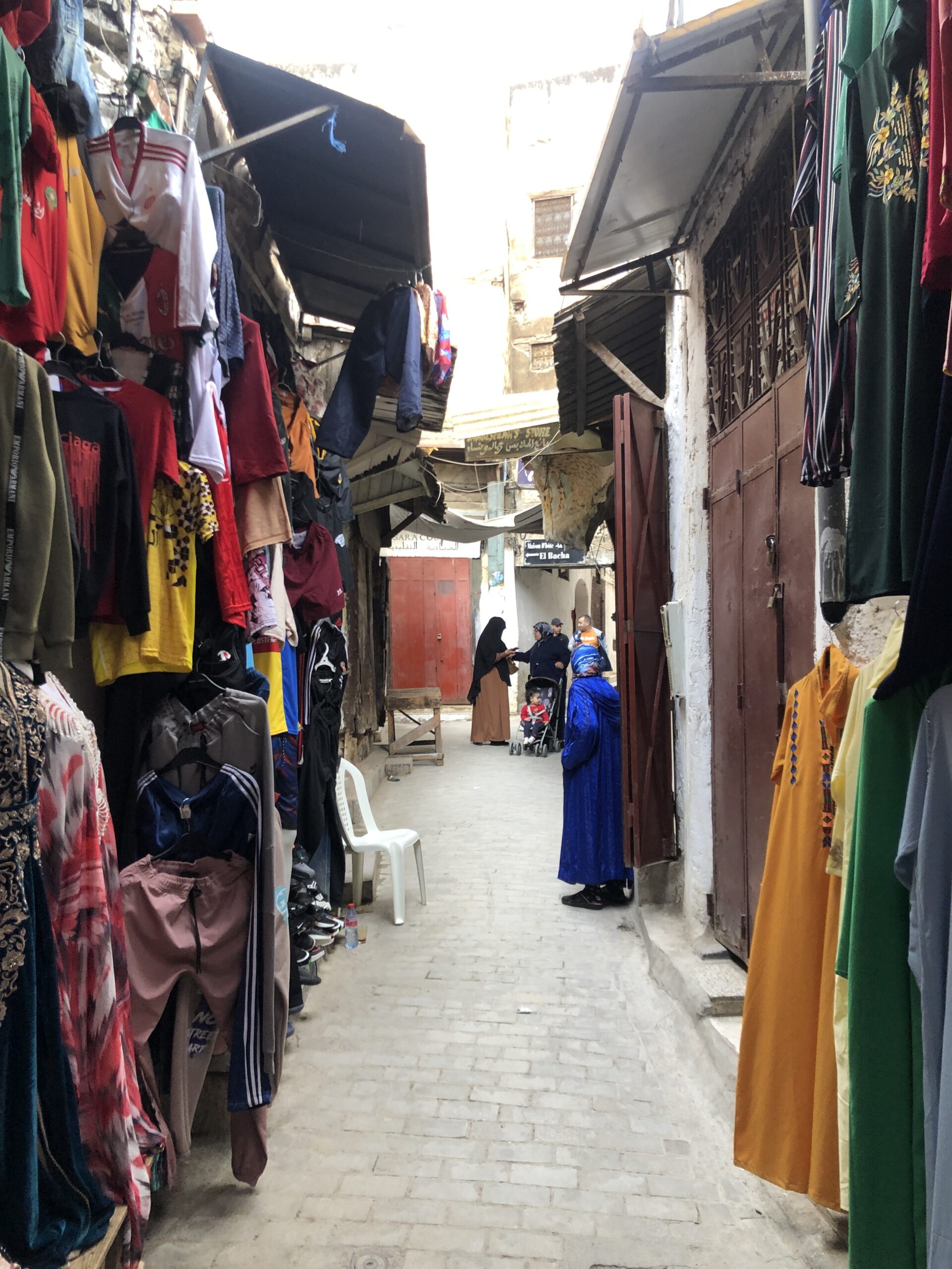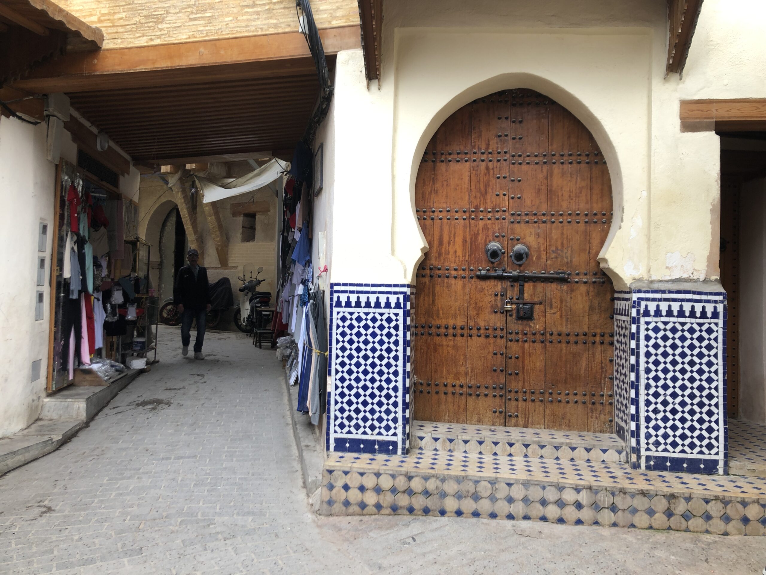 Il quartiere delle concerie è formato da palazzi squadrati color sabbia con piccole fessure che appaiono scure da distante. Le finestre sono di modeste dimensioni per ostacolare il calore del sole che s’insinua in casa quasi tutto l’anno. É un luogo la cui ricchezza culturale indiscussa l’ha fatta entrare a far parte del patrimonio UNESCO, qui vengono lavorati le pelli seguendo antiche tradizioni e proprio laggiù, nelle vasche alla mia destra, noto un uomo completamente immerso sino alla cintola in questo nauseabondo liquido colorato, con fatica e dimestichezza immerge e sbatte lunghi lembi di pellame. A mani nude, senza alcuna protezione al viso o indumenti di lavoro.