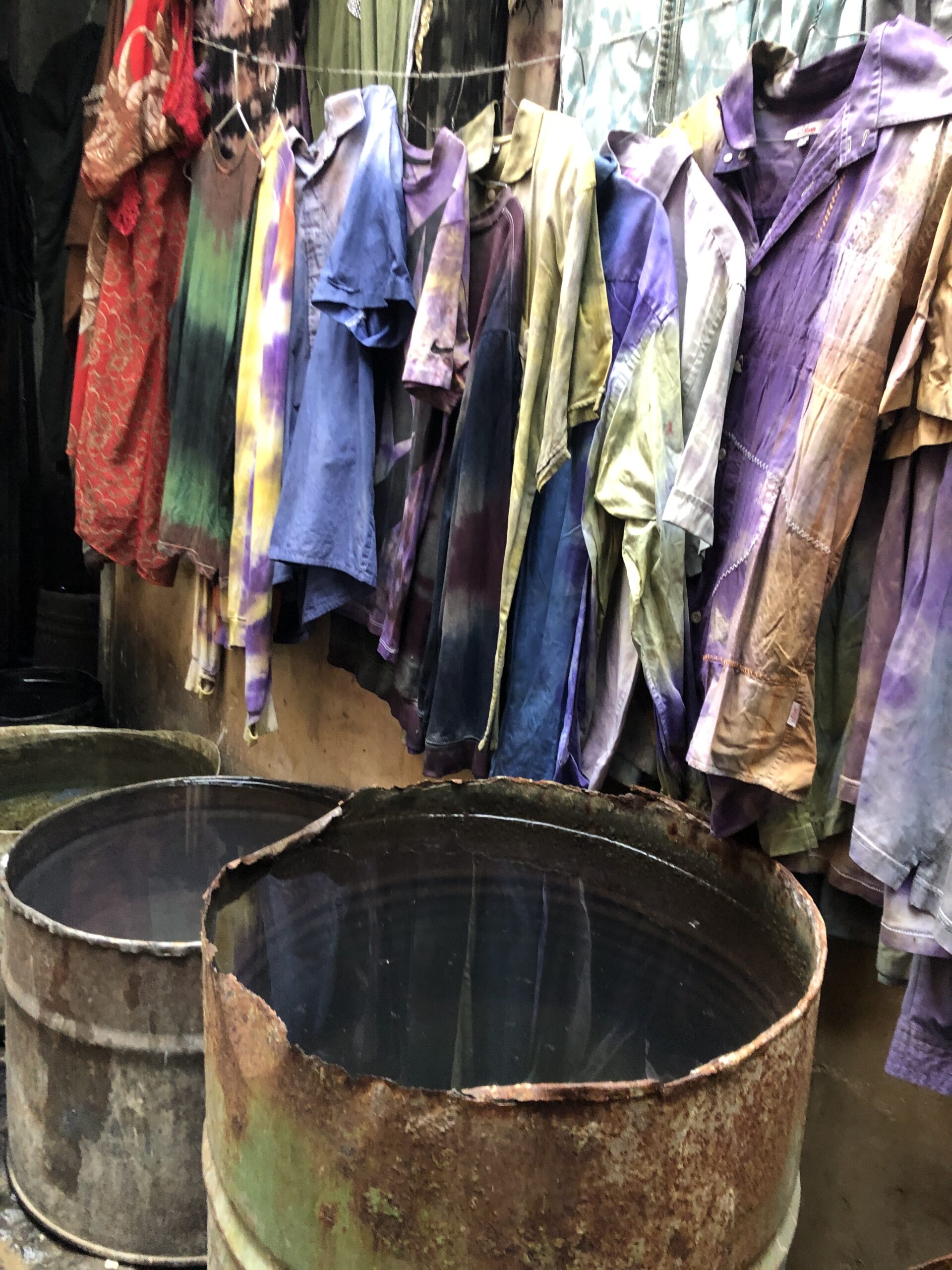 Diamo un ultimo sguardo in basso, su quelle vasche disposte a nido d’ape riempite da liquidi di vario colore, peli e grasso in eccesso vengono raschiati via nei primi processi, la tintura avviene solo successivamente all’interno delle vasche più scure ed infine viene fissato il colore. É proprio grazie all’ammoniaca contenuta nello sterco che la pelle viene resa più morbida per le successive lavorazioni.