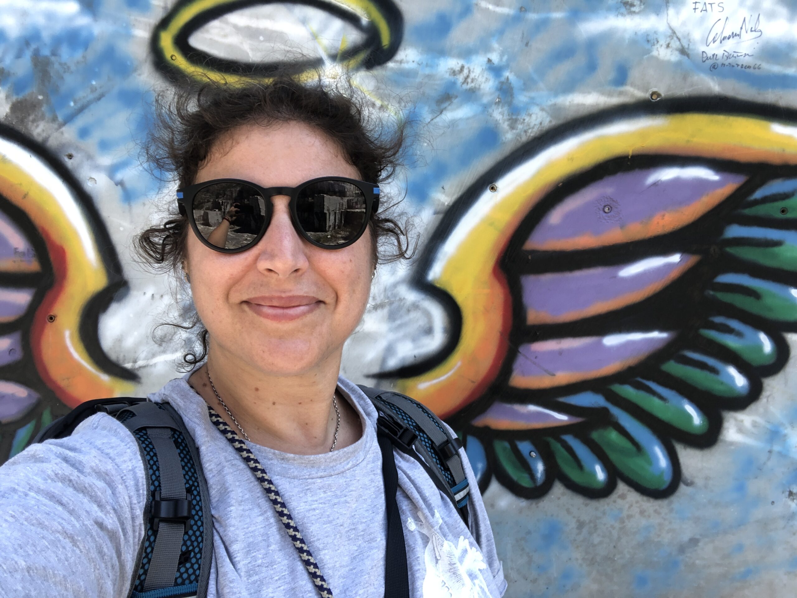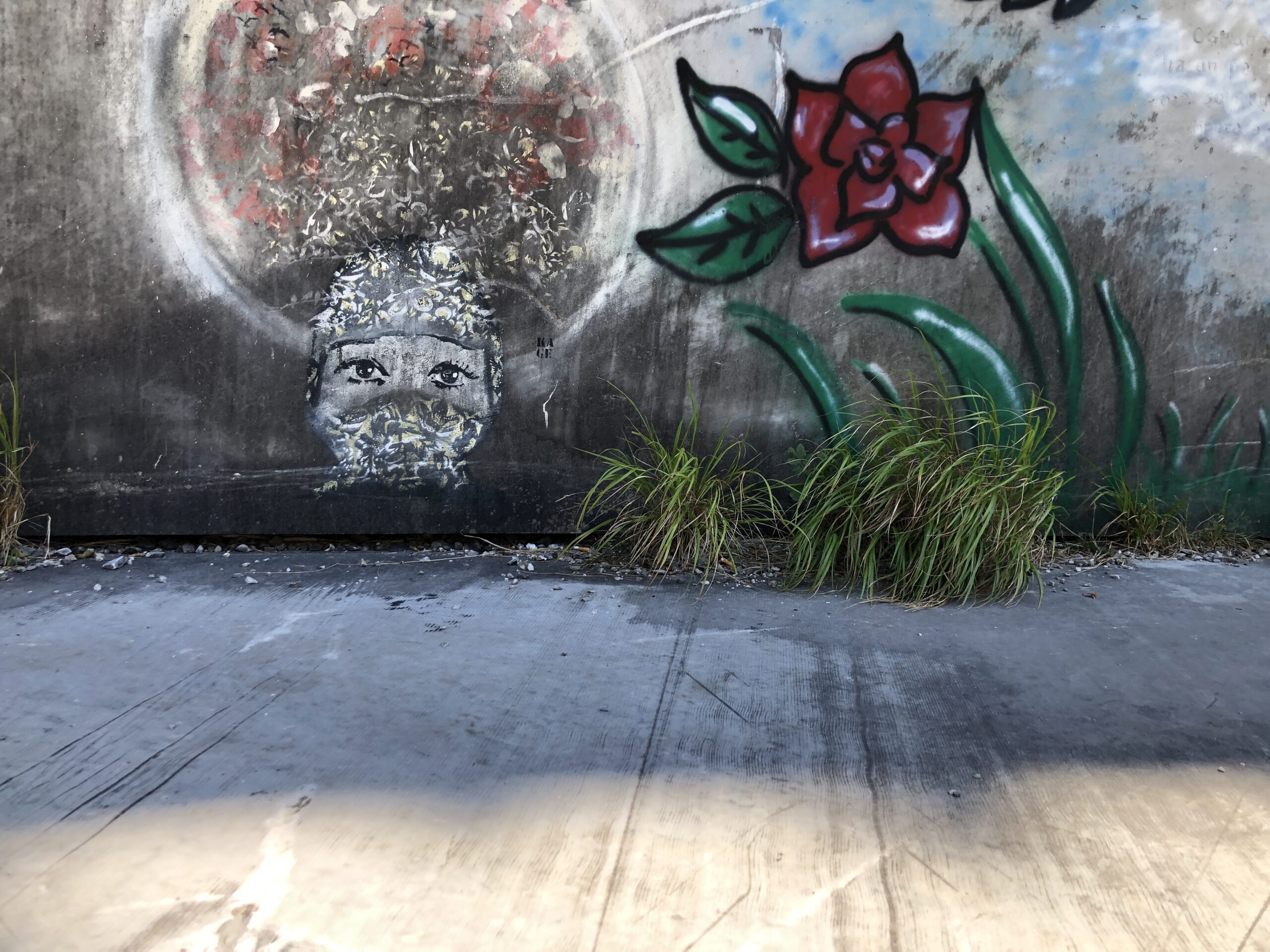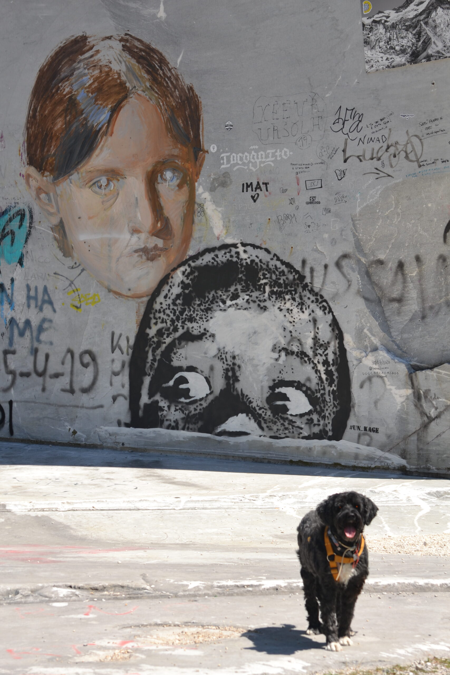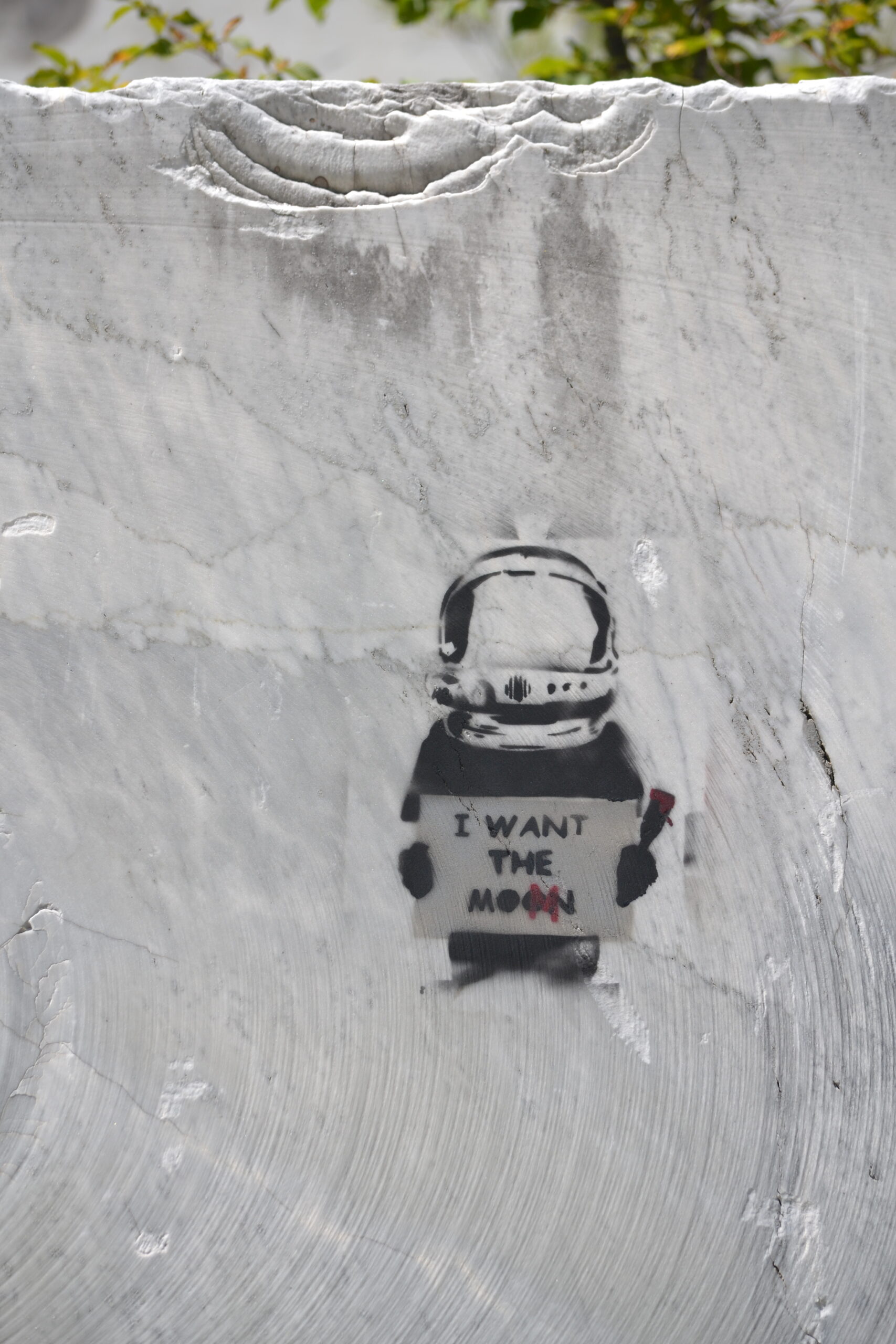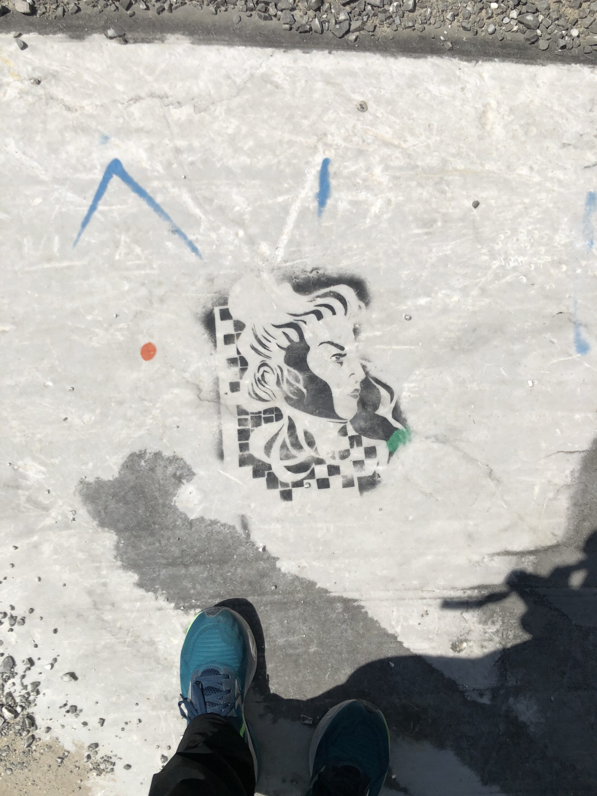 Avendo già visitato altre cave, mi aspettavo un ambiente più geometrico e freddo. Gli arbusti verdi che stanno rivendicando il loro spazio hanno stemperato quell’atmosfera austera e nuda che ci si aspetta da una zona di scavi del marmo. Resta il silenzio a dominarla e l’incertezza della vita in un luogo che appare morto. I murales, che pare siano la particolarità di questo luogo, non sono molti e non sono nemmeno delle grandi opere lo ammetto. É l’insieme che crea il contesto, il sole rende la pietra di risulta incandescente, ma il marmo lisciato dagli ultimi tagli è invece fresco al tatto, nonostante i raggi s’infrangano su di esso.