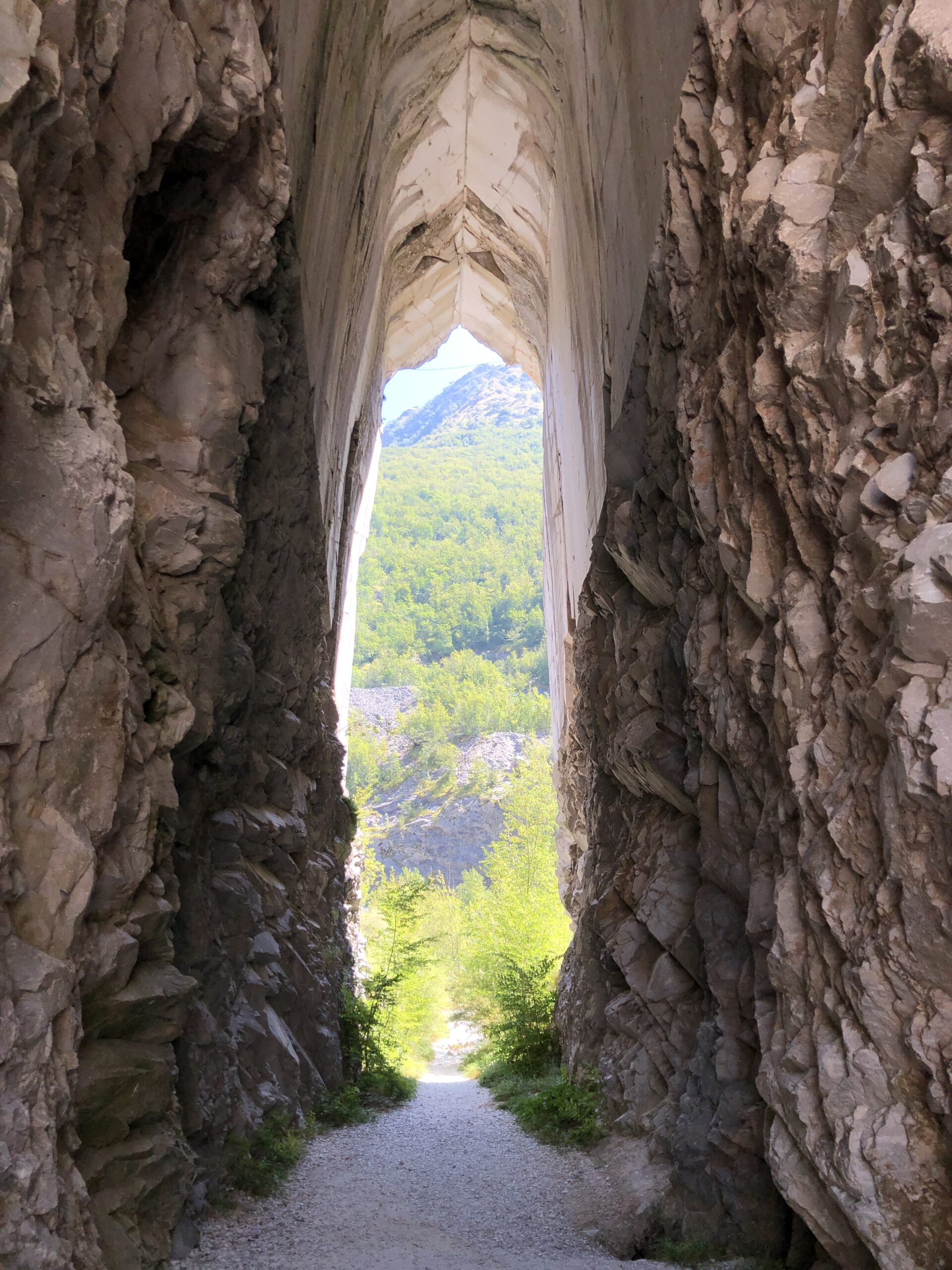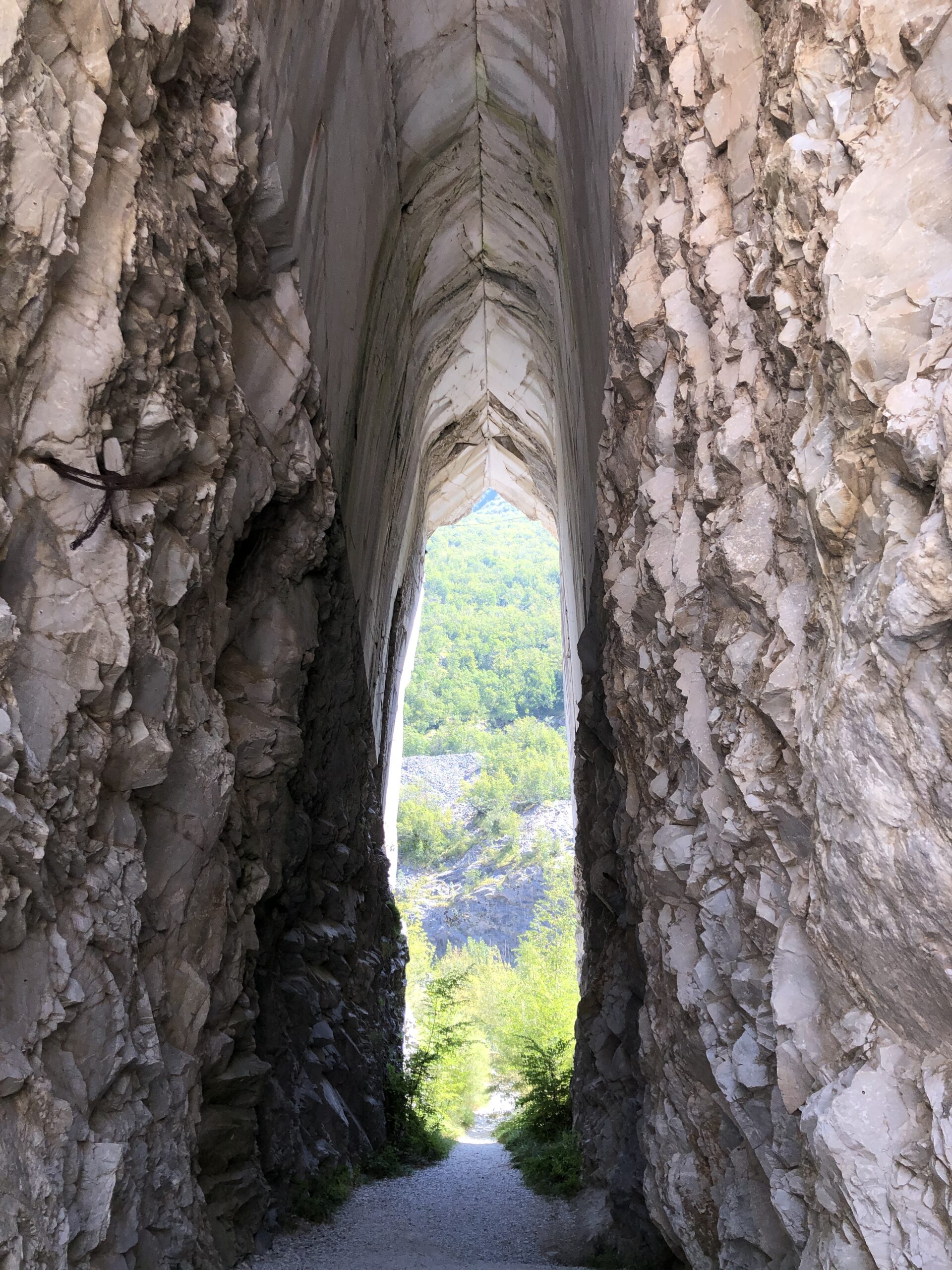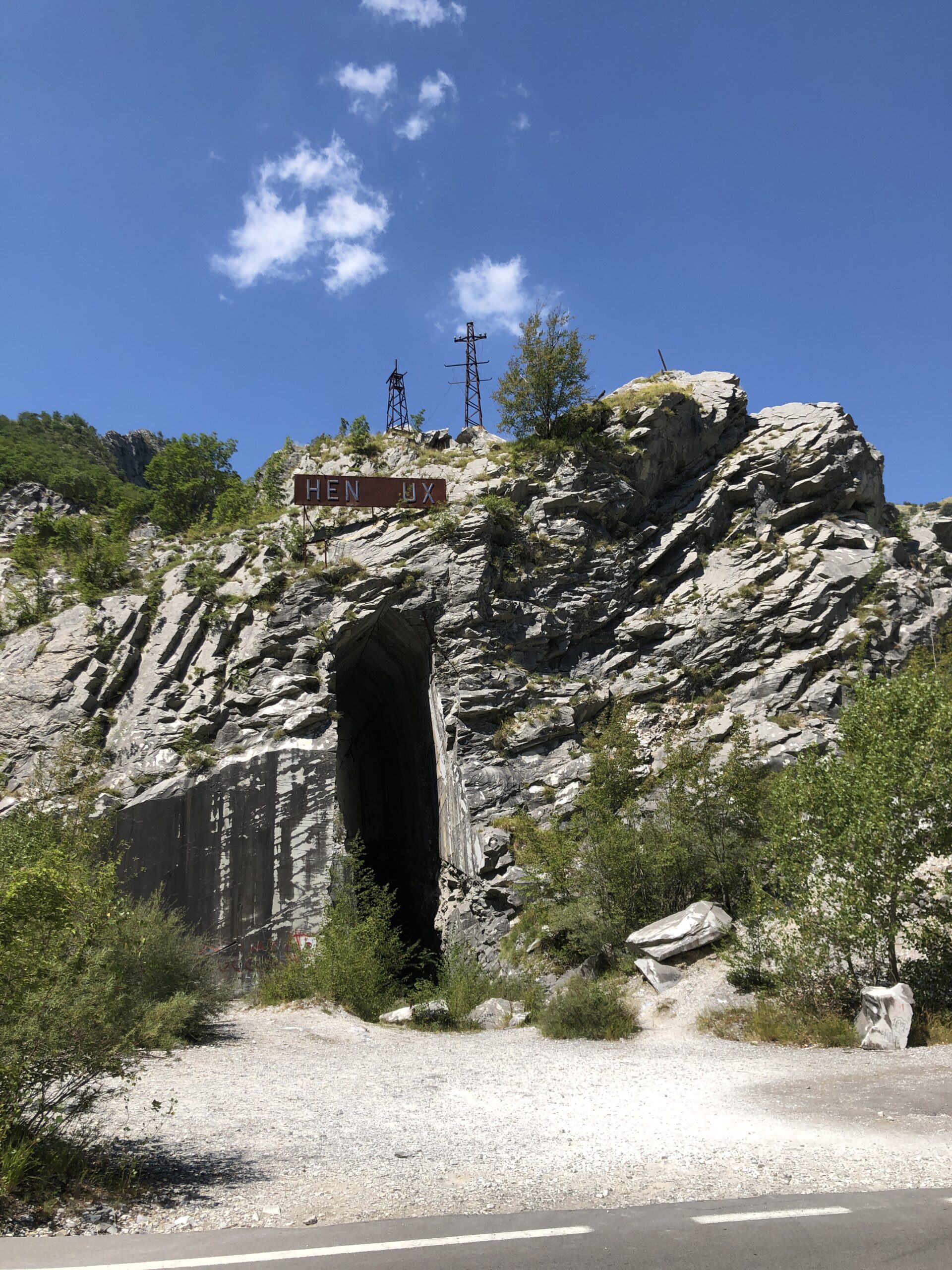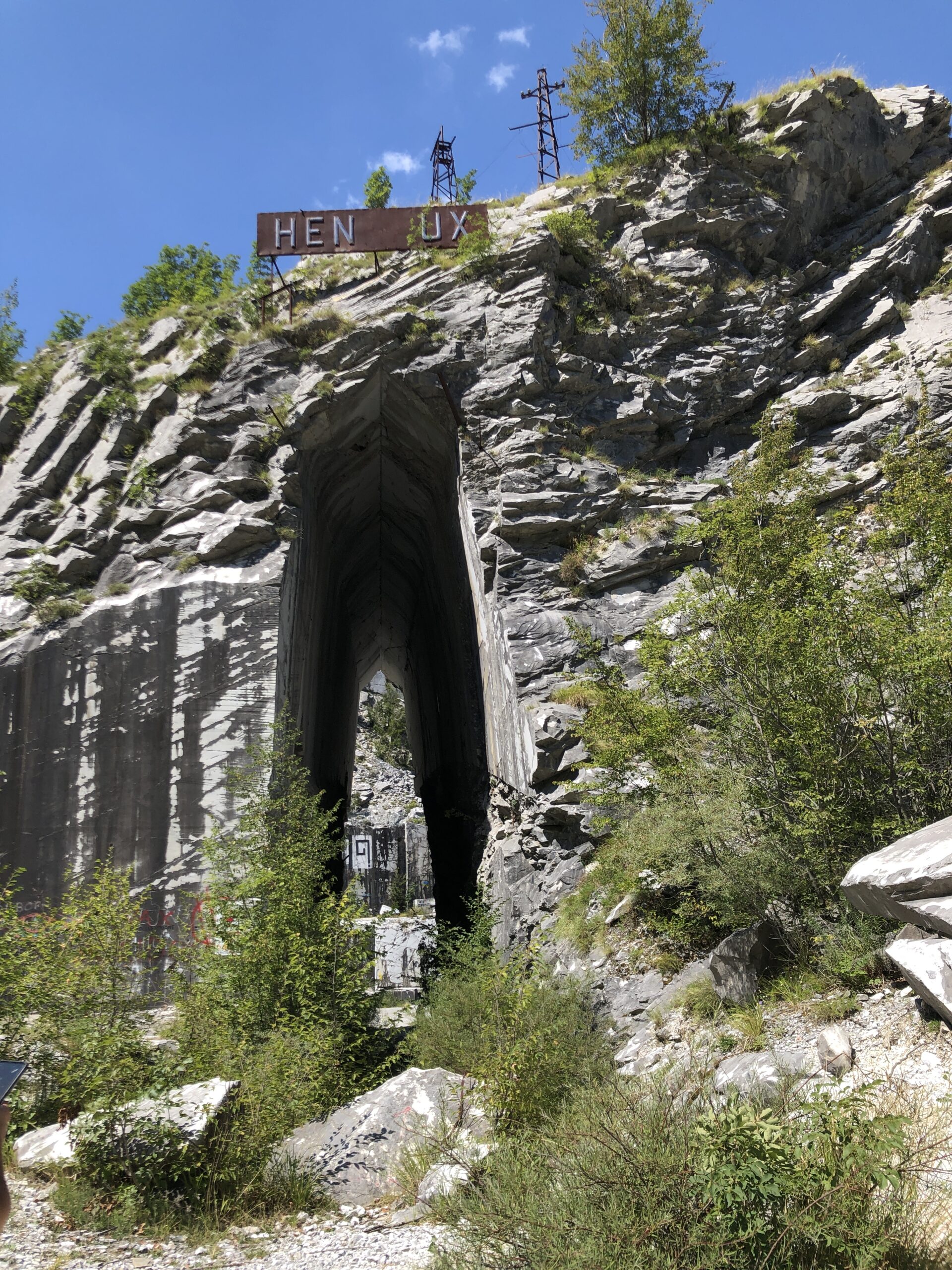 Sull’ingresso, a dir poco incantevole, svetta ancora la vecchia insegna del proprietario. Il francese Jean Baptiste Alexandre Henraux che nel 1821 acquistò la cava ed altri parti di montagna restituendo così vita, a ciò che nel 1500 era stata la ‘particolare boutique’ di artisti del calibro di Michelangelo Buonarroti. Proprio lui fu il primo nel 1517 a scoprire i marmi di questa zona (Seravezza in provincia di Lucca) che hanno la particolarità di essere bianchi con striature grigie. Il primo blocco proveniente da questa cava scese a valle negli anni Sessanta del 1500, venne impiegato per la realizzazione della facciata di San Lorenzo a Firenze. Con Henraux la cava ormai in disuso torna a estrarre marmo arabescato che viene spedito in tutto il mondo. Tra le varie opere abbellite con questo pietra c’è ad esempio la cattedrale di Sant’Isacco di San Pietroburgo realizzata nella metà del 1800.