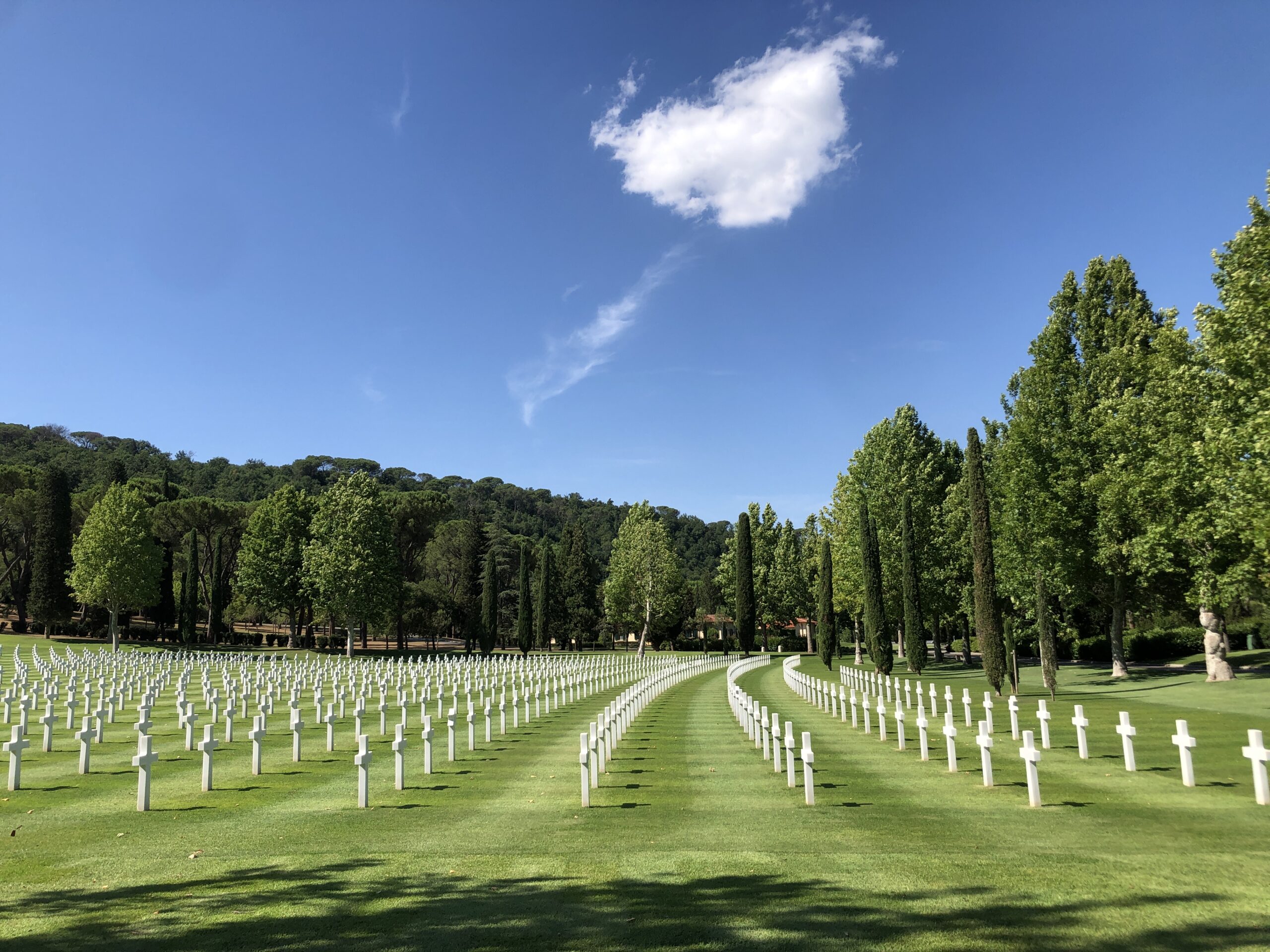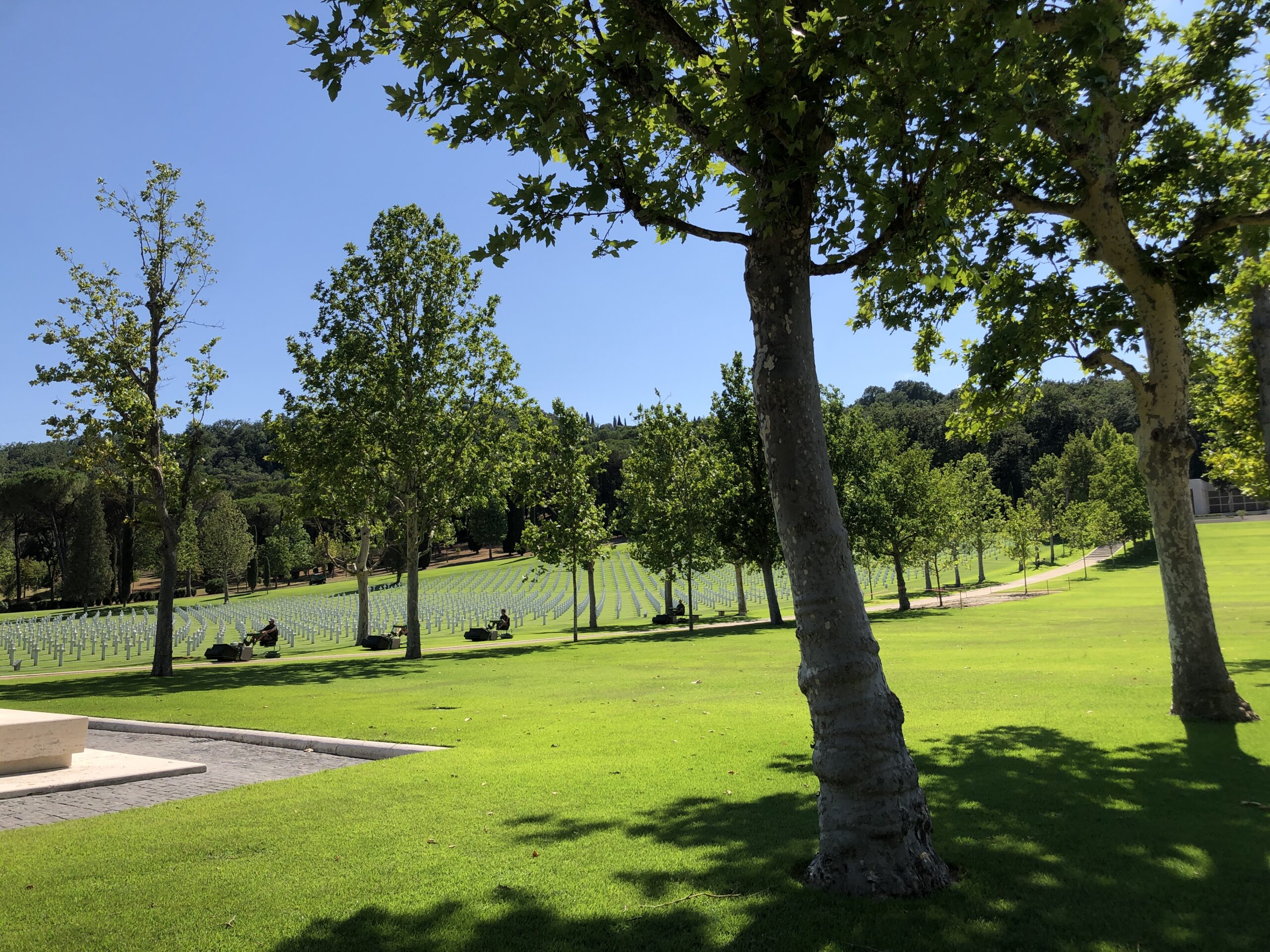 I cimiteri americani sono molto rigorosi, geometrici, ordinati. Tutti i fili d’erba hanno la stessa tonalità di verde e la stessa altezza. Quando ti trovi al cospetto di questa distesa di candide croci e stelle, tutte allineate e coperte come fossero ancora in schieramento, provi un leggero senso di disorientamento.