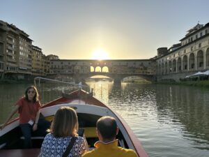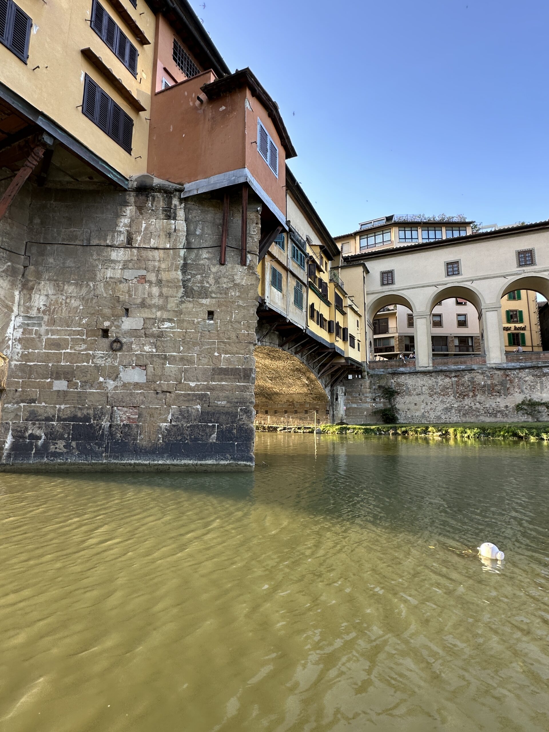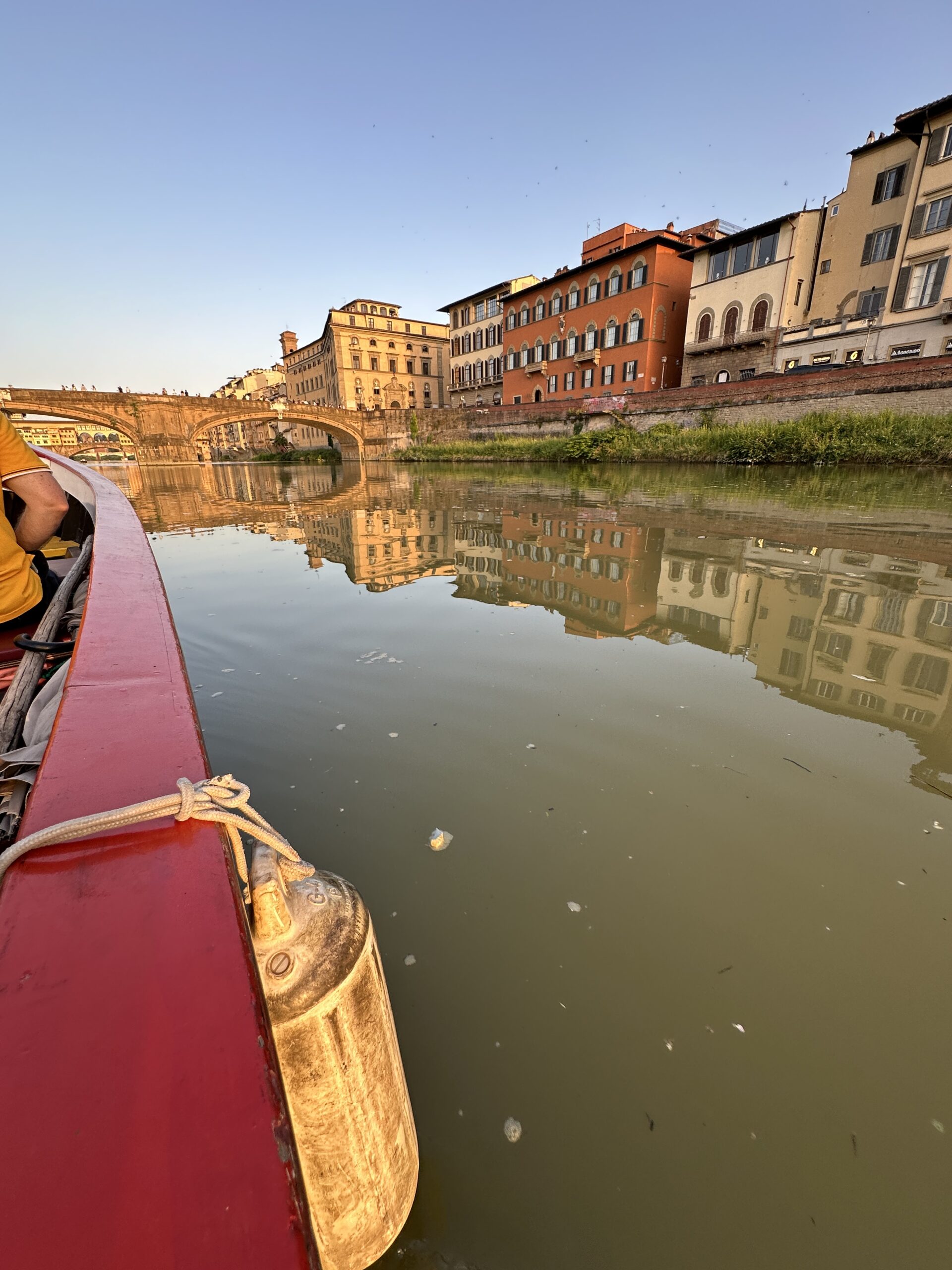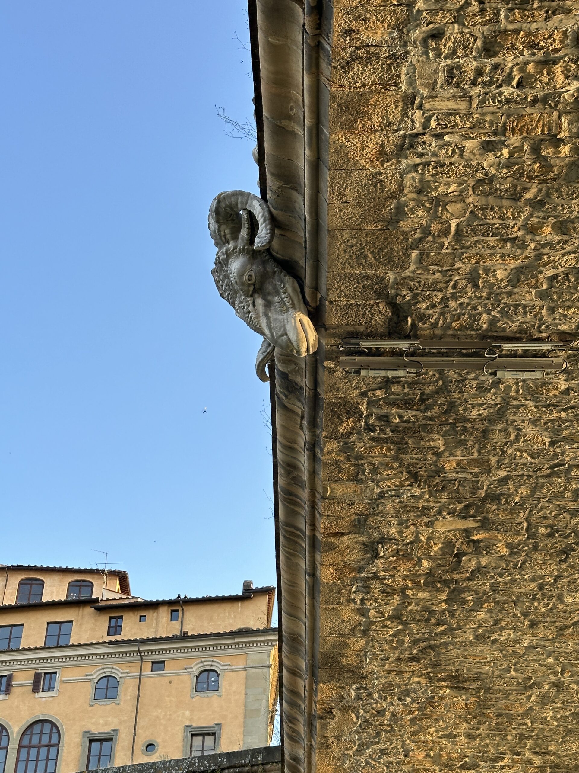 Da qualche tempo però questo antico mestiere è tornato a far parlare di sé, i renaioli hanno rimesso le barche in acqua e non per smuover la terra, ma per portare i turisti a vedere Firenze da un punto di vista insolito. Si tratta di un tour di poco più di un’ora, che passa sotto Ponte Vecchio e Ponte Santa Trinita. Sotto quest’ultimo, in posizione centrale da entrambe i lati, noto per la prima volta in vita mia, due teste di Capricorno. L’animale era uno degli emblemi di Cosimo I de’ Medici, la posizione in cui si trovano le due sculture è davvero particolare, è infatti impossibile scorgerle se si attraversa il ponte e se qualcuno non ci fa caso, non le nota nemmeno passeggiando lungo le sponde. La cosa particolare di queste teste cornute è che hanno due smorfie diverse. Quella che guarda a monte del fiume ha uno sguardo preoccupato, corrucciato, forse spaventato dalla possibile furia del corso d’acqua; quella che guarda al mare invece, ha un’espressione più tranquilla.