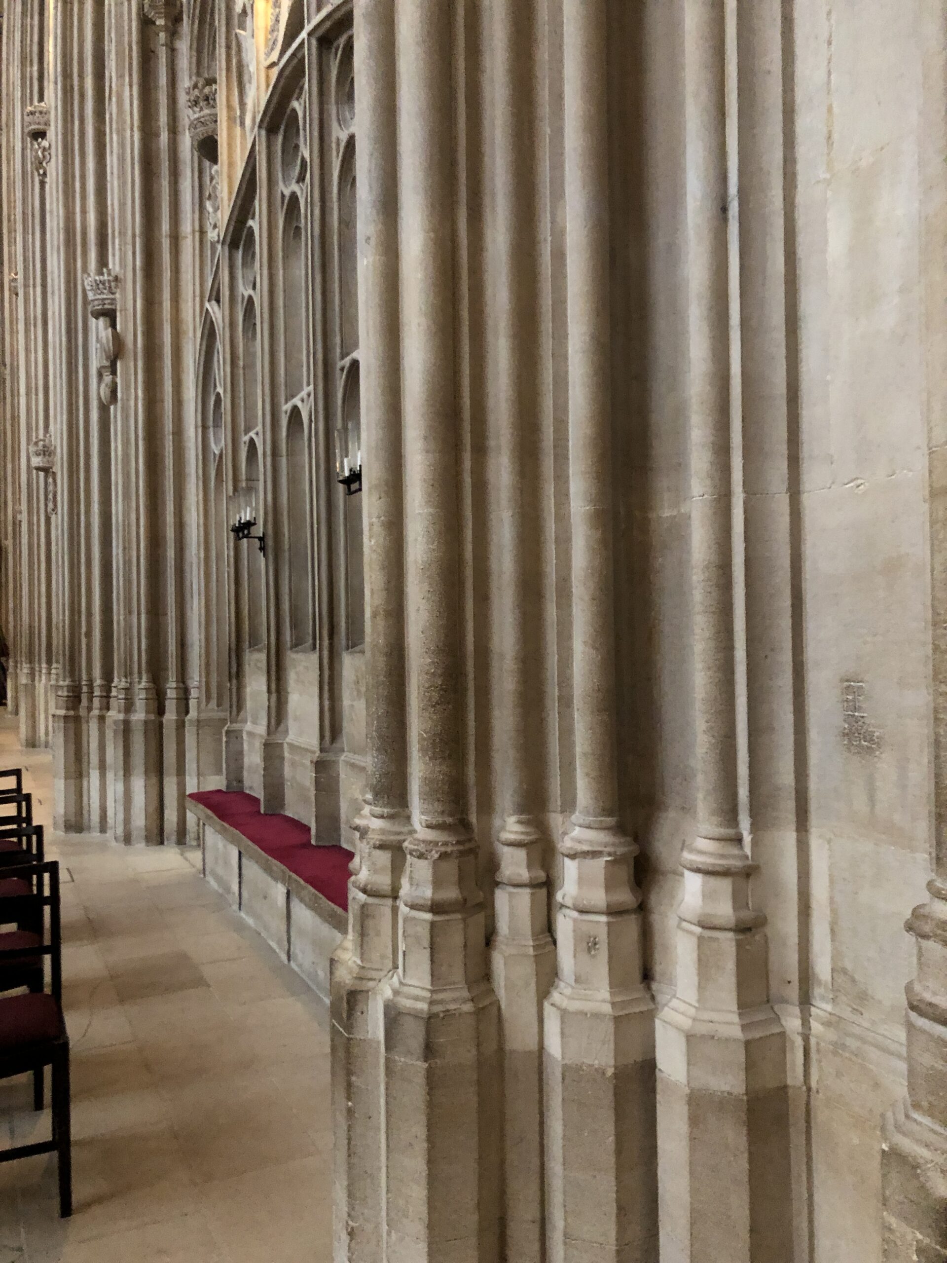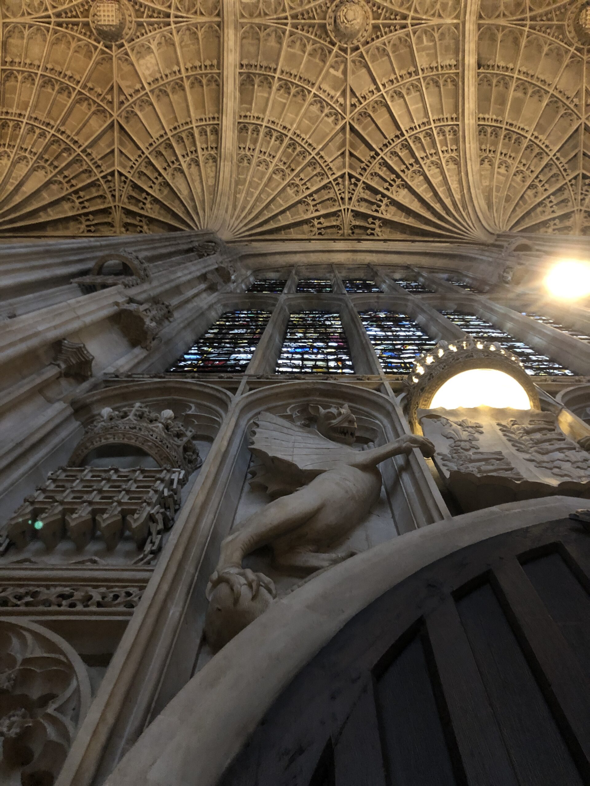 Un’unica navata lunga poco meno di 90 metri con le pareti ricoperte da gigantesche vetrate multicolore che rendono l’ambiente gioioso e regale allo stesso tempo. Il soffitto in pietra, alto più di venti metri, è scolpito con colonne ricurve che ricordano una ragnatela o, per essere più precisi, un ventaglio, questa infatti è la volta a ventaglio più grande del mondo!