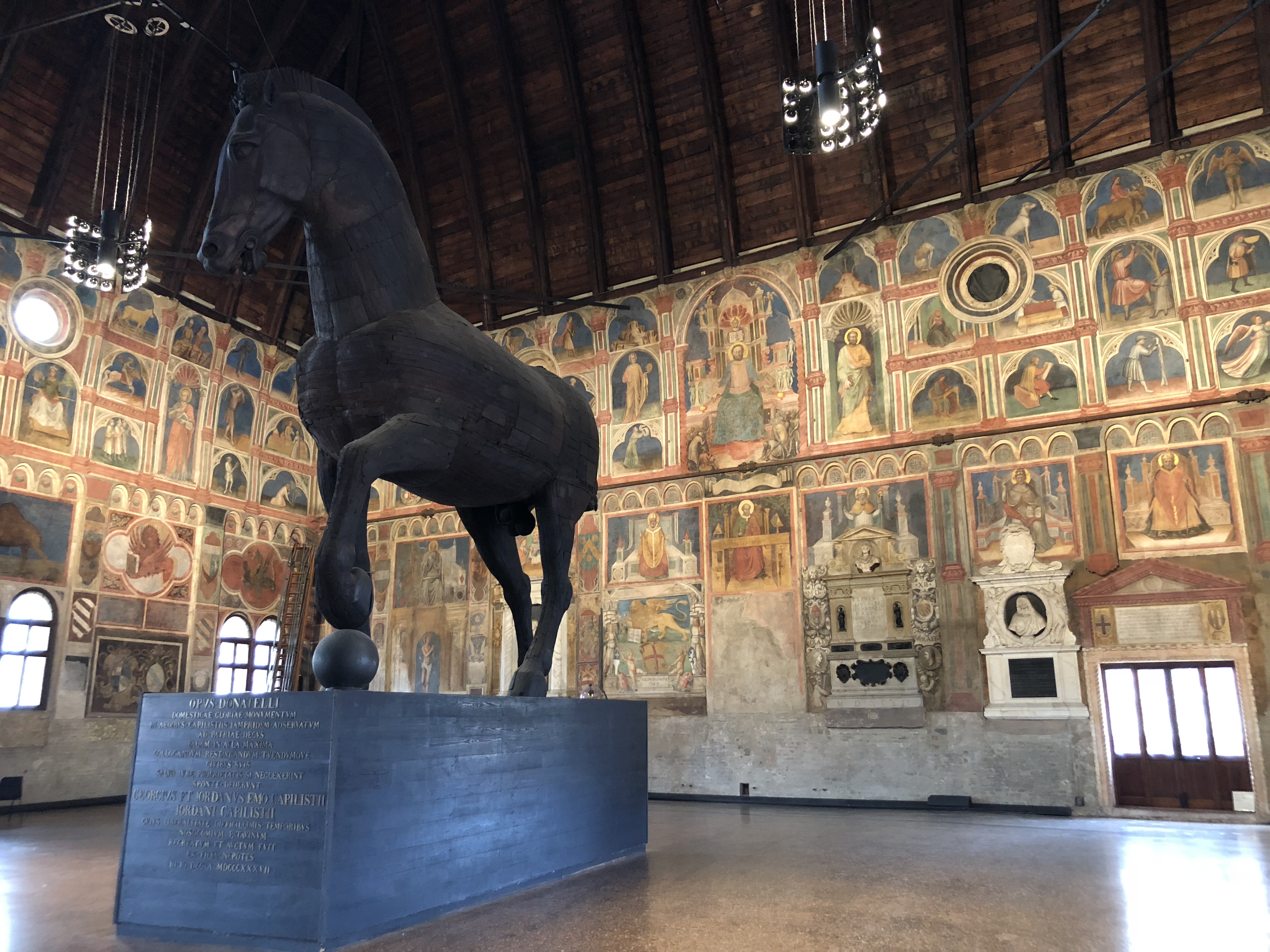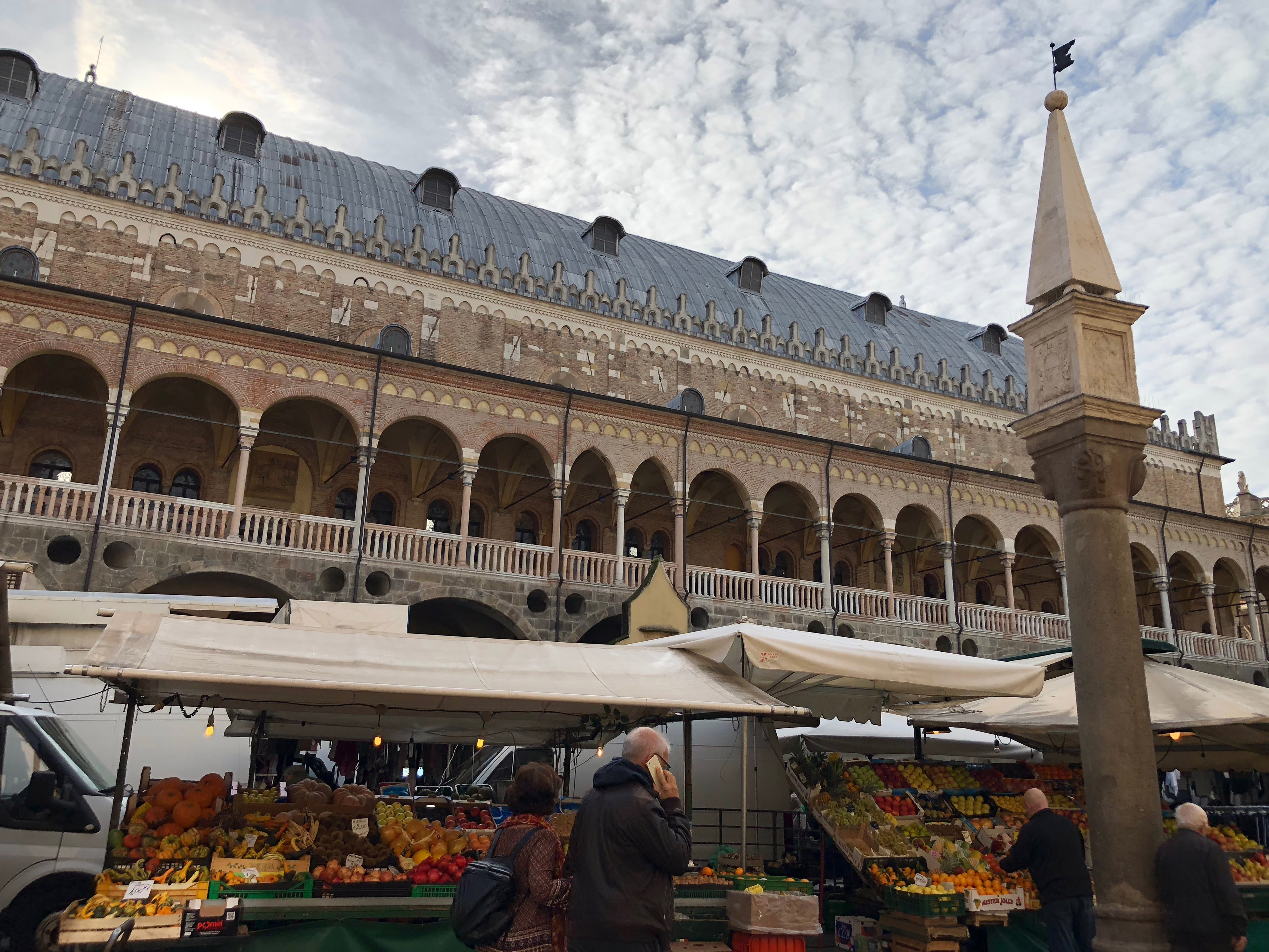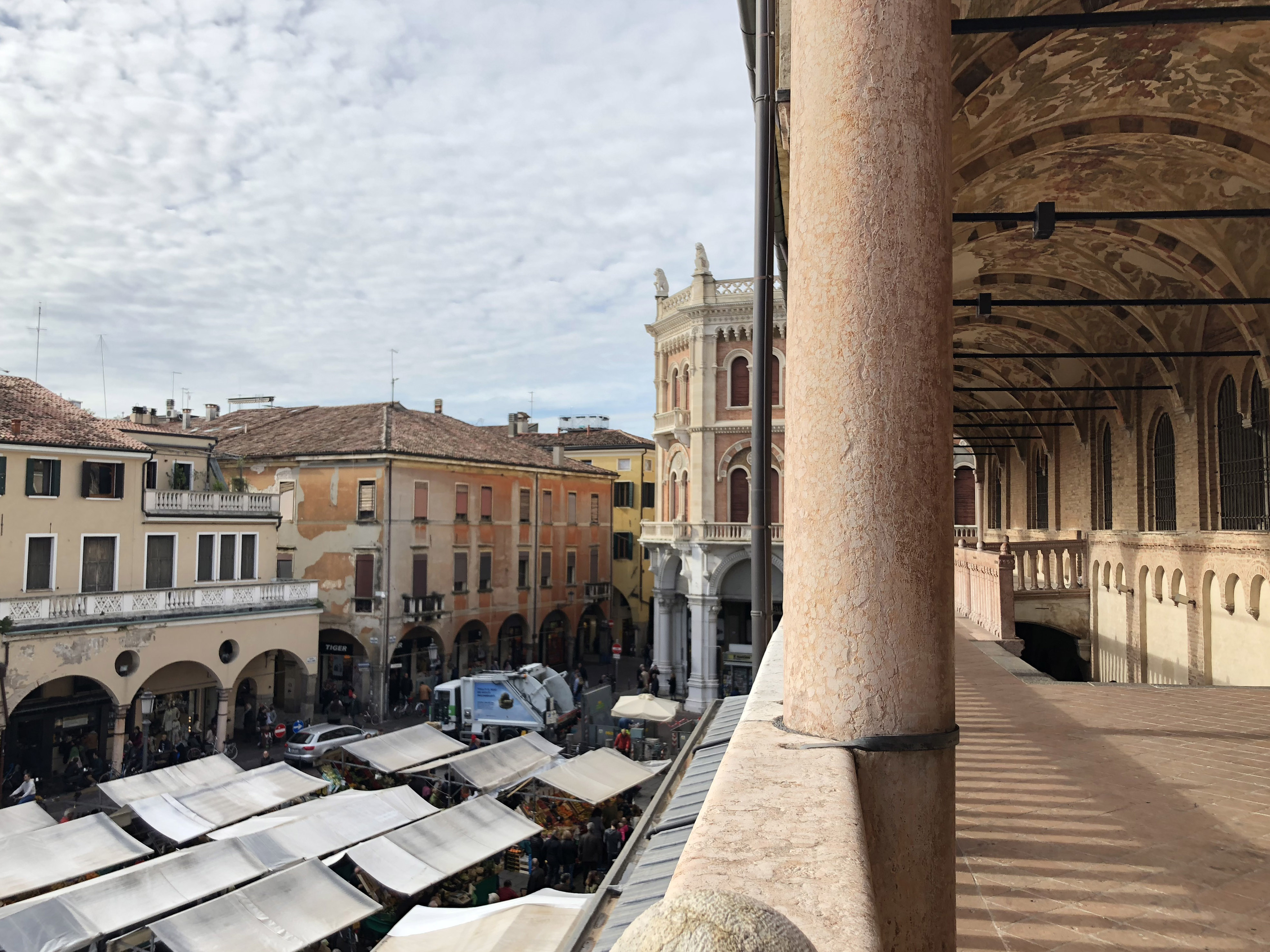 Il Palazzo della Ragione è la prima meta: il suo salone in legno completamente dipinto è gigantesco, sembra di stare nella pancia di una barca capovolta. Le finestre e i corridoi esterni offrono una vista privilegiata su Piazza delle Erbe e Piazza dei frutti.