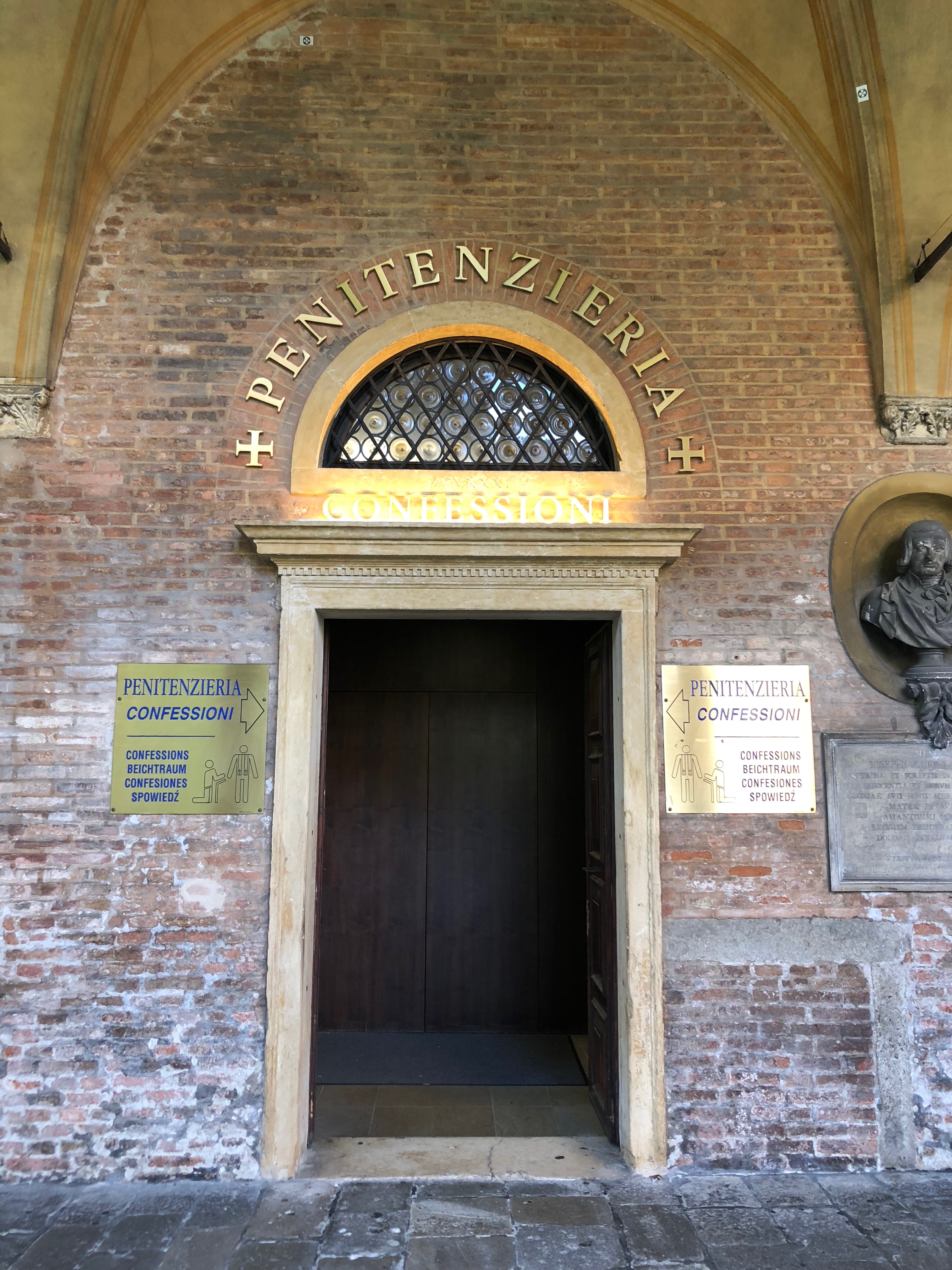 Inevitabilmente la maggior parte della gente viene a Padova per il Santo. La chiesa a lui dedicata è enorme, così grande da essere quasi imbarazzante: al suo interno ci sono negozi, zone di preghiera, salette per la confessione, un’erboristeria, souvenir di ogni tipo e per tutte le tasche, chiostri e cappelle. Delle grosse insegne al neon ti indicano i vari punti d’interesse all’interno delle navate della chiesa. Mi perdo ammirando le bellezze di questa struttura e poi leggo l’insegna “penitenzieria”. Mi viene subito in mente il film di Pieraccioni ‘il pesce innamorato’, la scena in cui lo zio fallisce dopo aver aperto la pinoleria e vuole mettere su una parrucchineria.