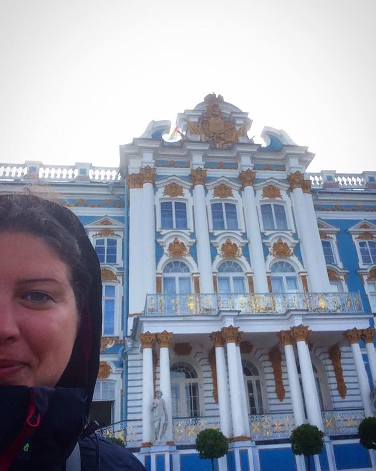 Il silenzio di questi luoghi è pura magia. Riscopri il gusto della vita, il profumo dell’aria pulita, il suono delle zampetta dei piccoli uccellini che si appoggiano sui rami deboli che cedono sotto il loro leggero peso. Passeggio pensando di calpestare il viale alberato che anche la Zarina ha percorso. Chissà se lo sa che adesso il suo giardino privato è pieno di persone in visita da tutto il mondo. Chissà se sa che si paga un biglietto per gironzolare in casa sua, per fare foto e per restare a bocca aperta mentre vengono attraversati corridoi pieni di specchi e cornici dorate.