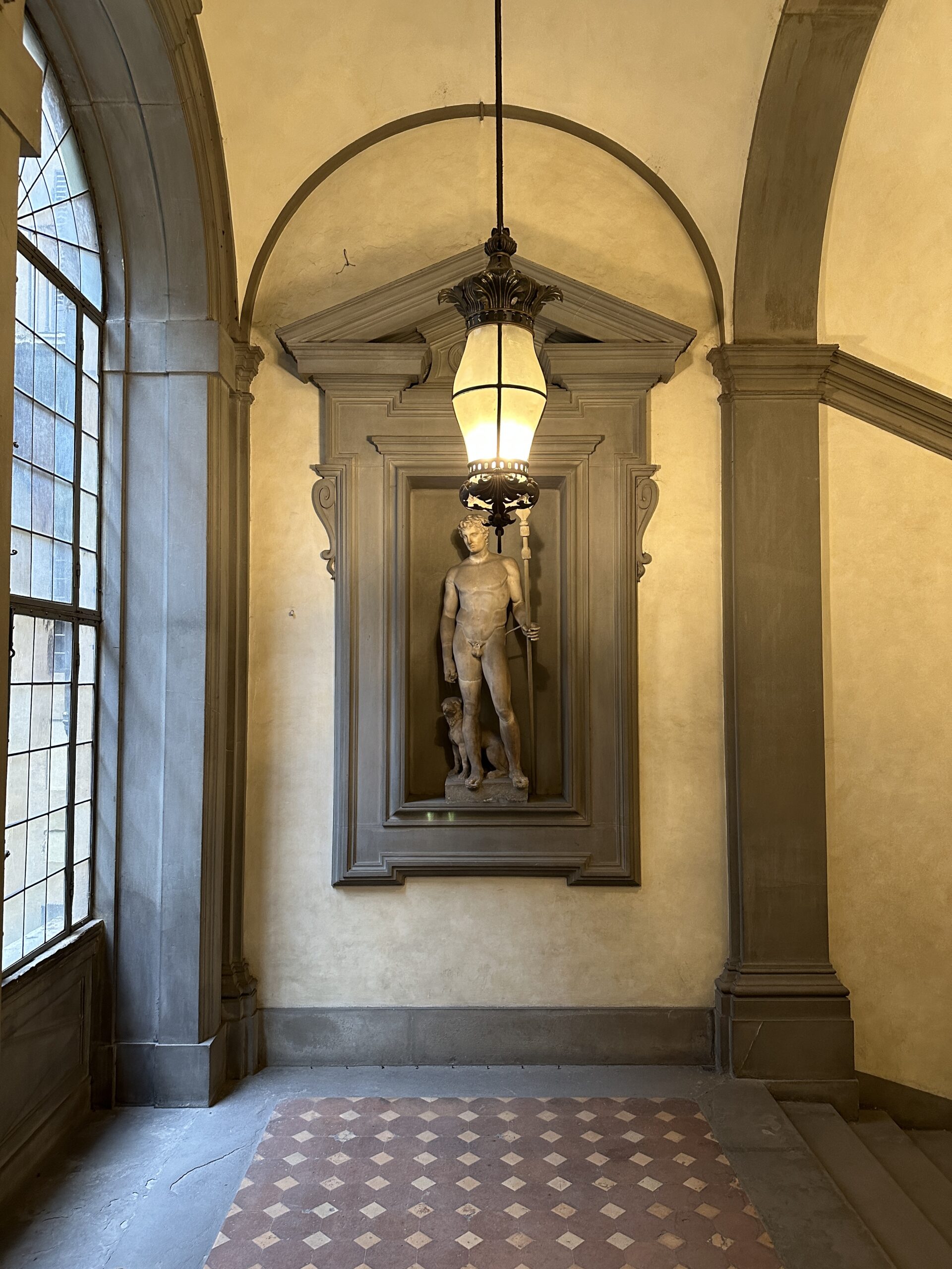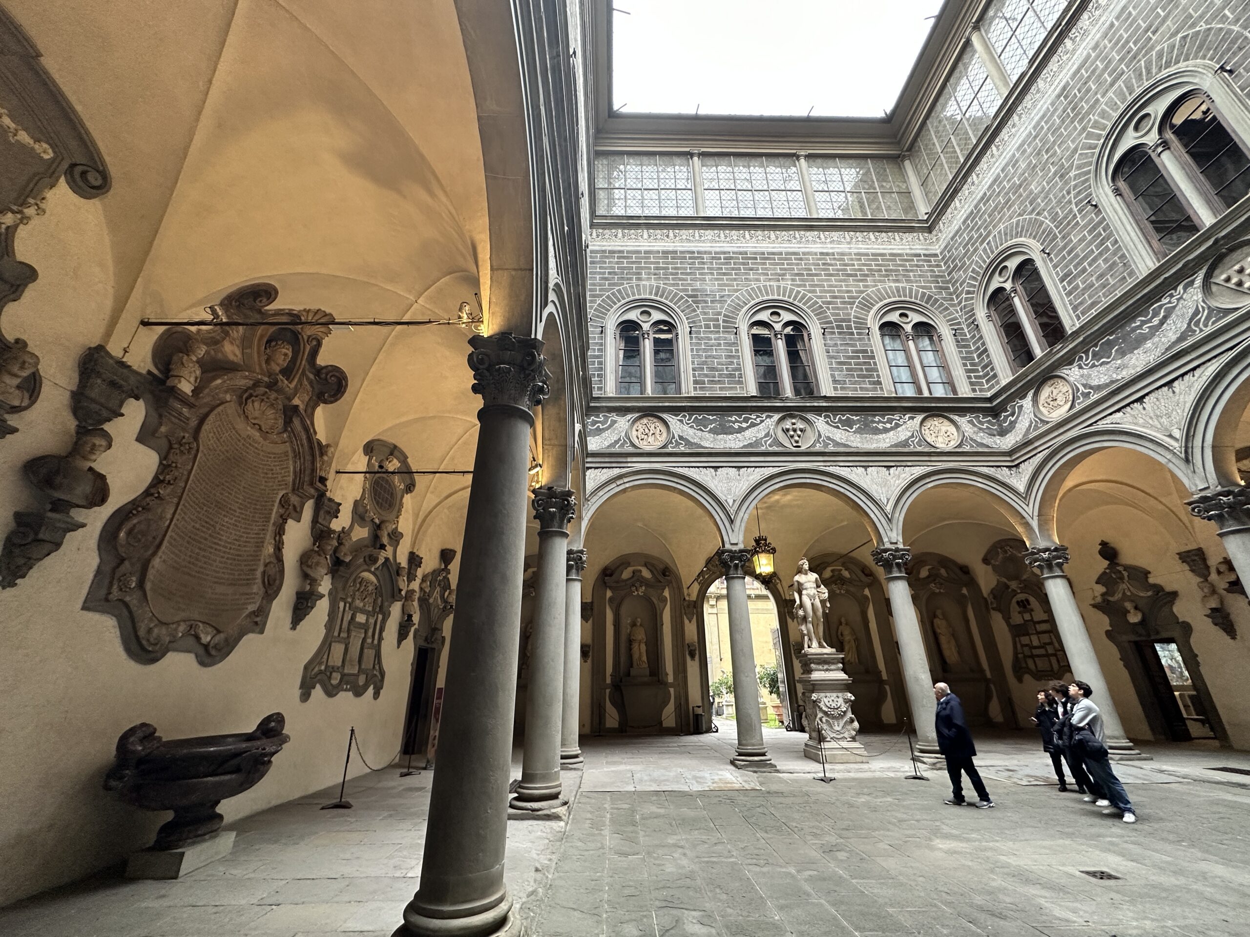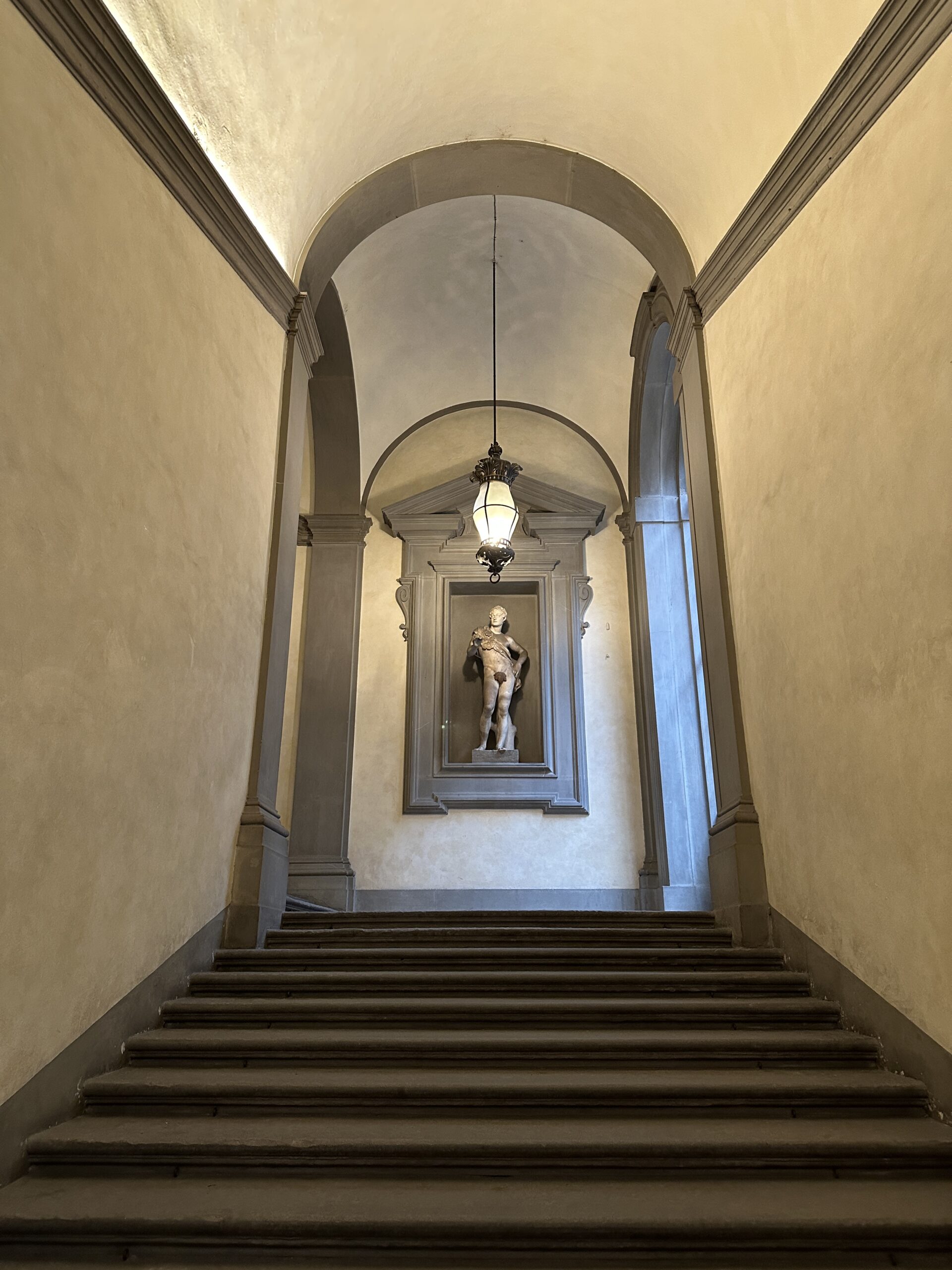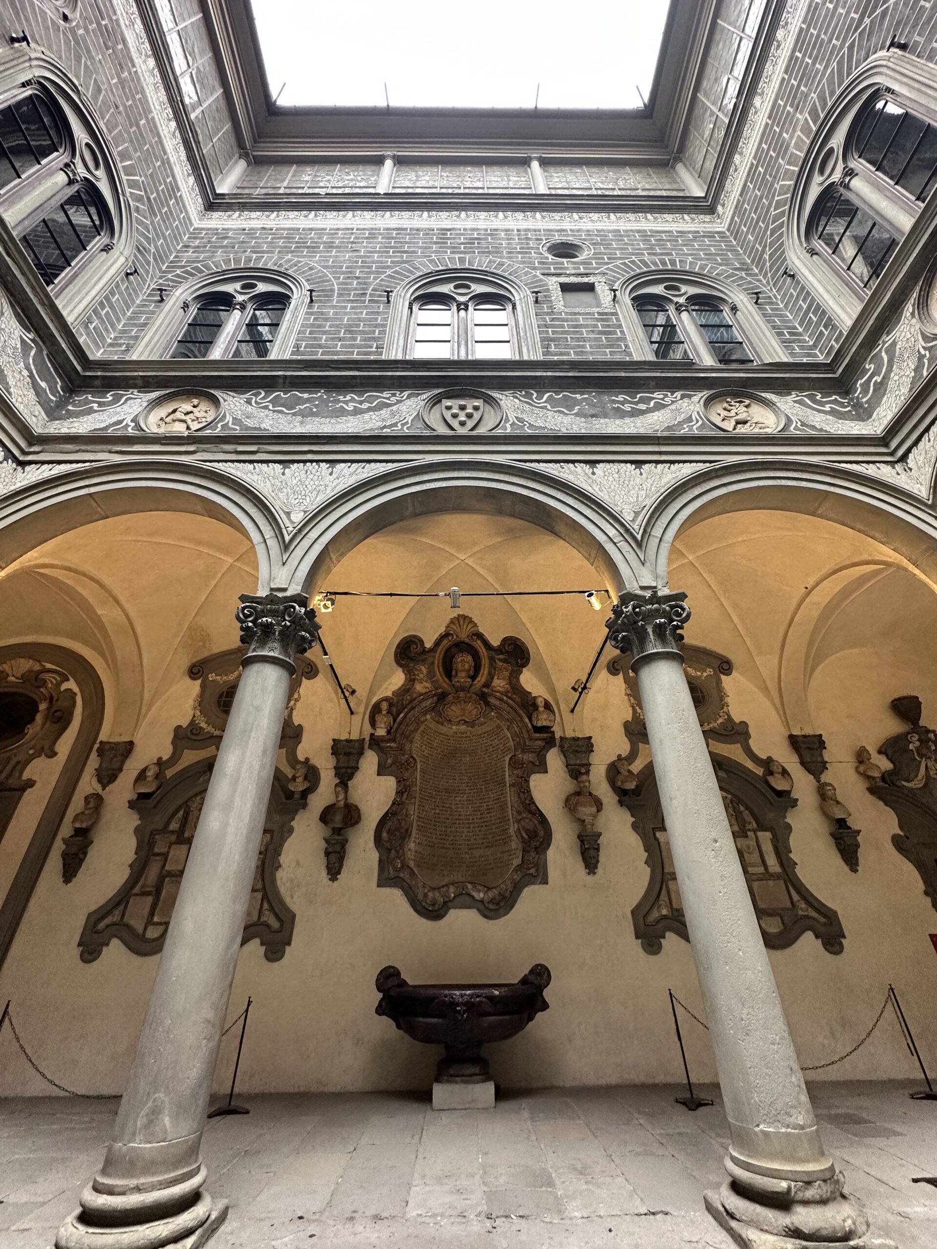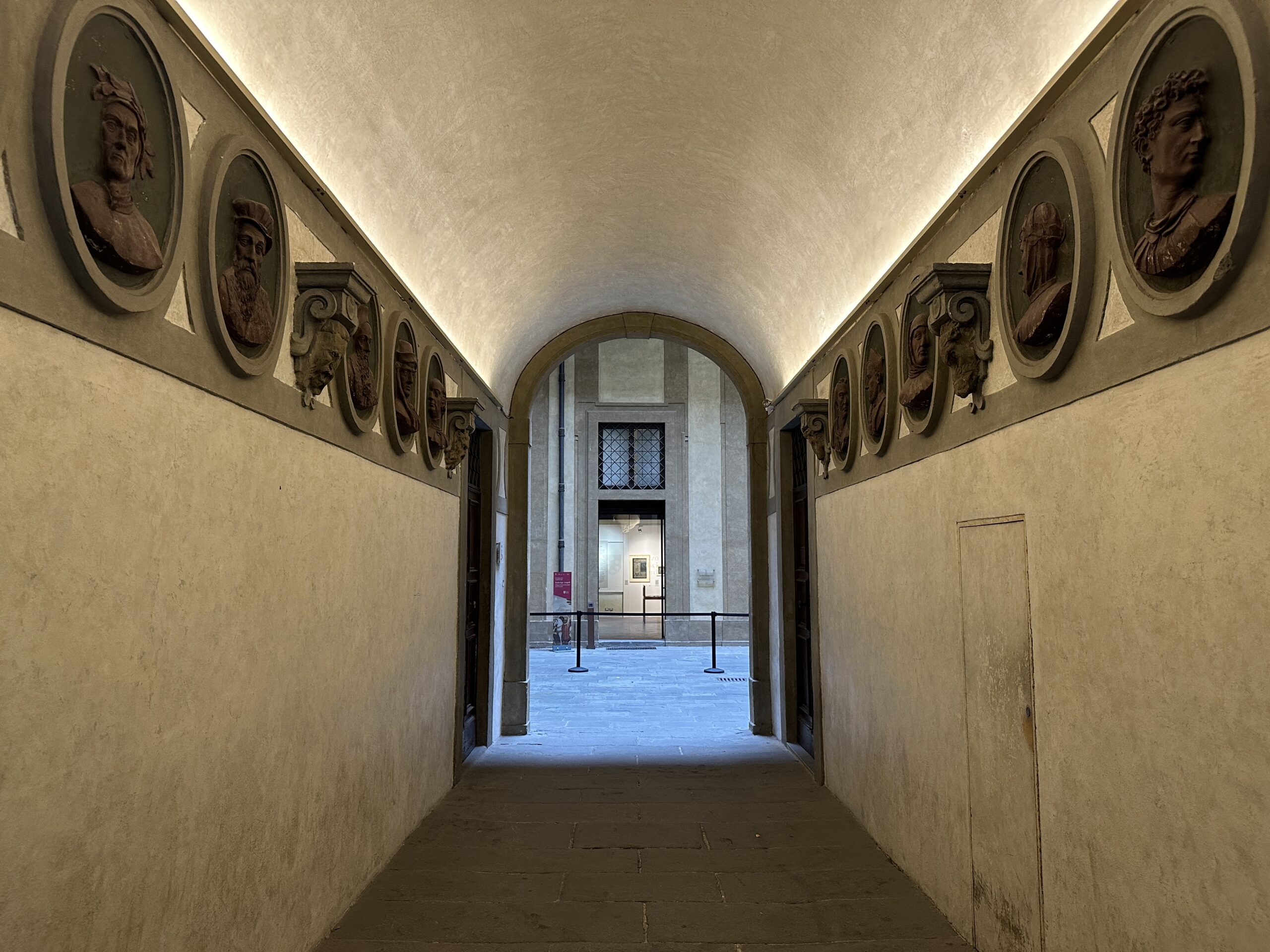 Il palazzo ospita anche piccole mostre temporanee ed uffici della Prefettura. Passeggiando tra le teste in pietra scolpita esposte nel sottosuolo dell’edificio, noto tutti questi volti dalle espressioni cupe, rigide, adombrate e mi domando: come ci sarà rimasto il povero Brunelleschi dopo aver ricevuto la notizia della scelta di un altro progetto?