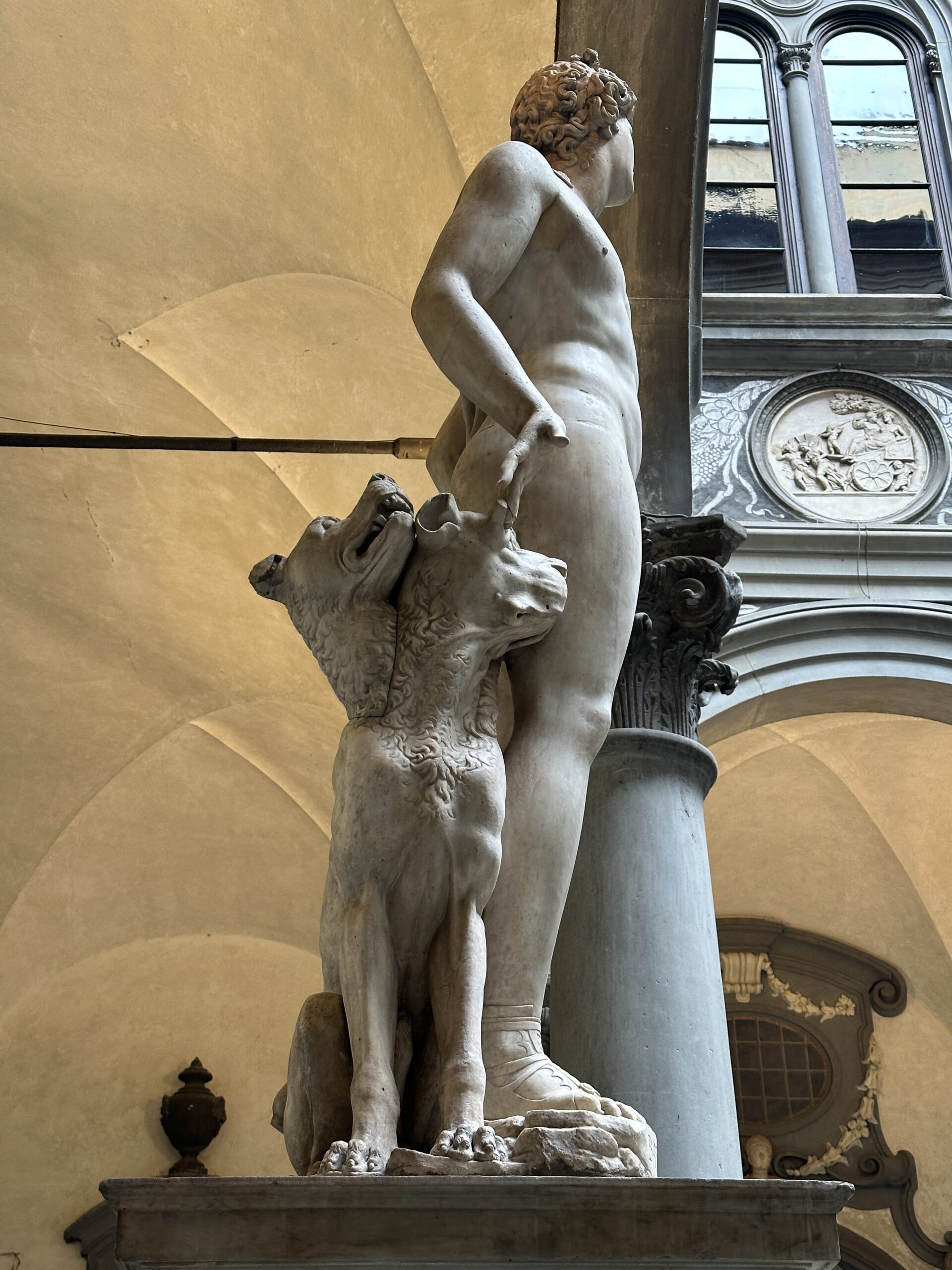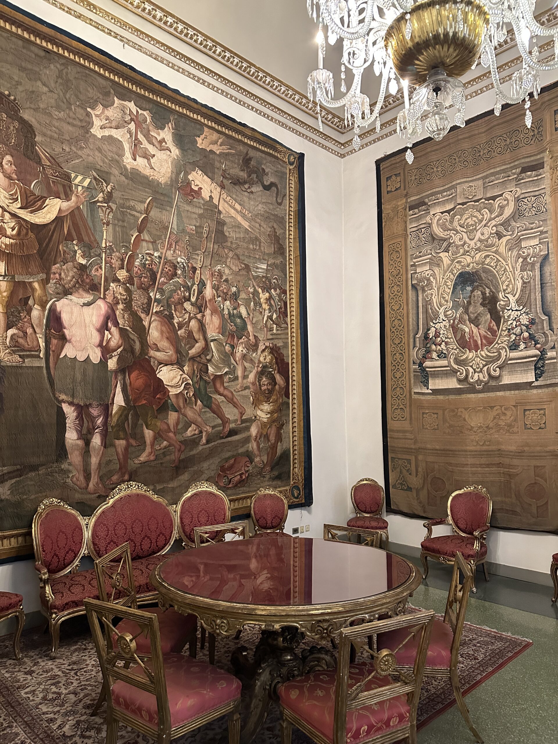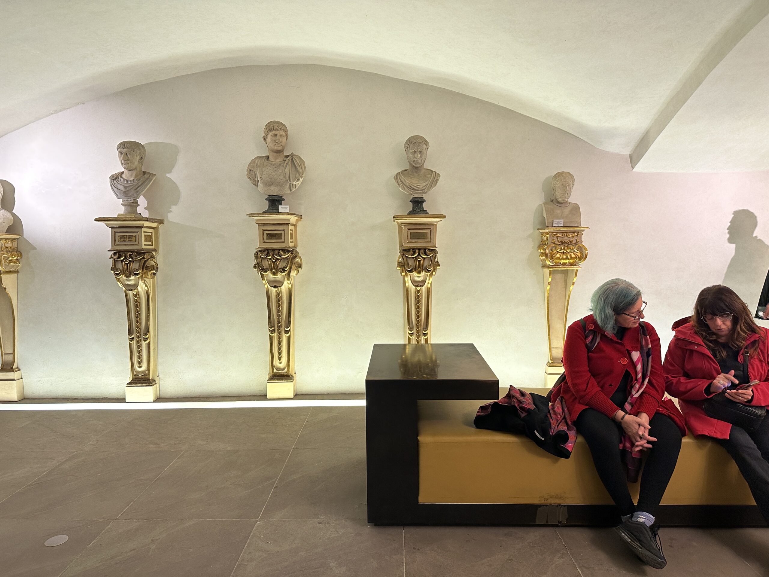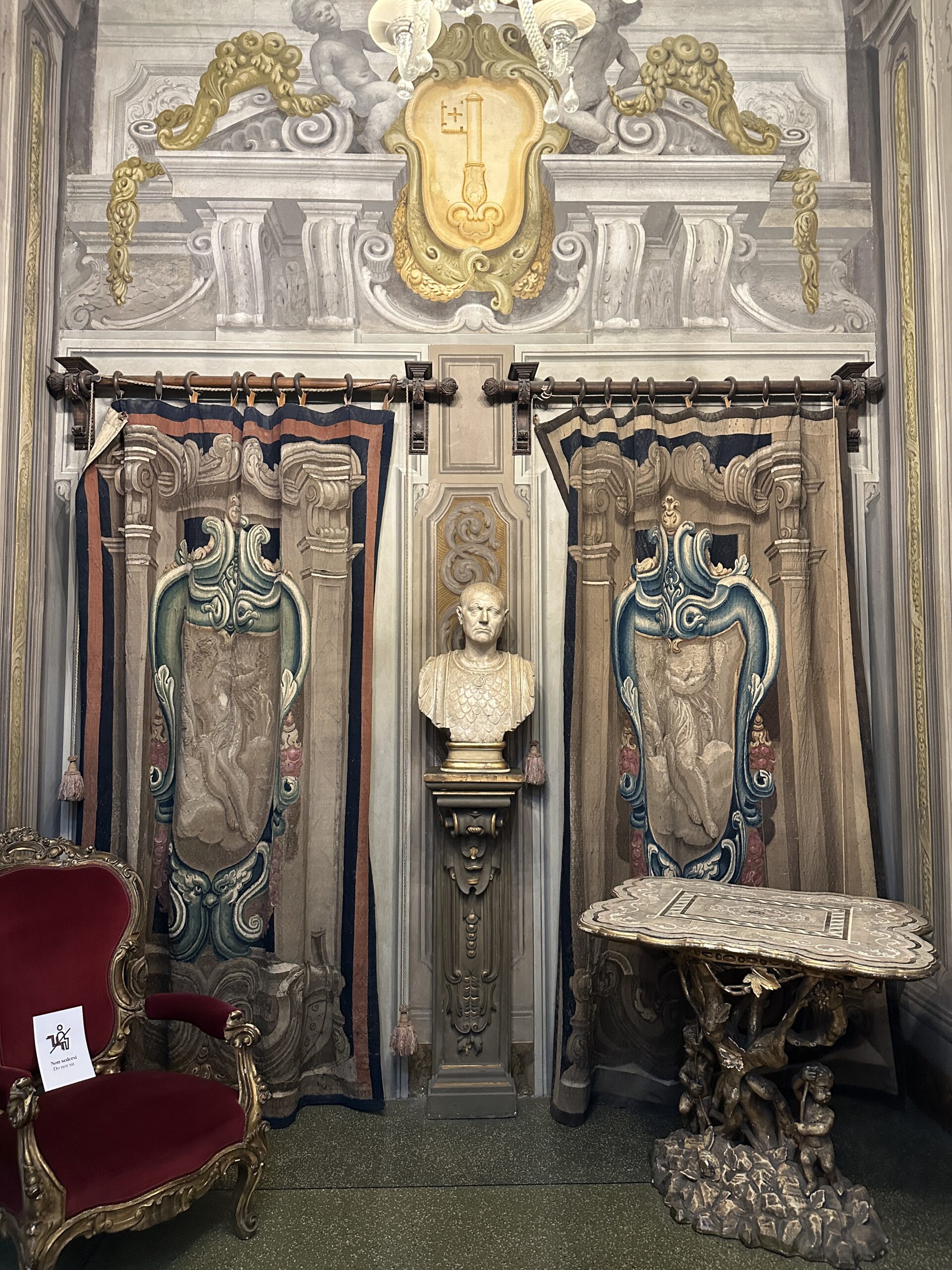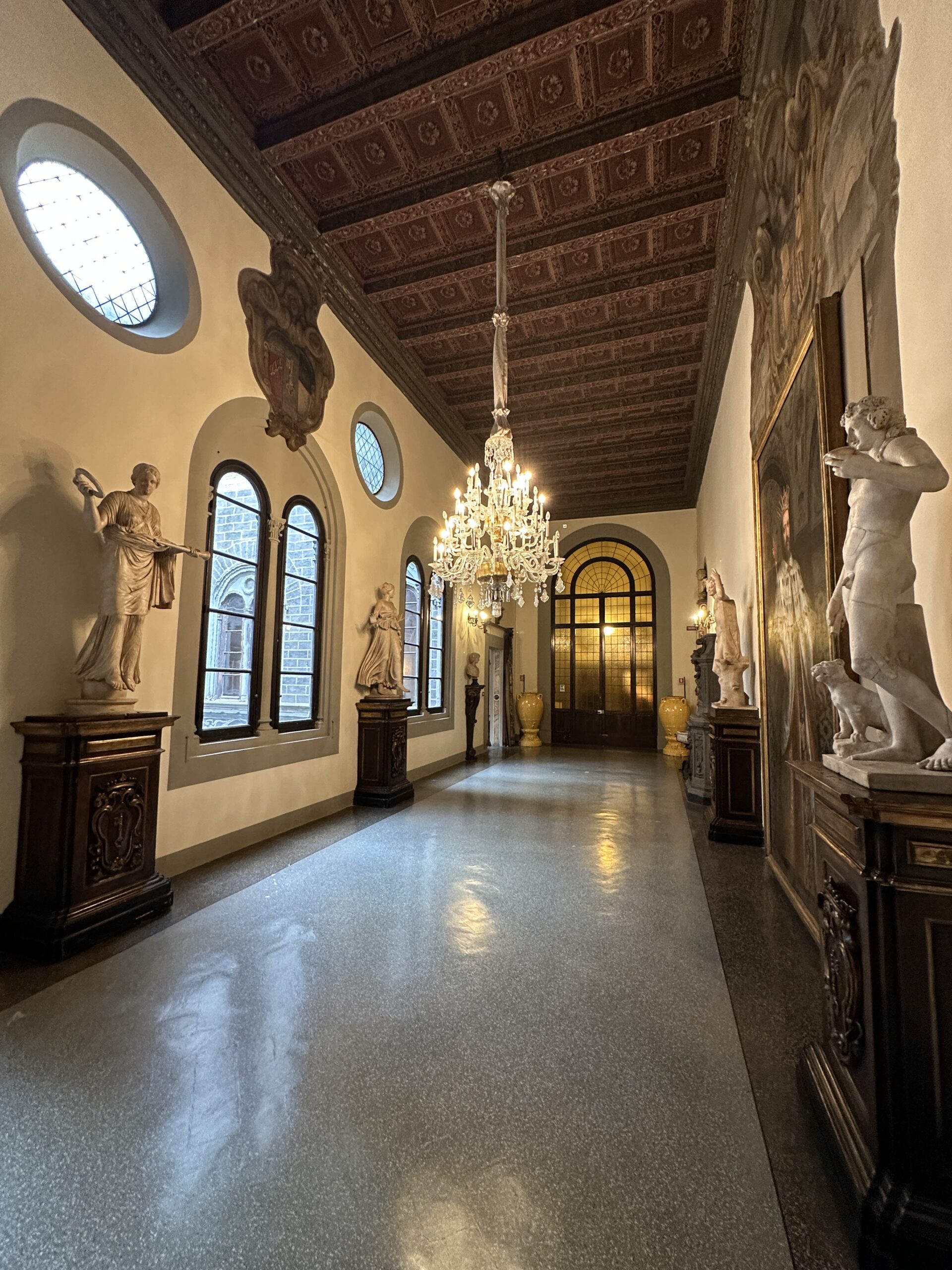 Il palazzo ospita anche piccole mostre temporanee ed uffici della Prefettura. Passeggiando tra le teste in pietra scolpita esposte nel sottosuolo dell’edificio, noto tutti questi volti dalle espressioni cupe, rigide, adombrate e mi domando: come ci sarà rimasto il povero Brunelleschi dopo aver ricevuto la notizia della scelta di un altro progetto?