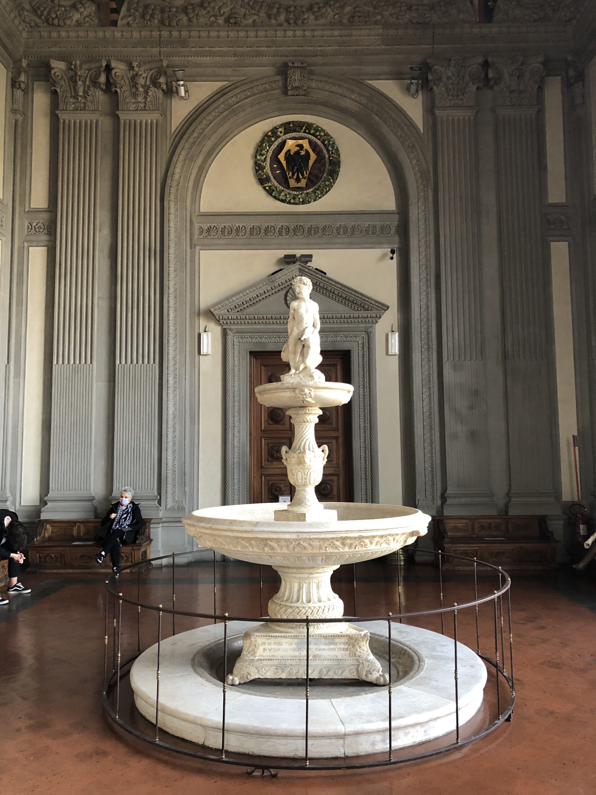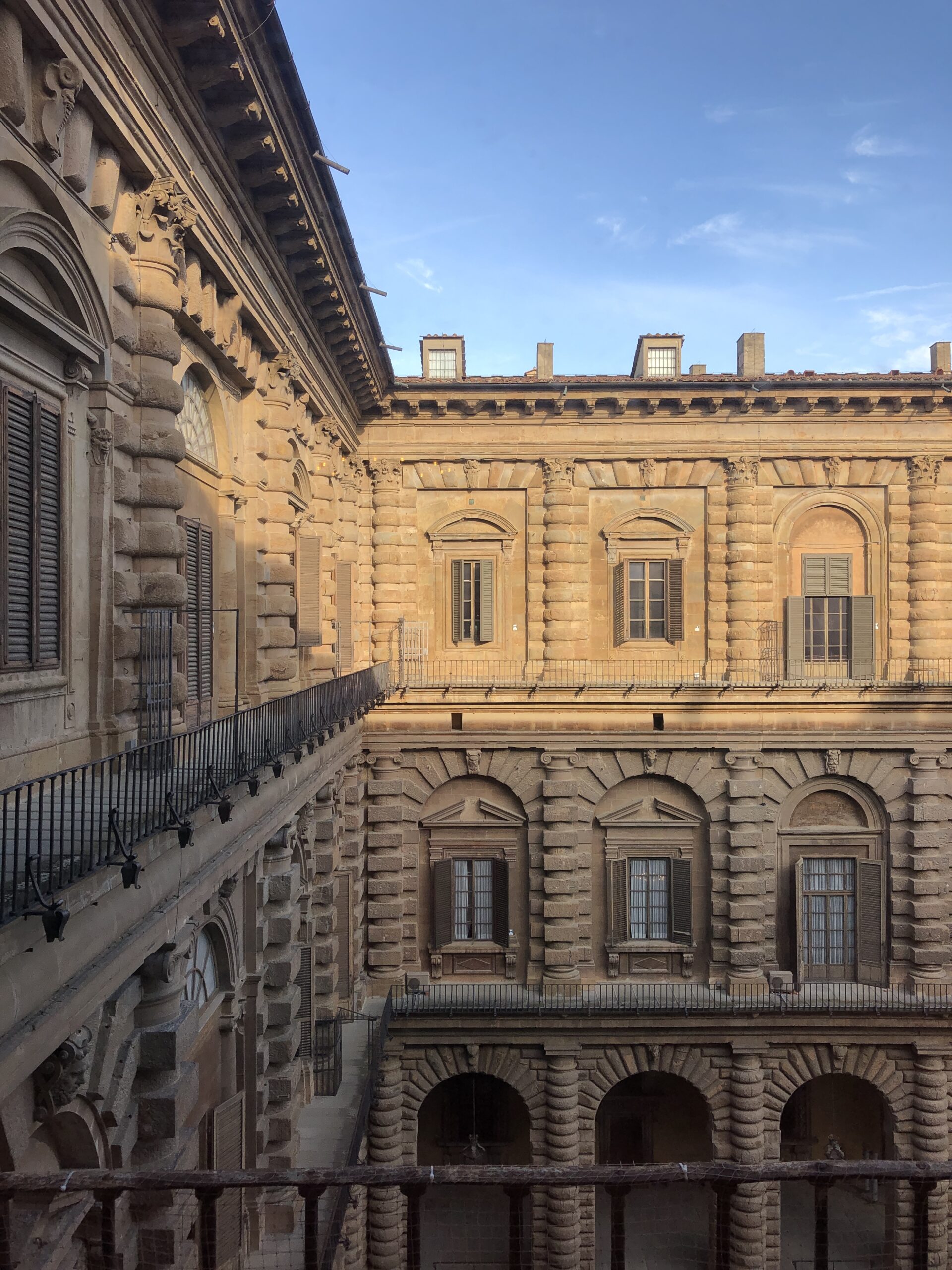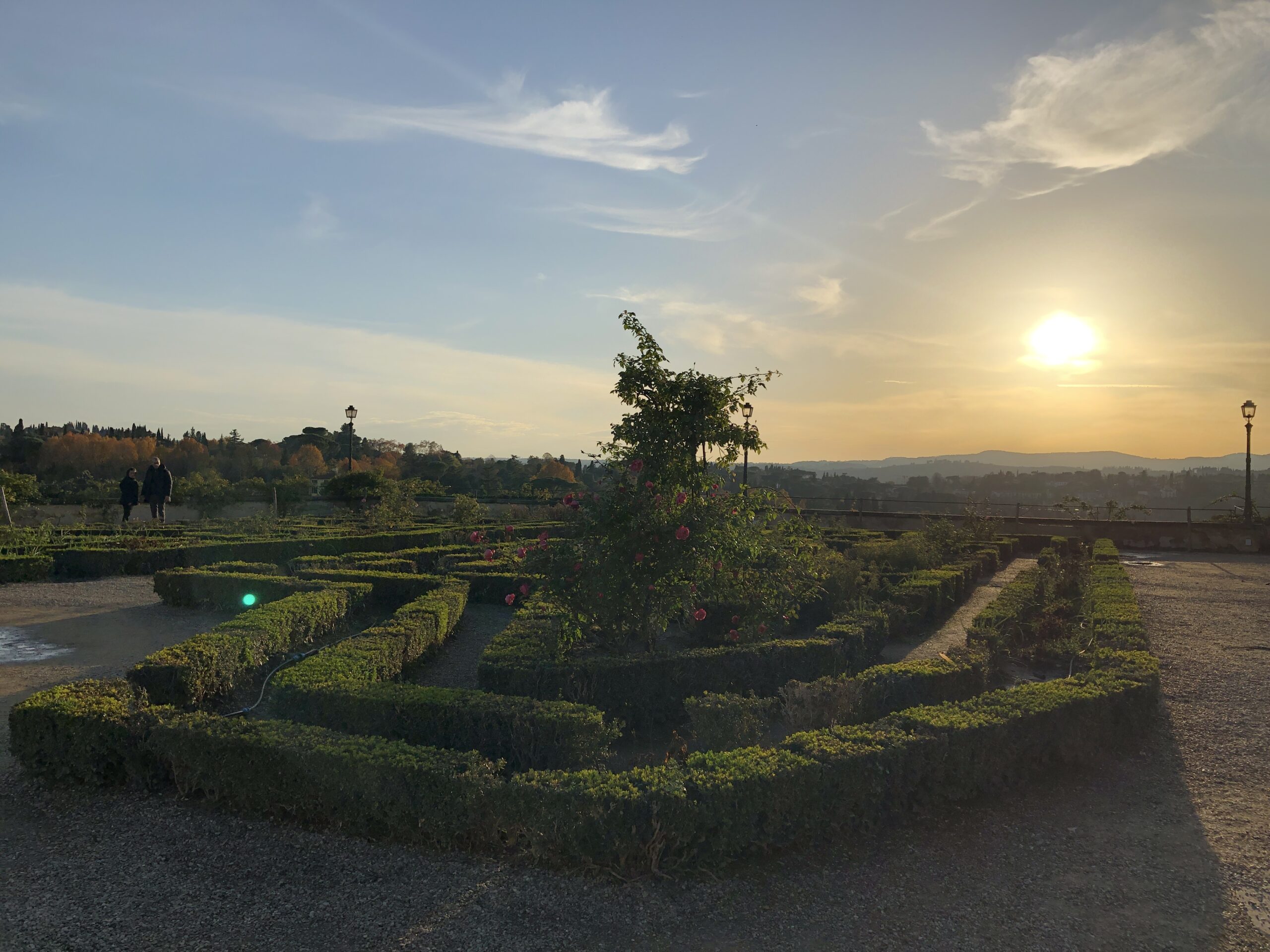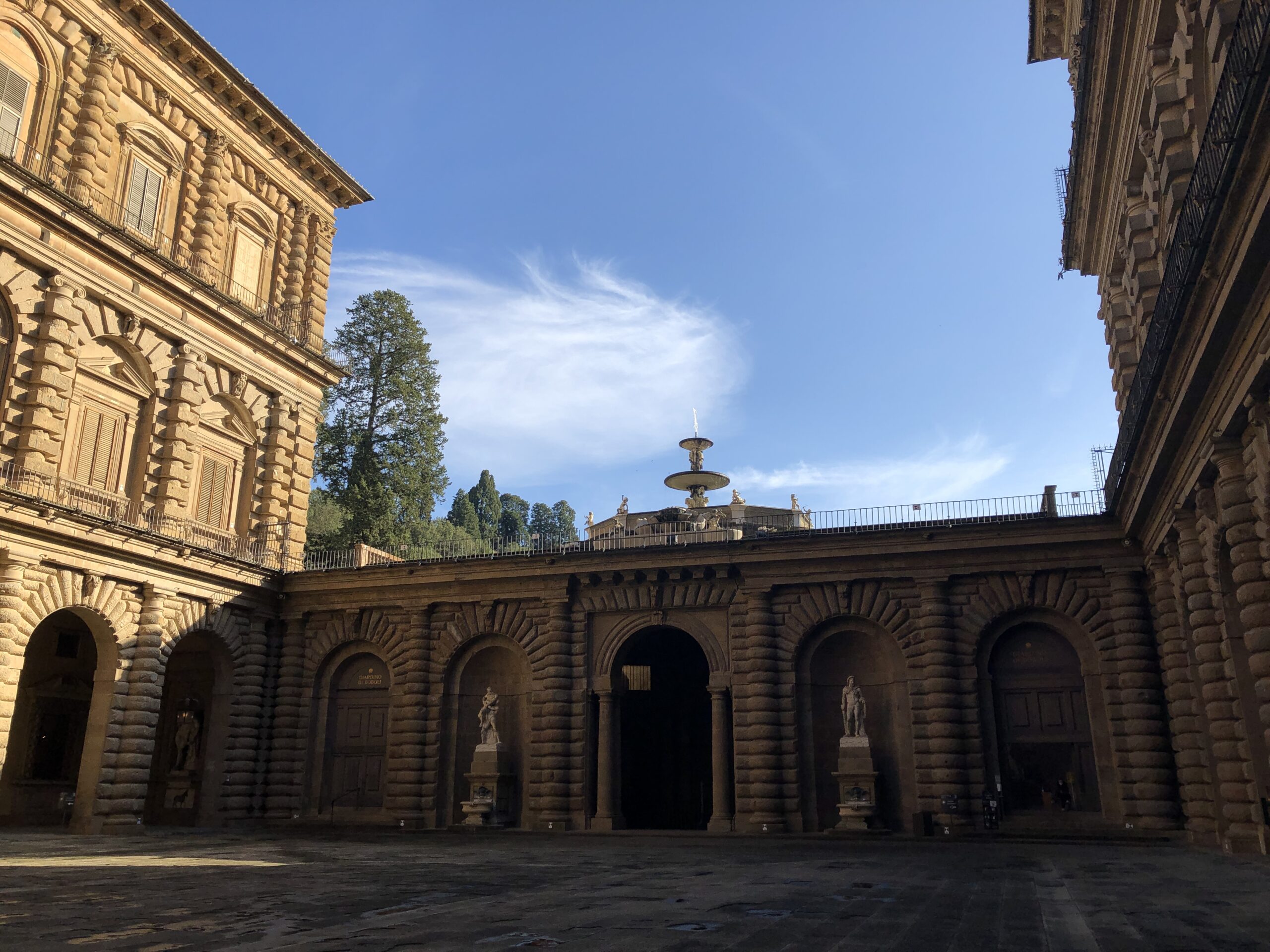 Il giardino di Boboli è esteso per questo so già che non riuscirò a vederne nemmeno la metà ma (detto in confidenza) non mi è mai piaciuto perciò non me ne cruccio. Corro su per le scalinate che si allontanano dal palazzo attraversando il piccolo anfiteatro e aggirando la grande vasca della fontana superiore. In cima c’è una piccola villa dai colori tenui color pastello con un giardino disegnato da bassissime siepi un po’ malconce. La cosa bella di questa terrazza era potersi sporgere un po’ per ammirare Firenze dall’alto e le sue rigogliose colline verdi. Purtroppo, hanno messo una corda lungo tutto il muretto di cinta e, oltre all’estetica del luogo, hanno sciupato anche la magia e la poesia di un panorama perfetto.