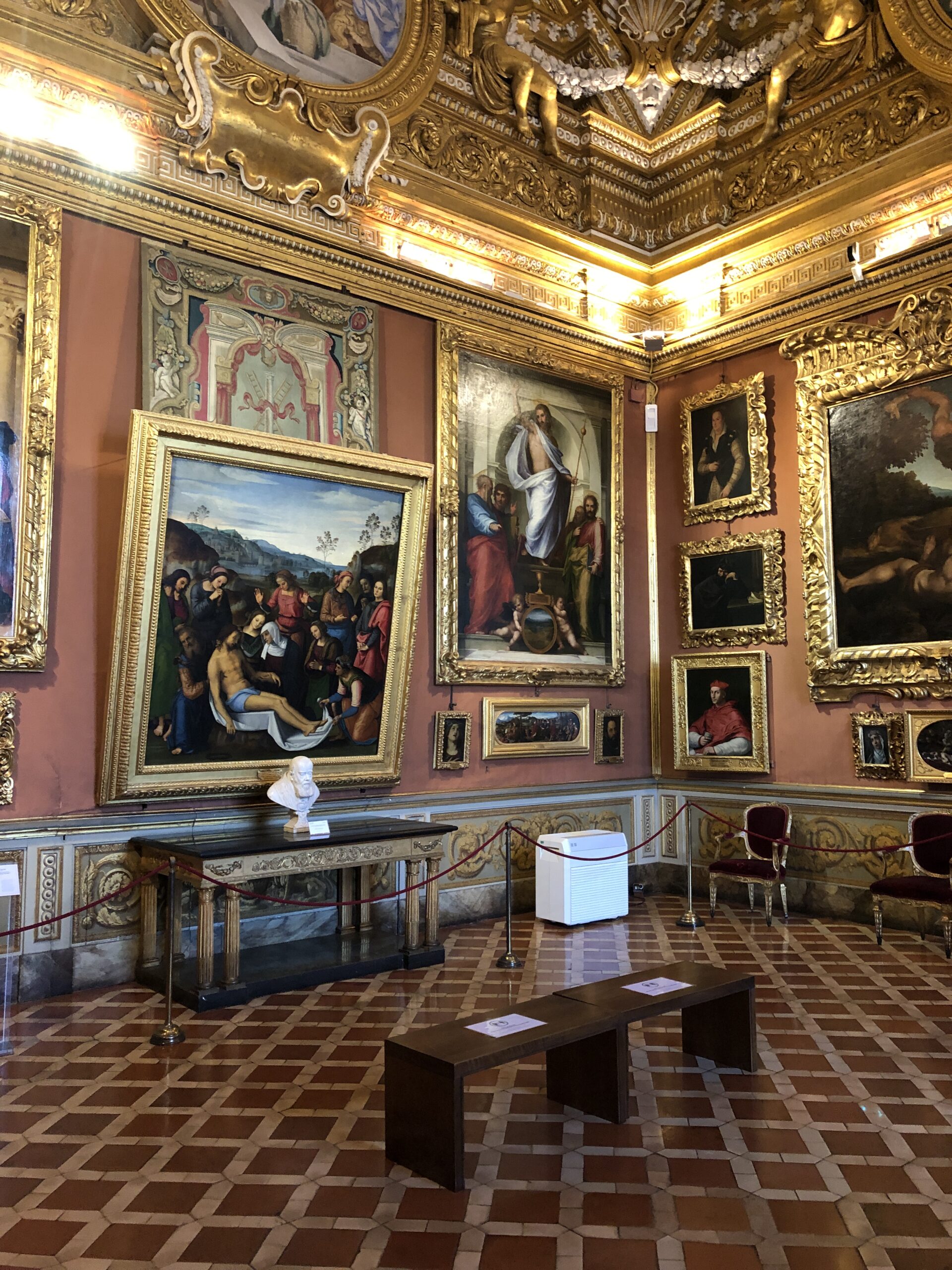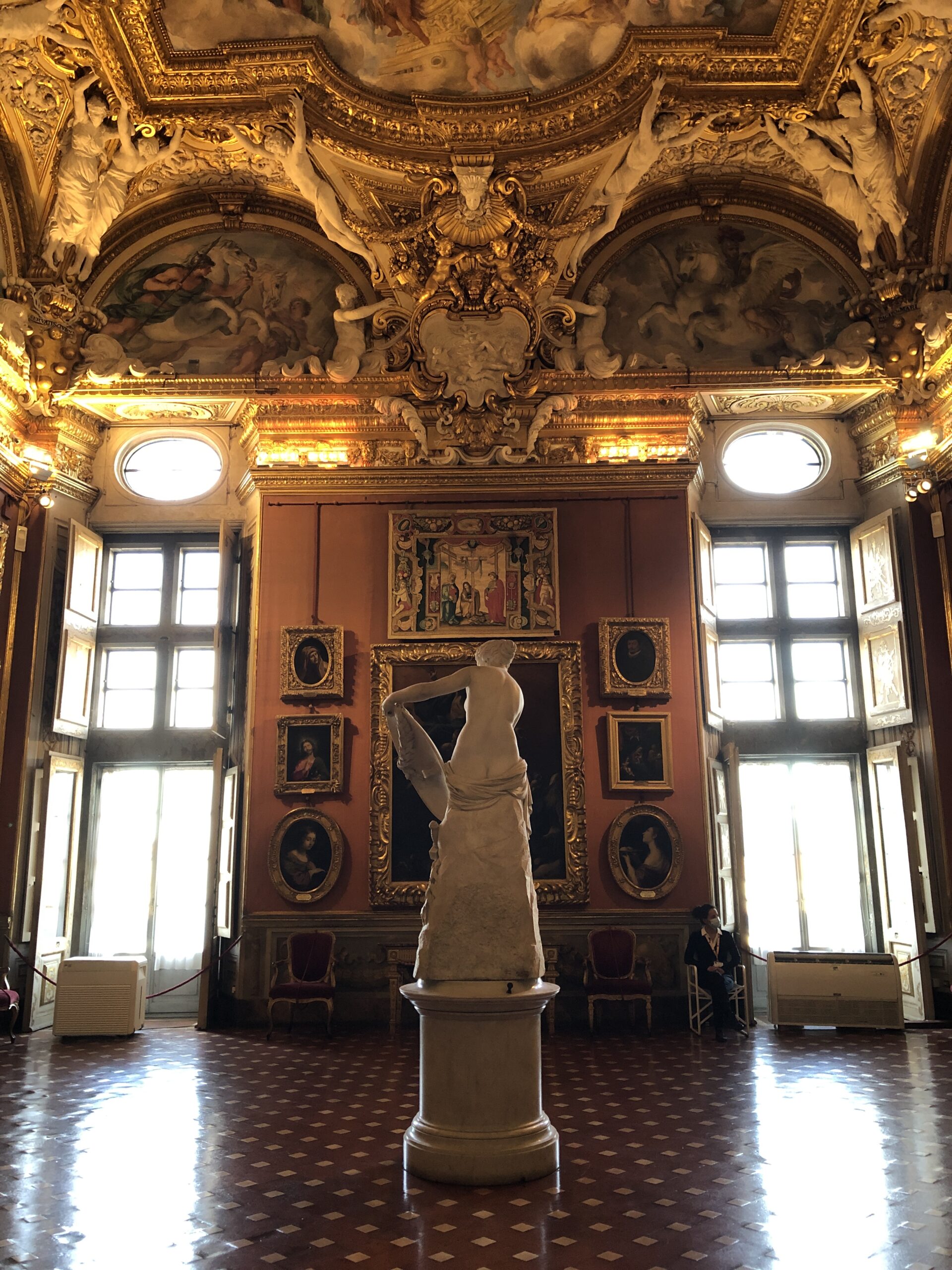 Così tanti quadri meravigliosi da osservare e non si riescono a vedere! Ma possibile che nessuno si sia mai accorto che le luci sono sistemate in maniera inappropriata? Tra i faretti che puntano direttamente sulla tela in maniera trasversale e le enormi finestre aperte, non si riesce nemmeno a capire se si sta guardando il ritratto di un uomo o di una donna!