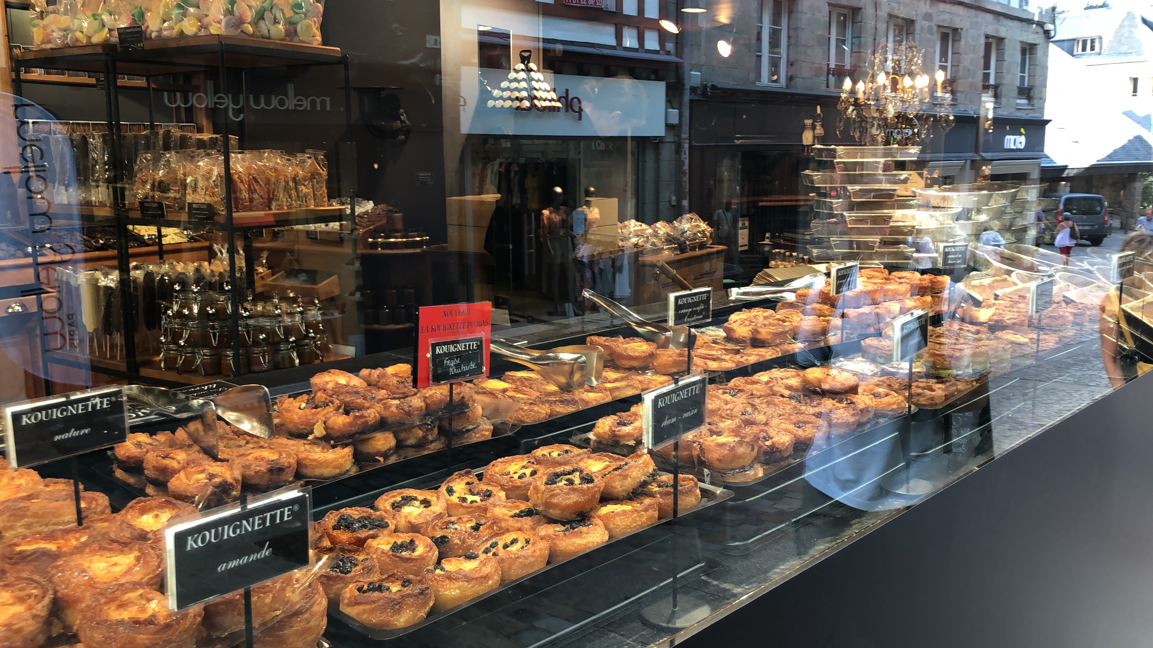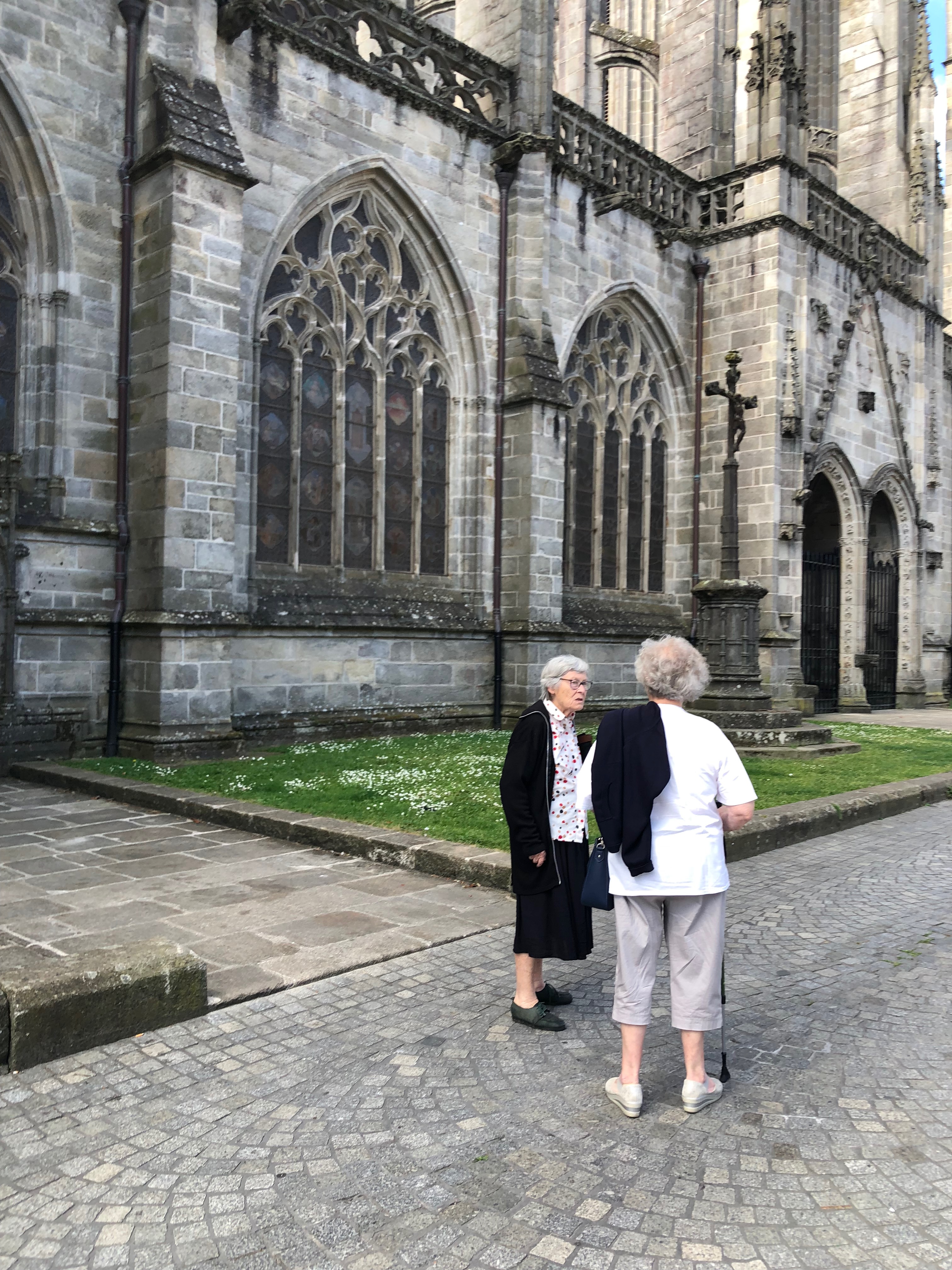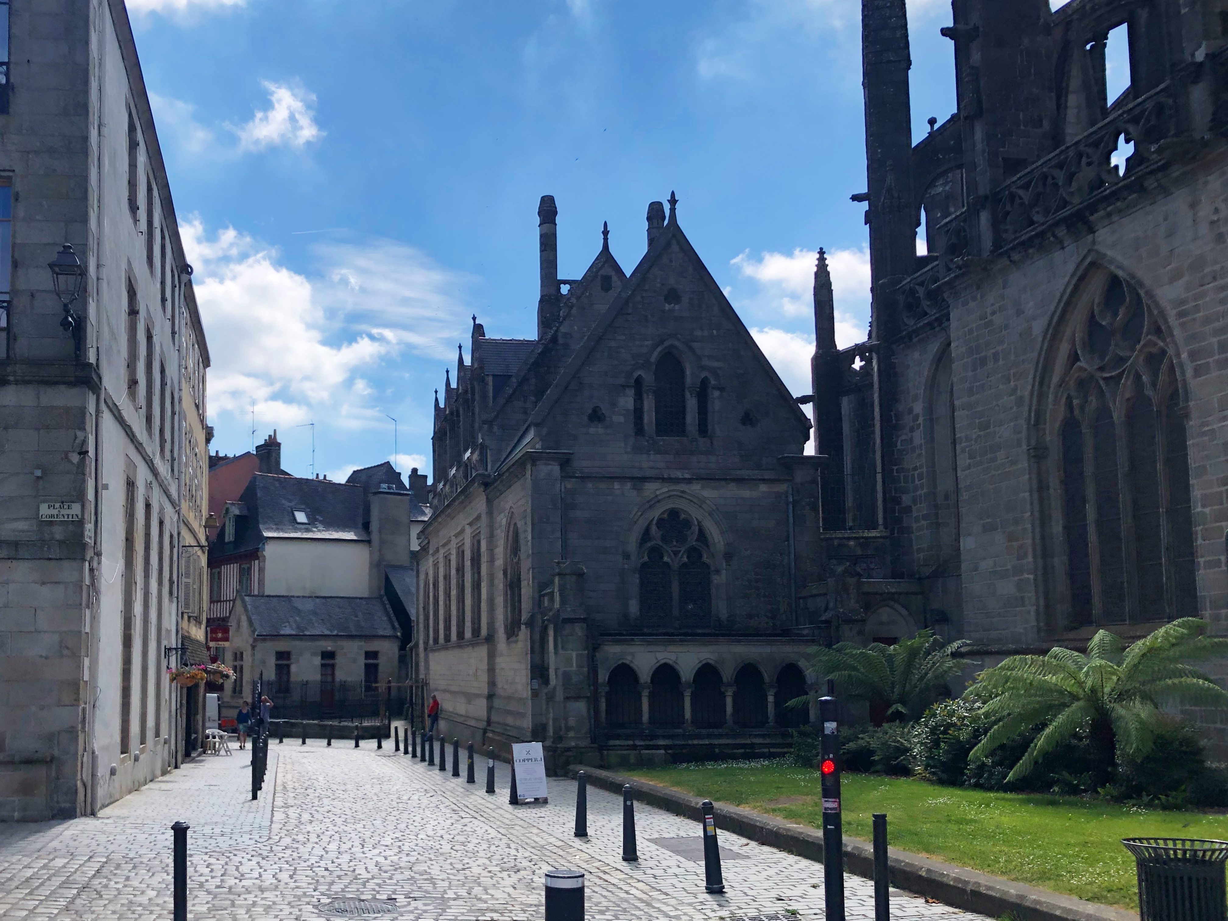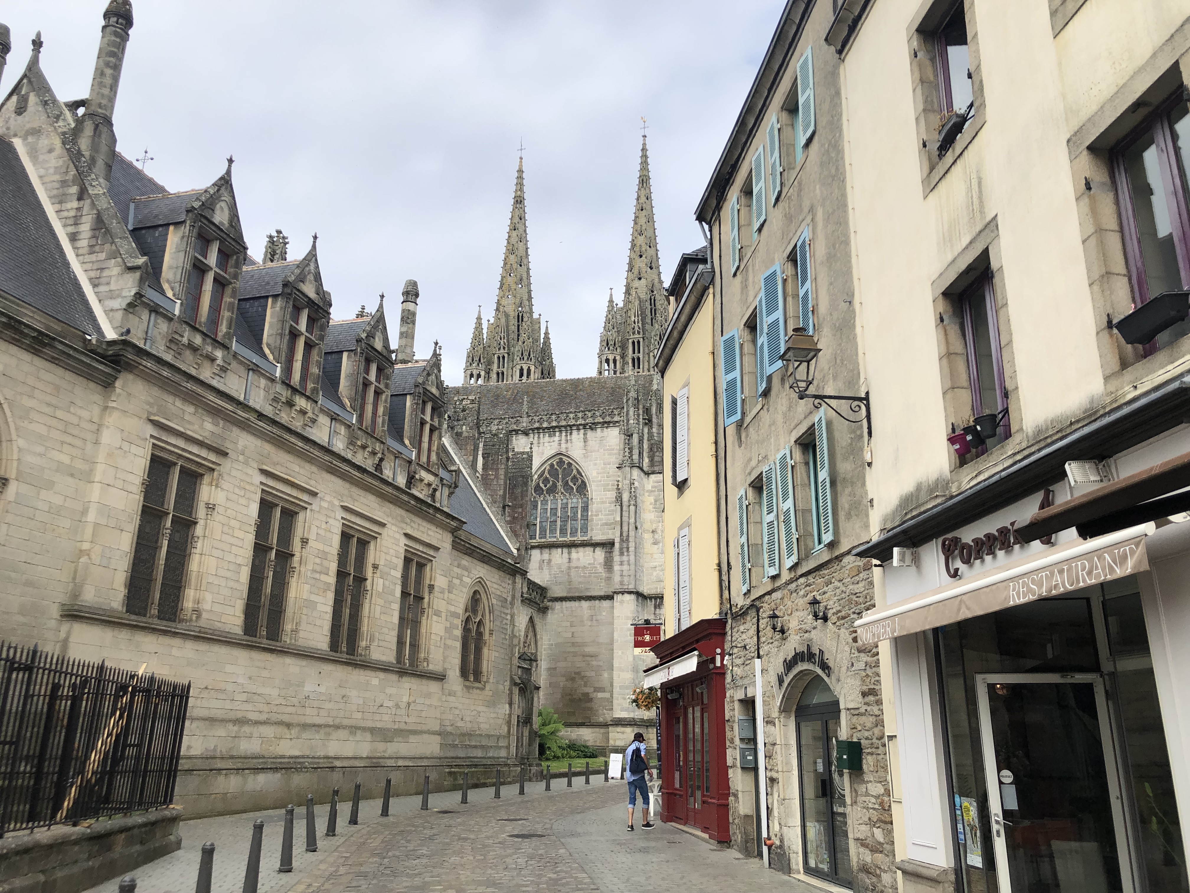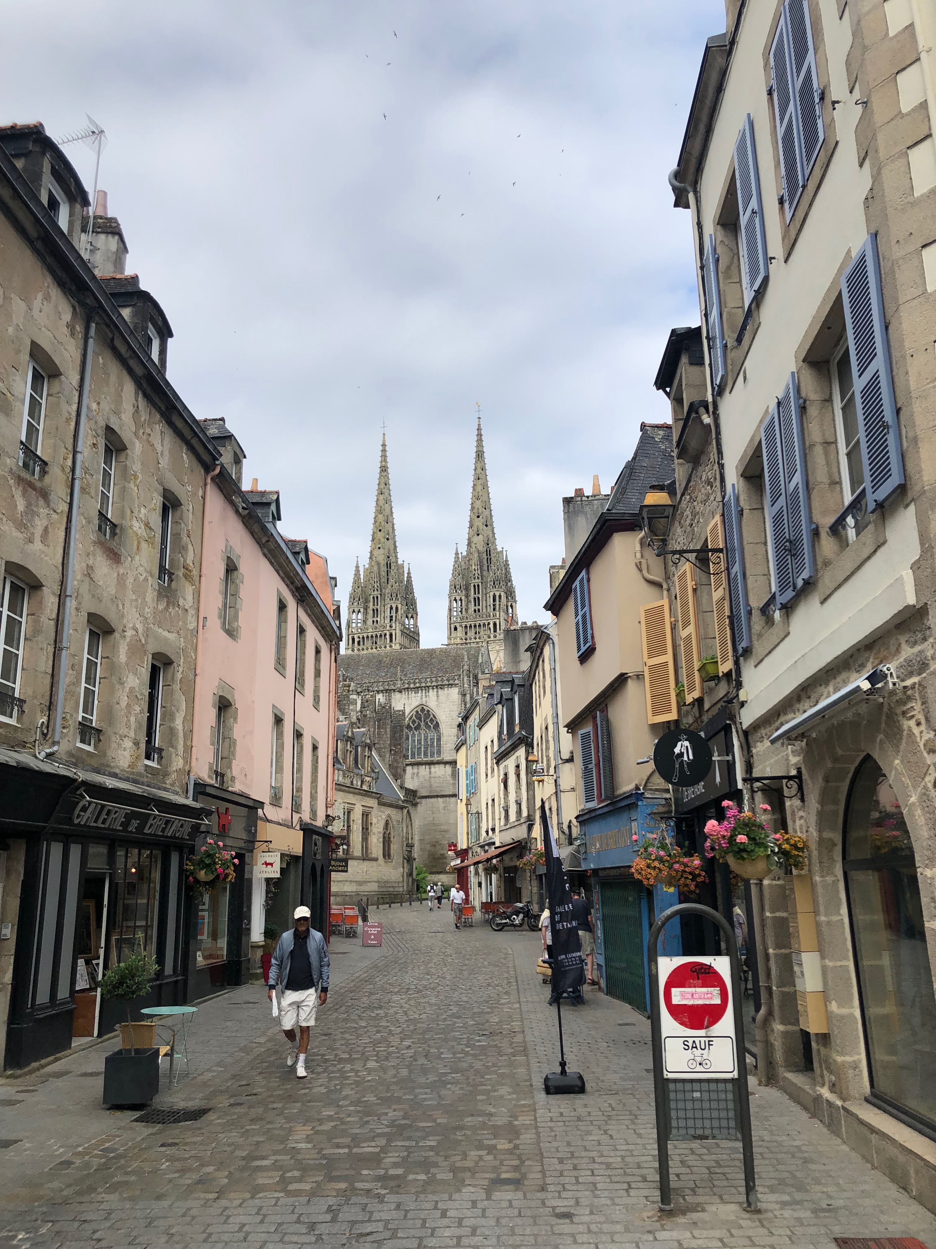 Sto pensando in pasticcerese, devo distrarmi in qualche modo. Getto lo sguardo lassù, in alto, sulla punta delle guglie della cattedrale di Saint Corentin, lo lascio lì per un po’ per non essere nuovamente travolta dalle emozioni e dagli zuccheri.
