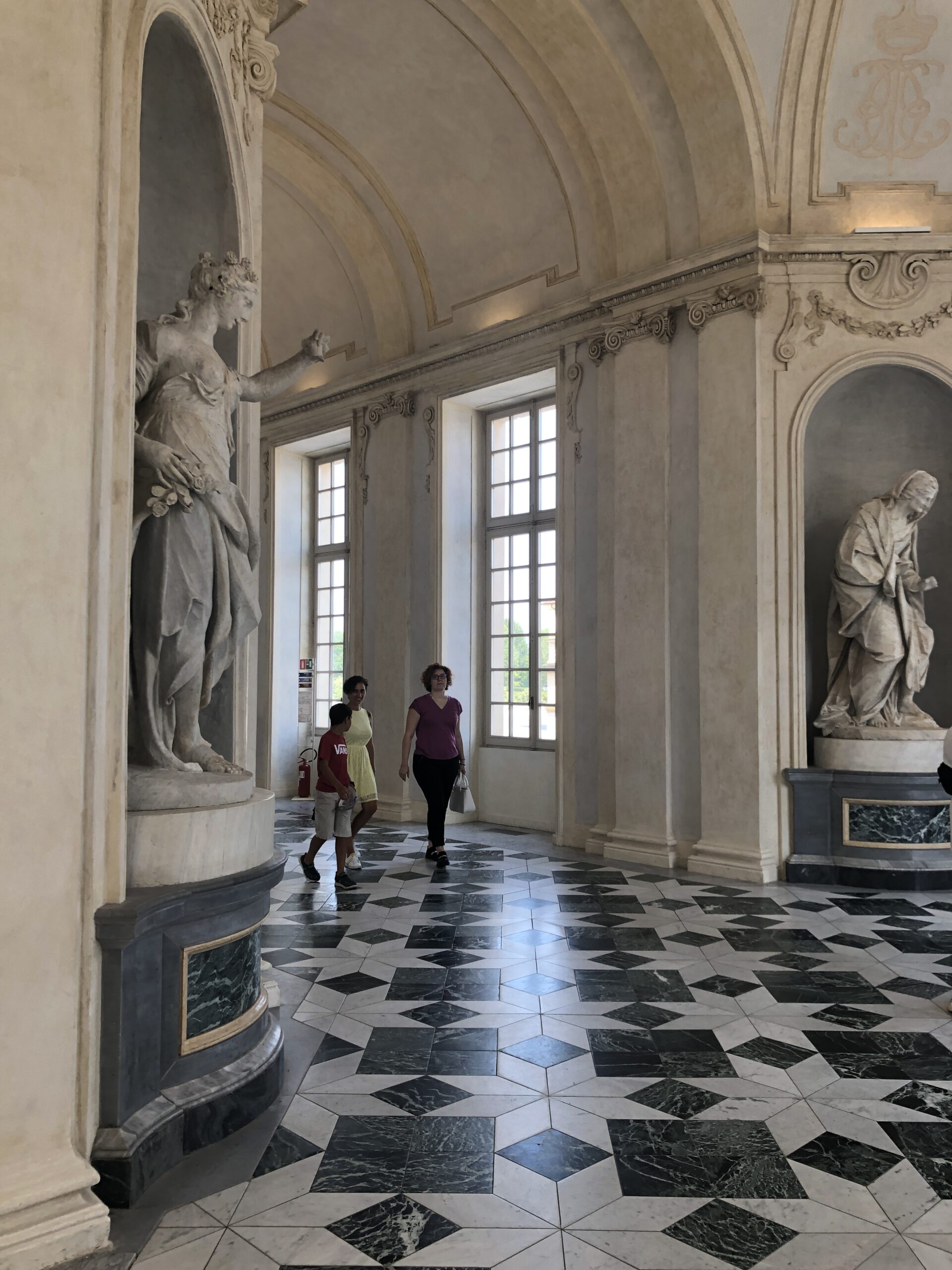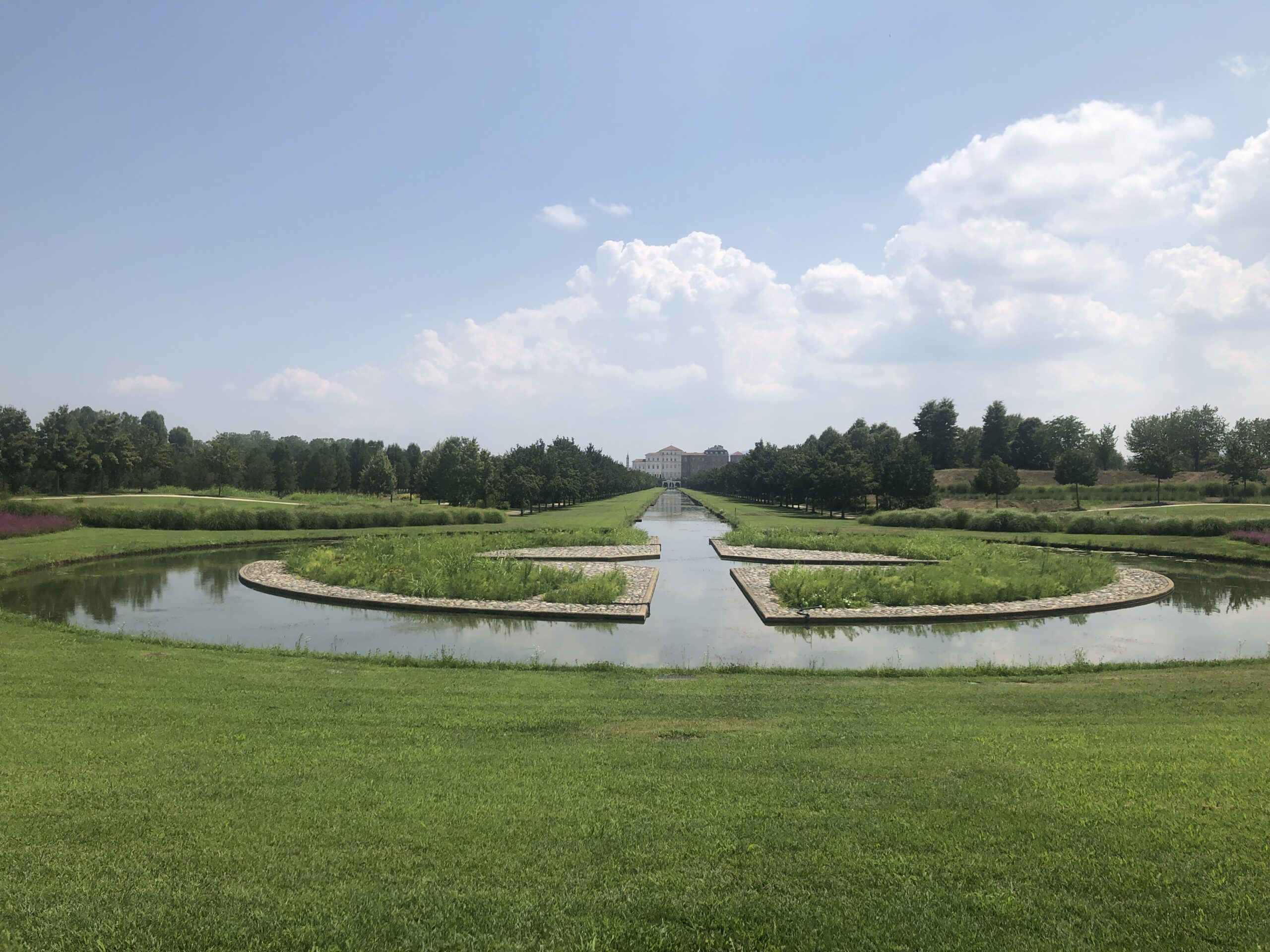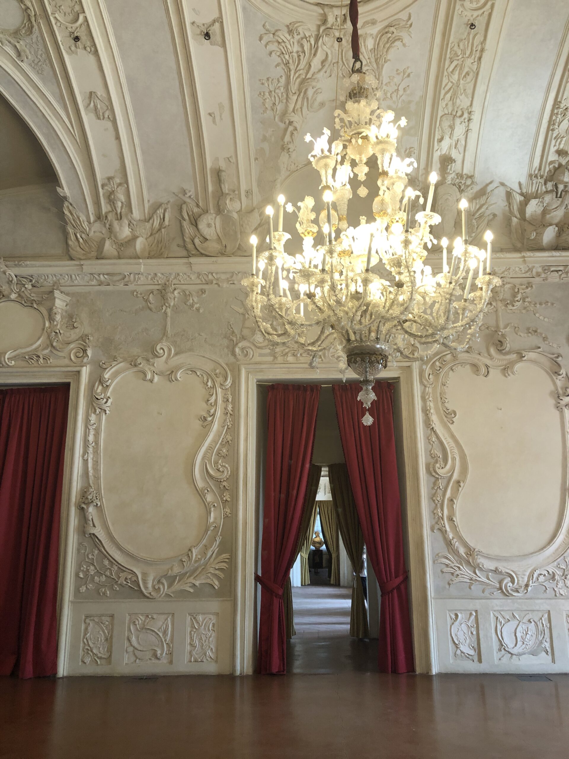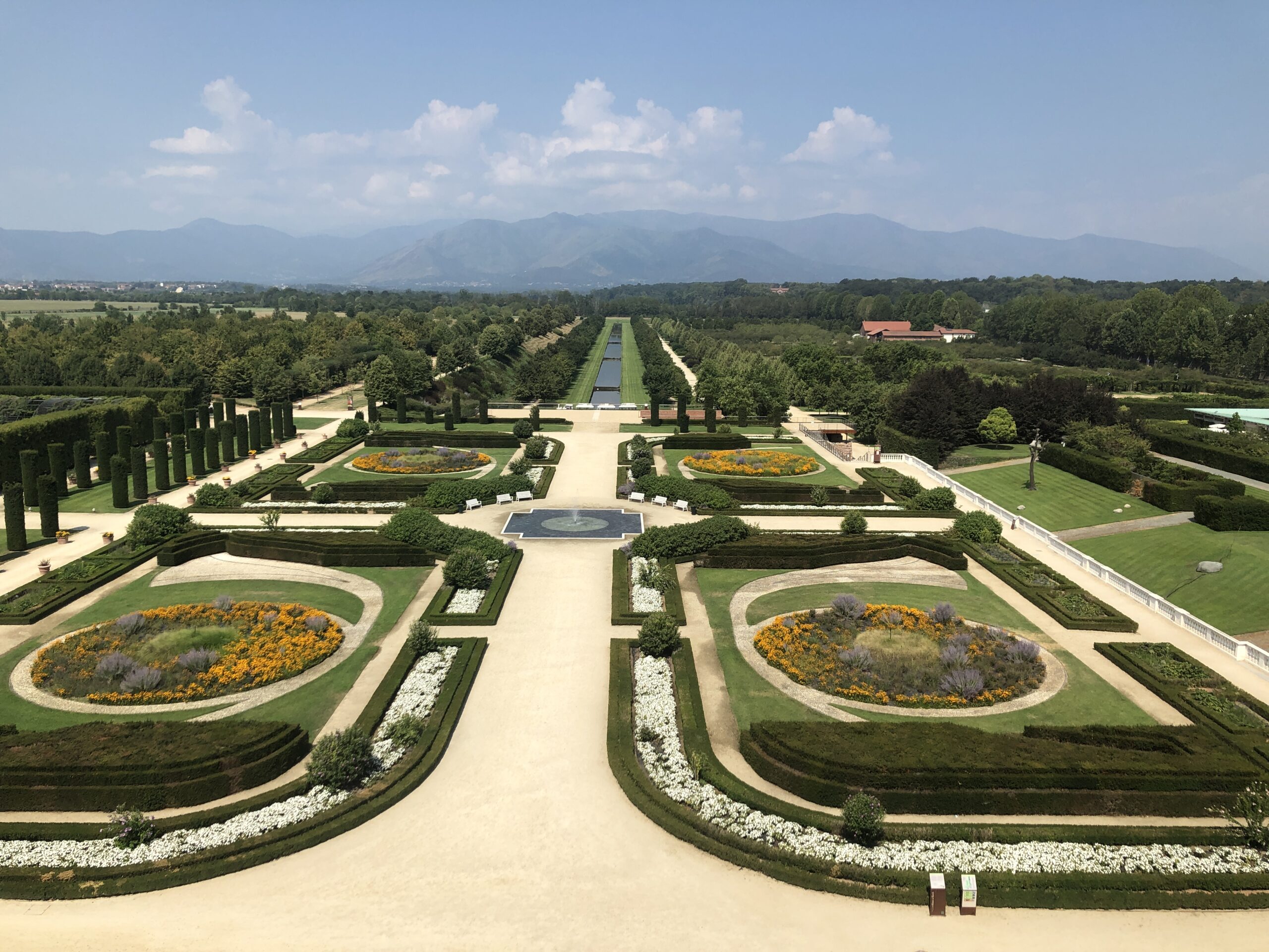 Le stanze arredate hanno un’abbondanza di stucchi bianchi e oro e potrebbero essere la degna copertina della pagina Instagram ‘case pacchiane’. Non ho capito il motivo per cui le pareti sono rivestite da tendaggi monocromo. Di una bruttezza unica, l’unico che ci avrà guadagnato da questa scelta sarà stato il tappezziere, non certo l’immagine o il buon gusto. Quando finalmente esco dal palazzo per visitare i giardini, mi sembra di averci passato una vita. Il parco, che nel 2019 è stato proclamato giardino pubblico più bello d’Italia, mi delude un po’. Il caldo ha ingiallito i prati, ci sono poche aiuole in fiore che danno colore all’ambiente, i pavoni sono rinchiusi in una gabbia piuttosto sporca di modeste dimensioni ed il trenino che prendo per poter ammirare il posto nel minor tempo possibile, alza un gran polverone. Nonostante la vastità e la geometricità che si può ammirare dalle finestre alte del palazzo, mi è piaciuto veramente poco.