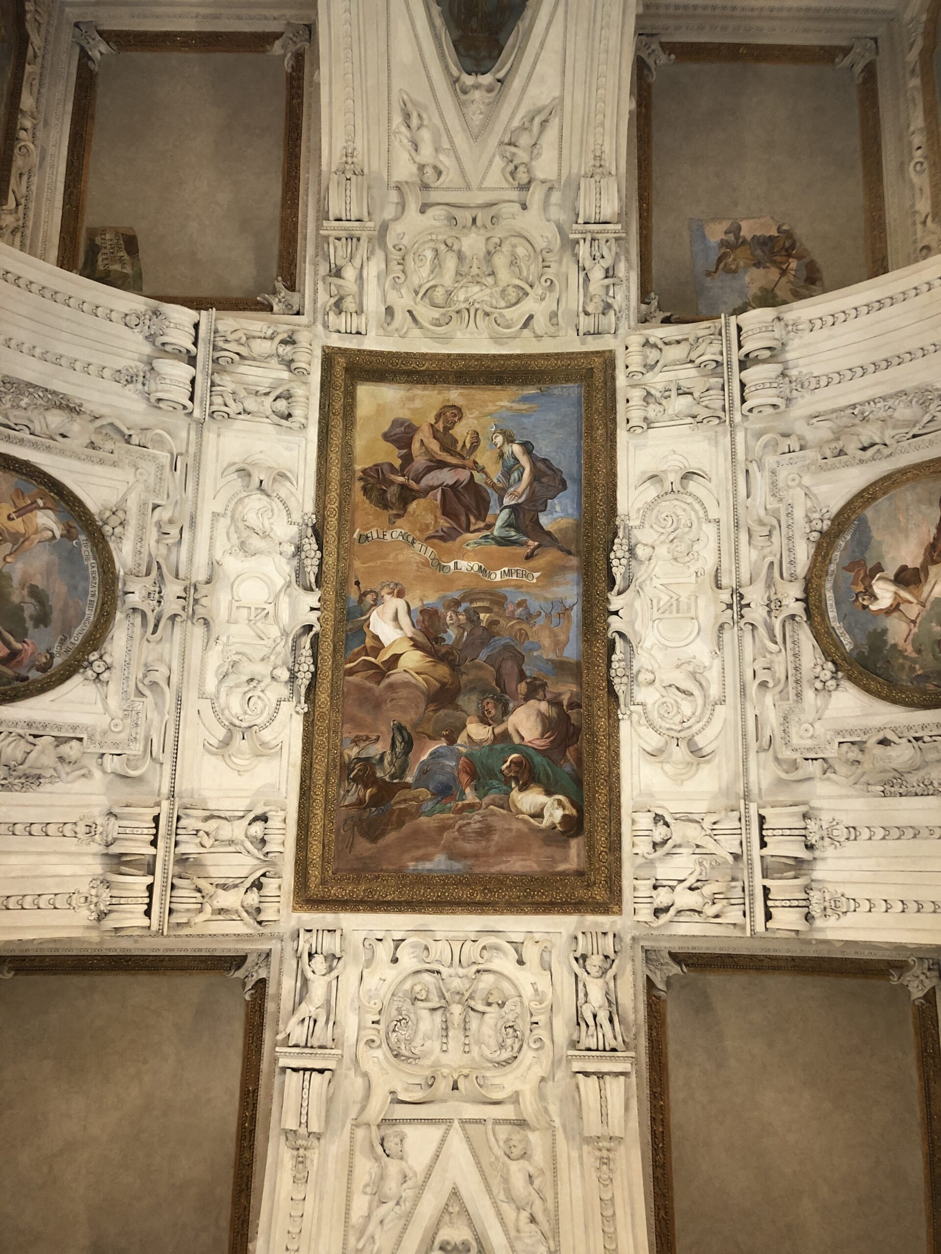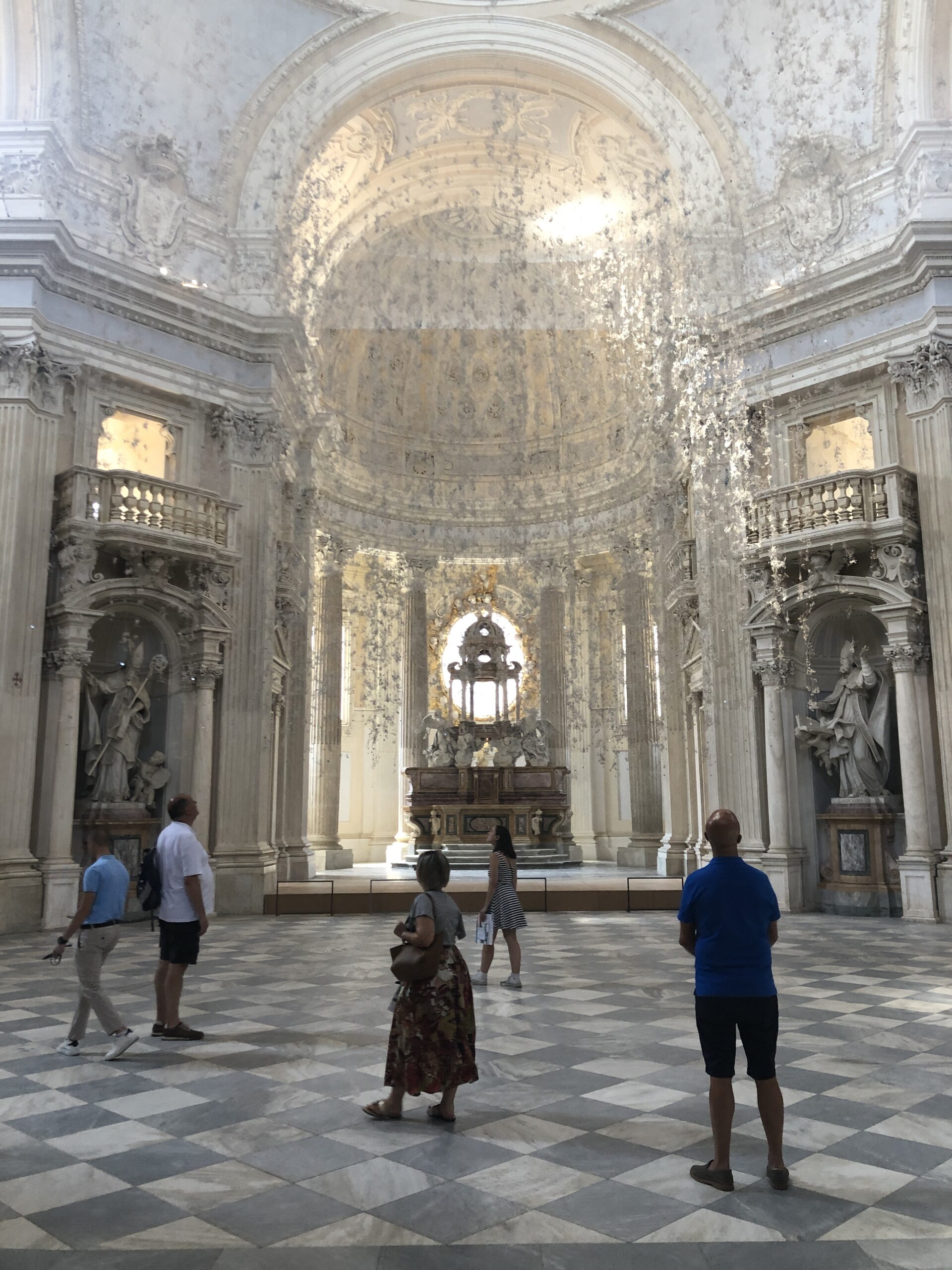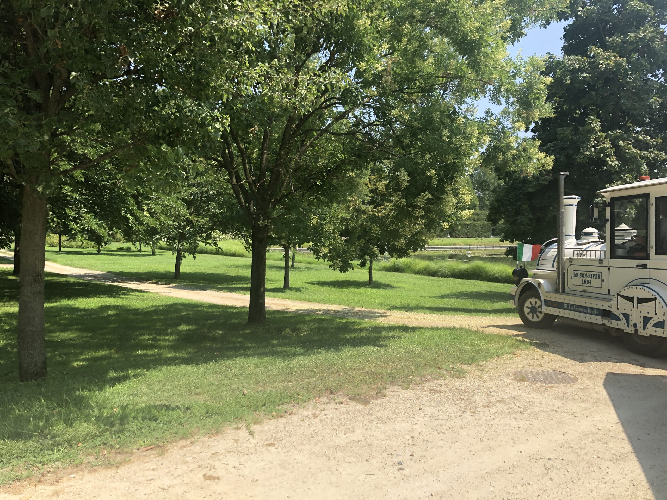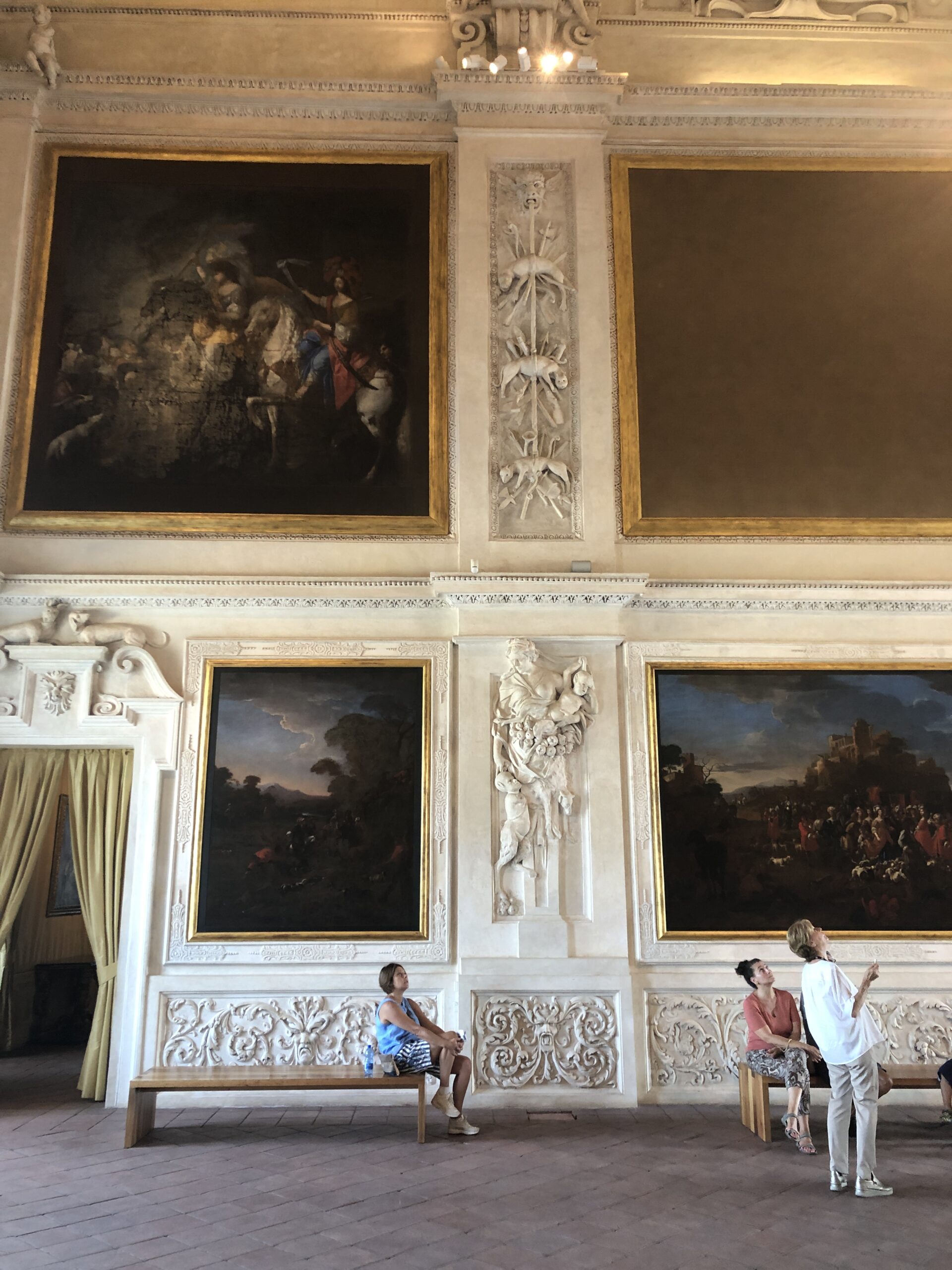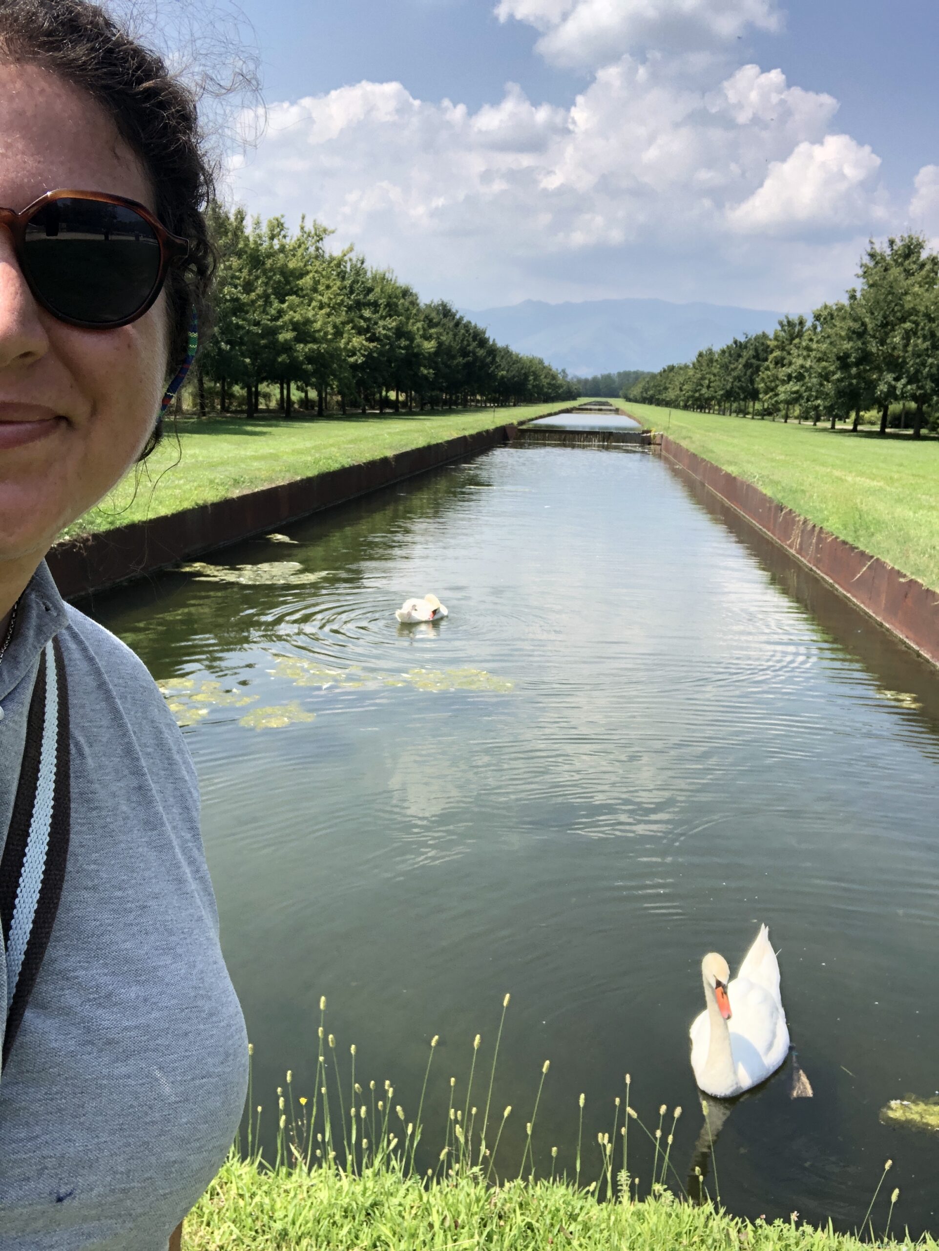 Le stanze arredate hanno un’abbondanza di stucchi bianchi e oro e potrebbero essere la degna copertina della pagina Instagram ‘case pacchiane’. Non ho capito il motivo per cui le pareti sono rivestite da tendaggi monocromo. Di una bruttezza unica, l’unico che ci avrà guadagnato da questa scelta sarà stato il tappezziere, non certo l’immagine o il buon gusto. Quando finalmente esco dal palazzo per visitare i giardini, mi sembra di averci passato una vita. Il parco, che nel 2019 è stato proclamato giardino pubblico più bello d’Italia, mi delude un po’. Il caldo ha ingiallito i prati, ci sono poche aiuole in fiore che danno colore all’ambiente, i pavoni sono rinchiusi in una gabbia piuttosto sporca di modeste dimensioni ed il trenino che prendo per poter ammirare il posto nel minor tempo possibile, alza un gran polverone. Nonostante la vastità e la geometricità che si può ammirare dalle finestre alte del palazzo, mi è piaciuto veramente poco.