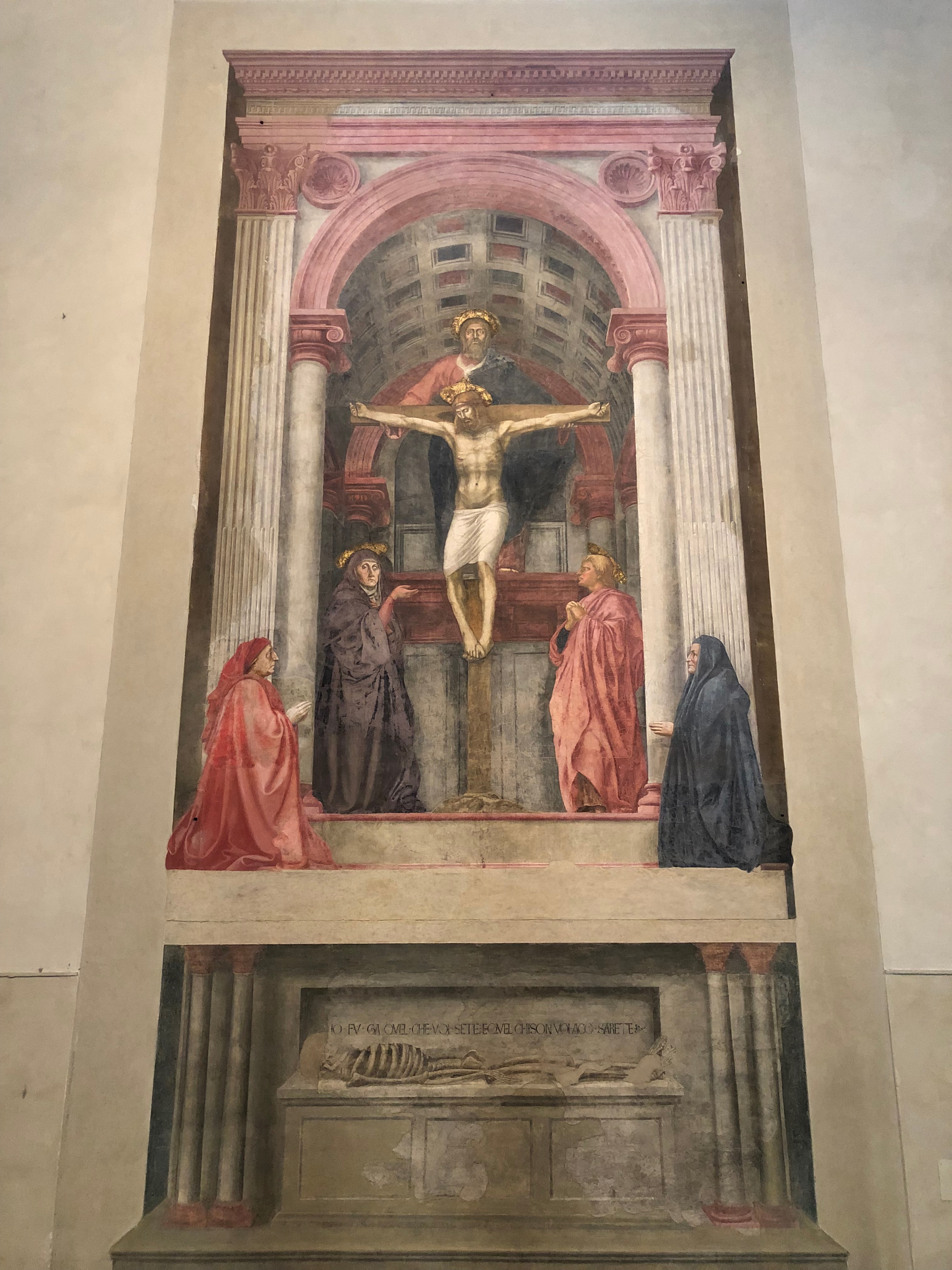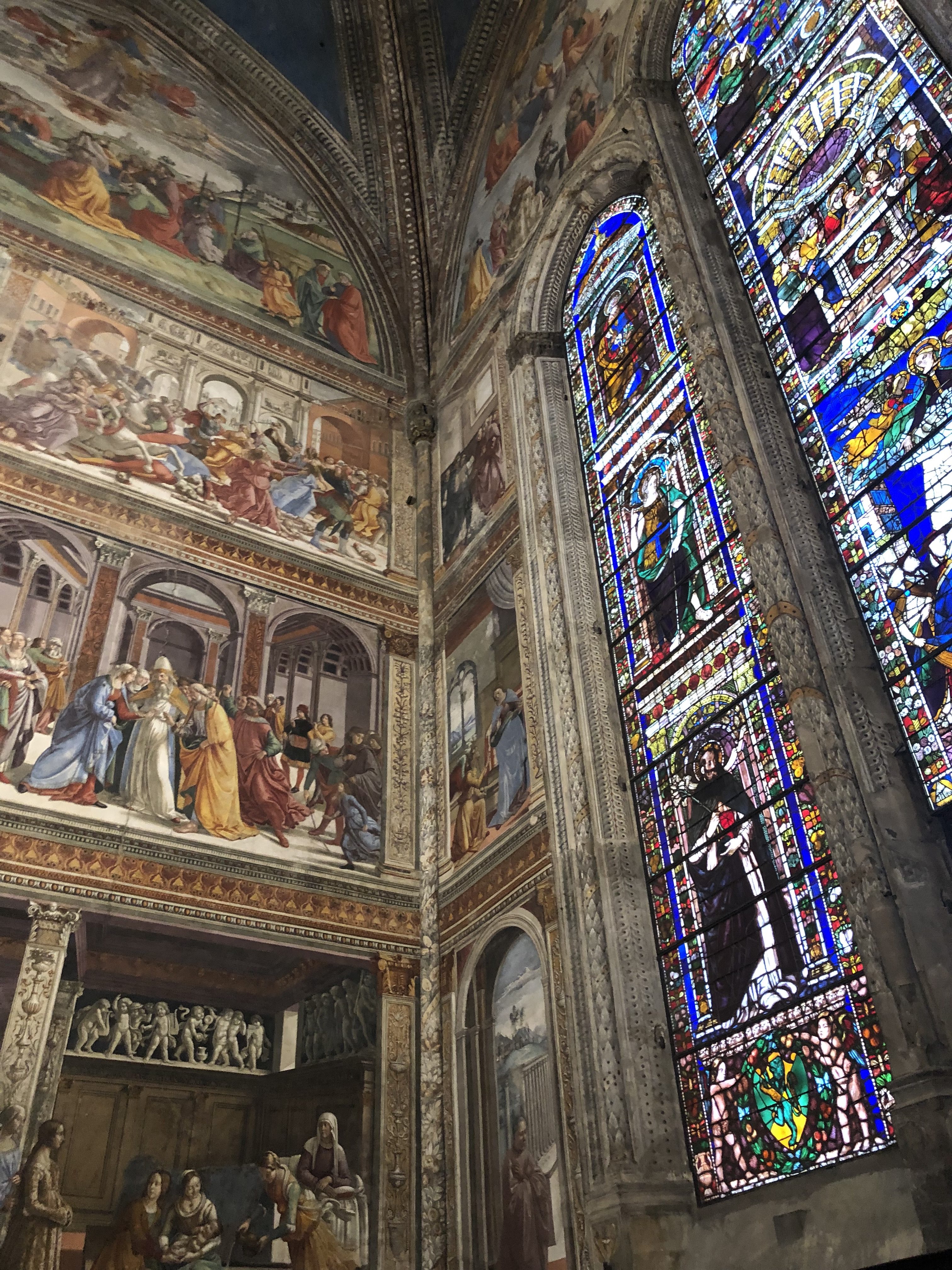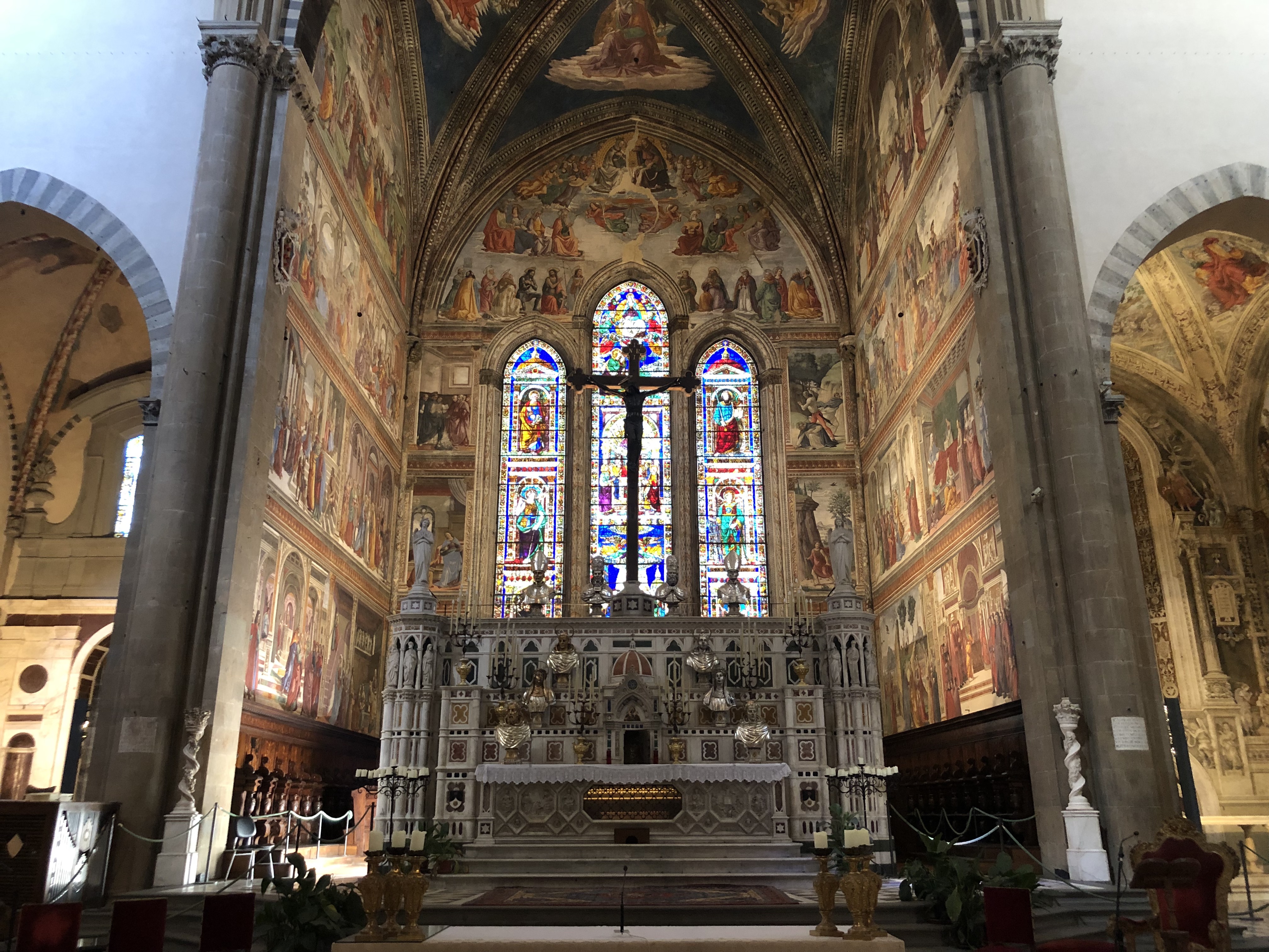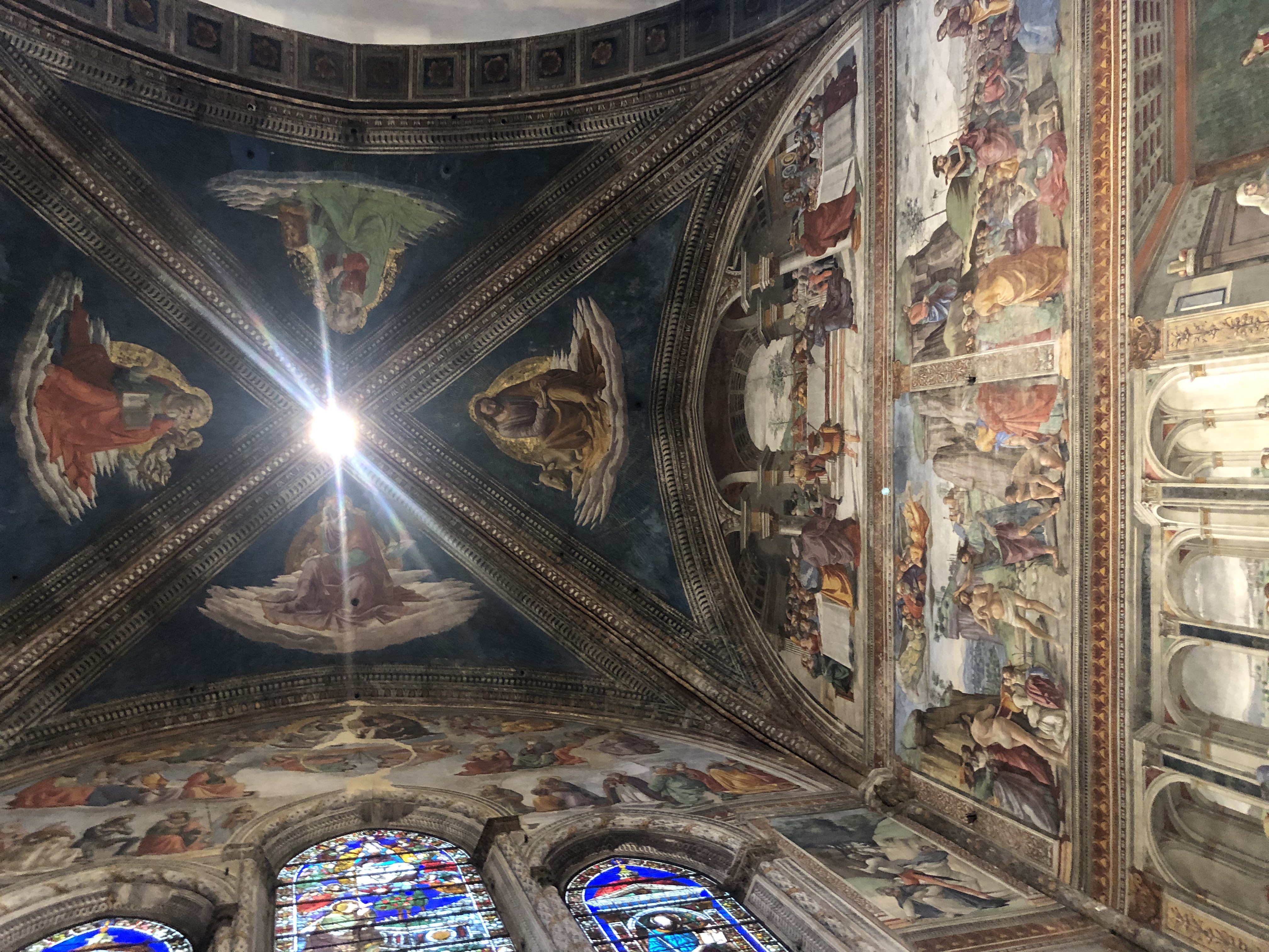 Nella cappella Tornabuoni ci sono gli affreschi del Ghirlandaio che, oltre ad ambientare le scene tra Roma e Firenze in epoca rinascimentale invece che in Terra Santa, dipinge l’episodio della morte degli innocenti in maniera truculenta, con teste di neonati che rotolano a terra. Guardo tutto con un lieve disgusto e penso che nemmeno la squadra di CSI, Monk, e tutto il Distretto di Brooklyn 99 ci avrebbero capito una mazza in tutta quella confusione.