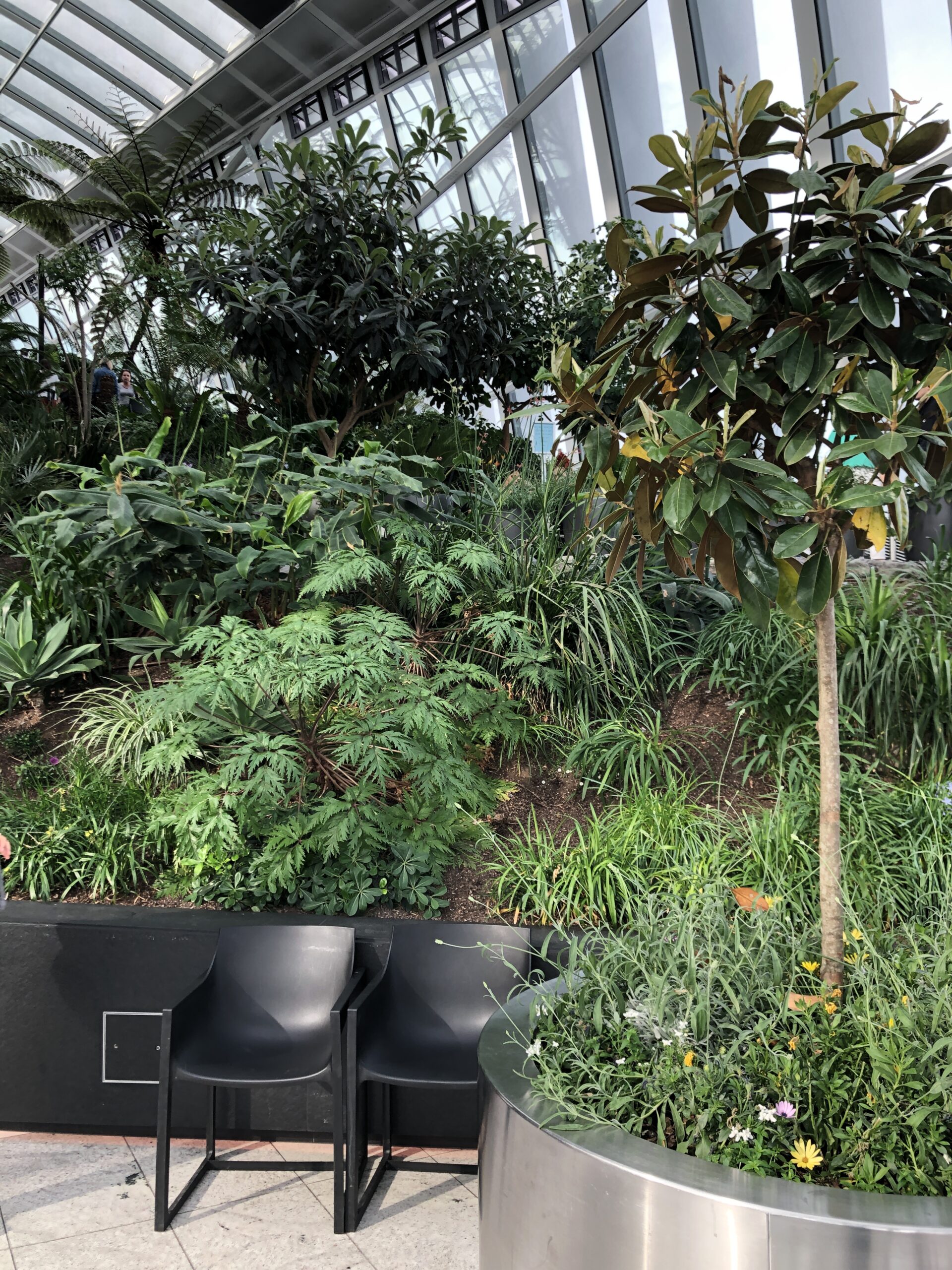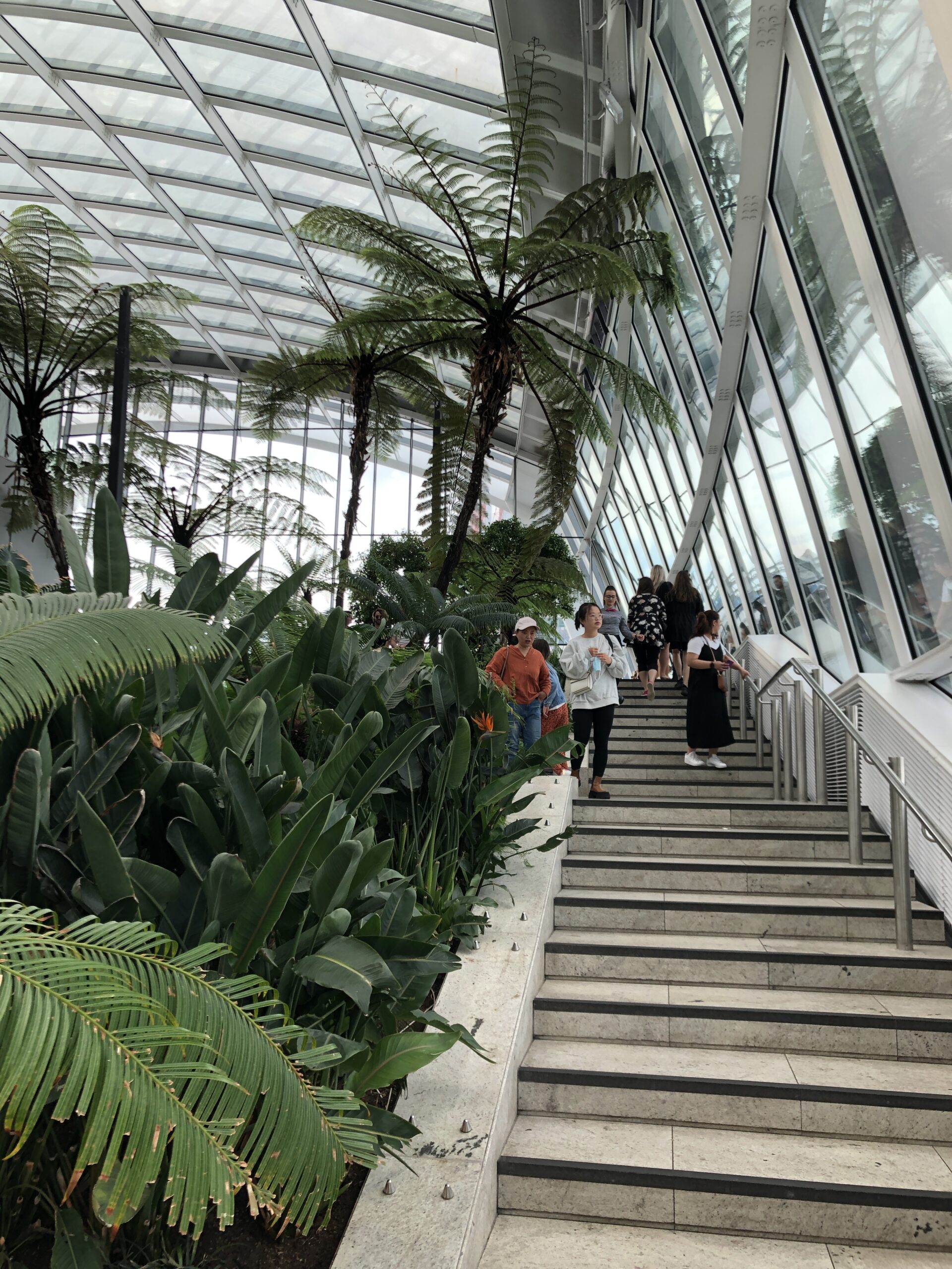 Finalmente libera da ogni sorta di liquidi, mi aggiro nell’ambiente con l’entusiasmo di un marito all’idea la domenica pomeriggio. Ad essere sincera mi aspettavo una vera e propria giungla, (il nome faceva ben sperare in questo caso) invece l’ambiente è meno accogliente di quello che m’immaginavo, le piante sono poche e disposte solo lungo le scale, fungono da mera decorazione, non è un vero e proprio Garden. Non ci sono installazioni che scendono dal soffitto o edere rampicanti che strisciano sulle lisce finestre di vetro e acciaio.