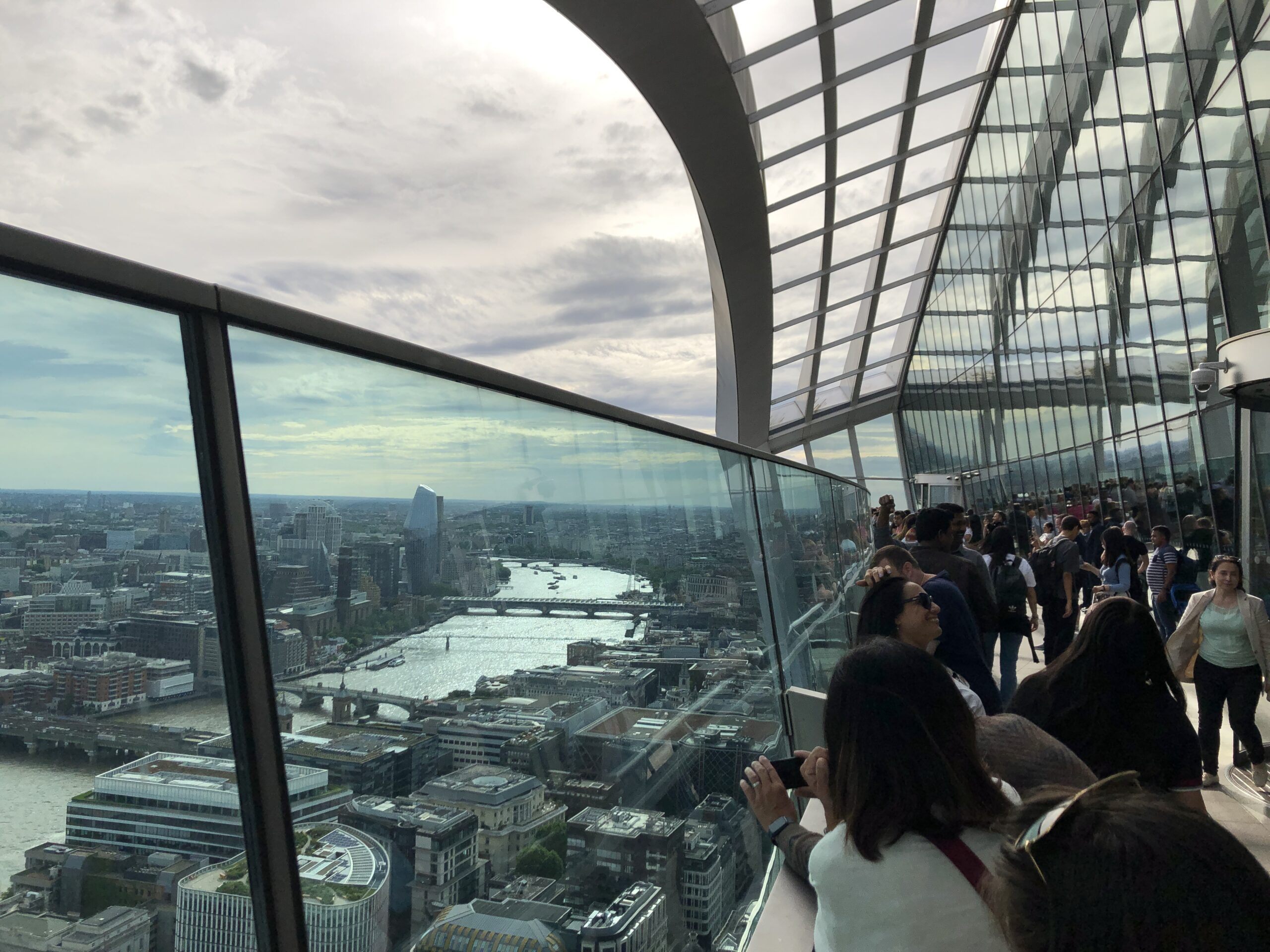 Lo chiamano walkie talkie ed è semplice capire il perché. Uscendo dalla metro non ho neanche bisogno di chiedere indicazioni poiché lo noto subito, fa capolino dietro una fila di eleganti palazzi londinesi. Arrivo tutta euforica davanti l’ingresso con in mano il mio bel codice di prenotazione.